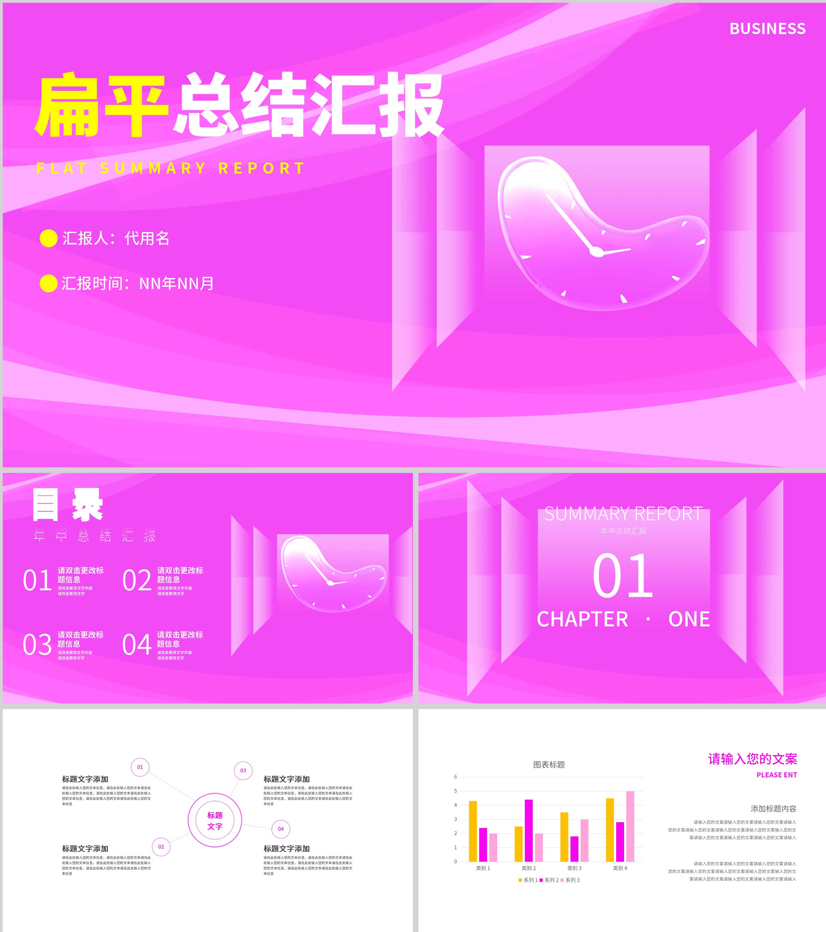 蓝色扁平风办公女孩工作总结汇报PPT模板