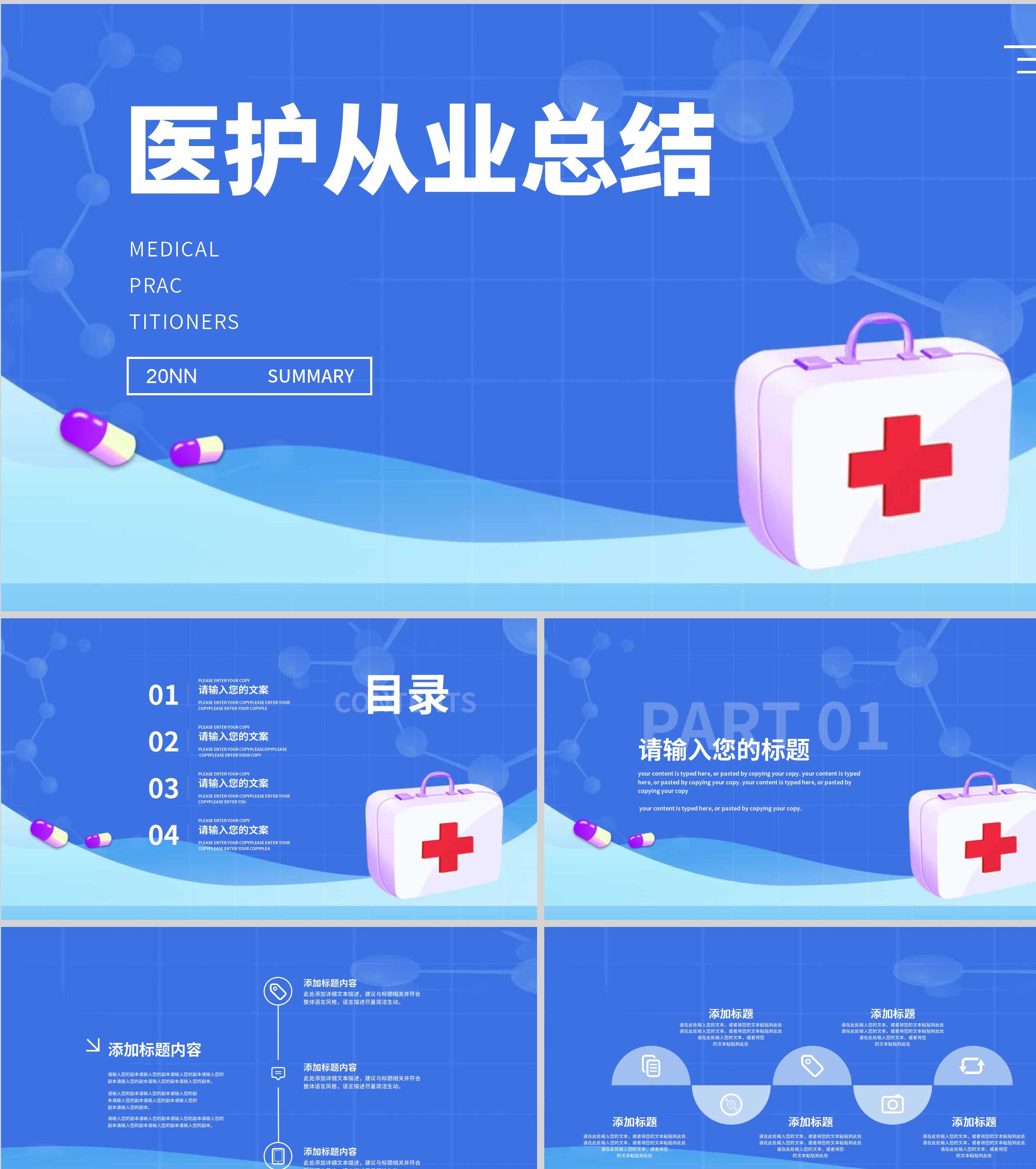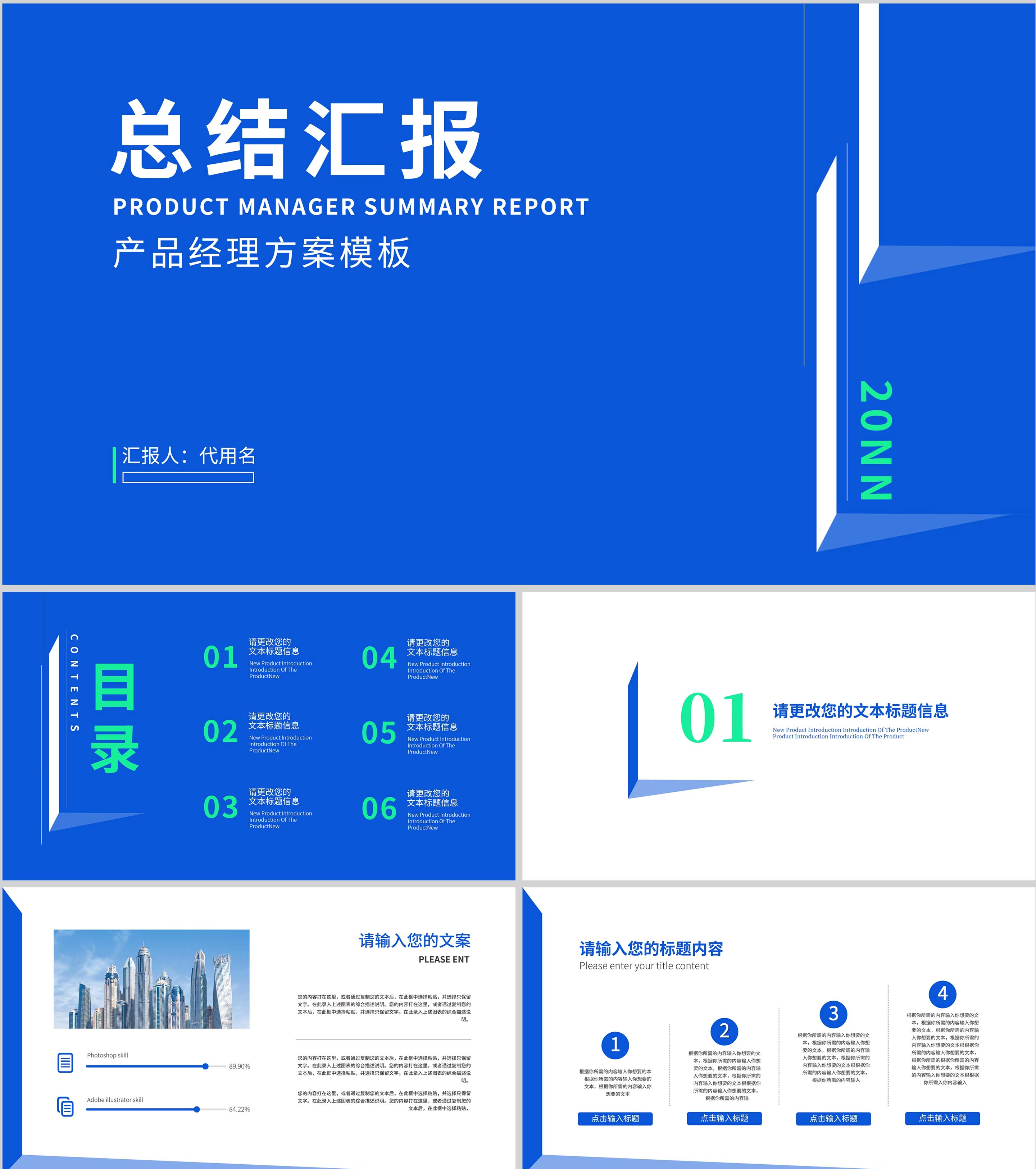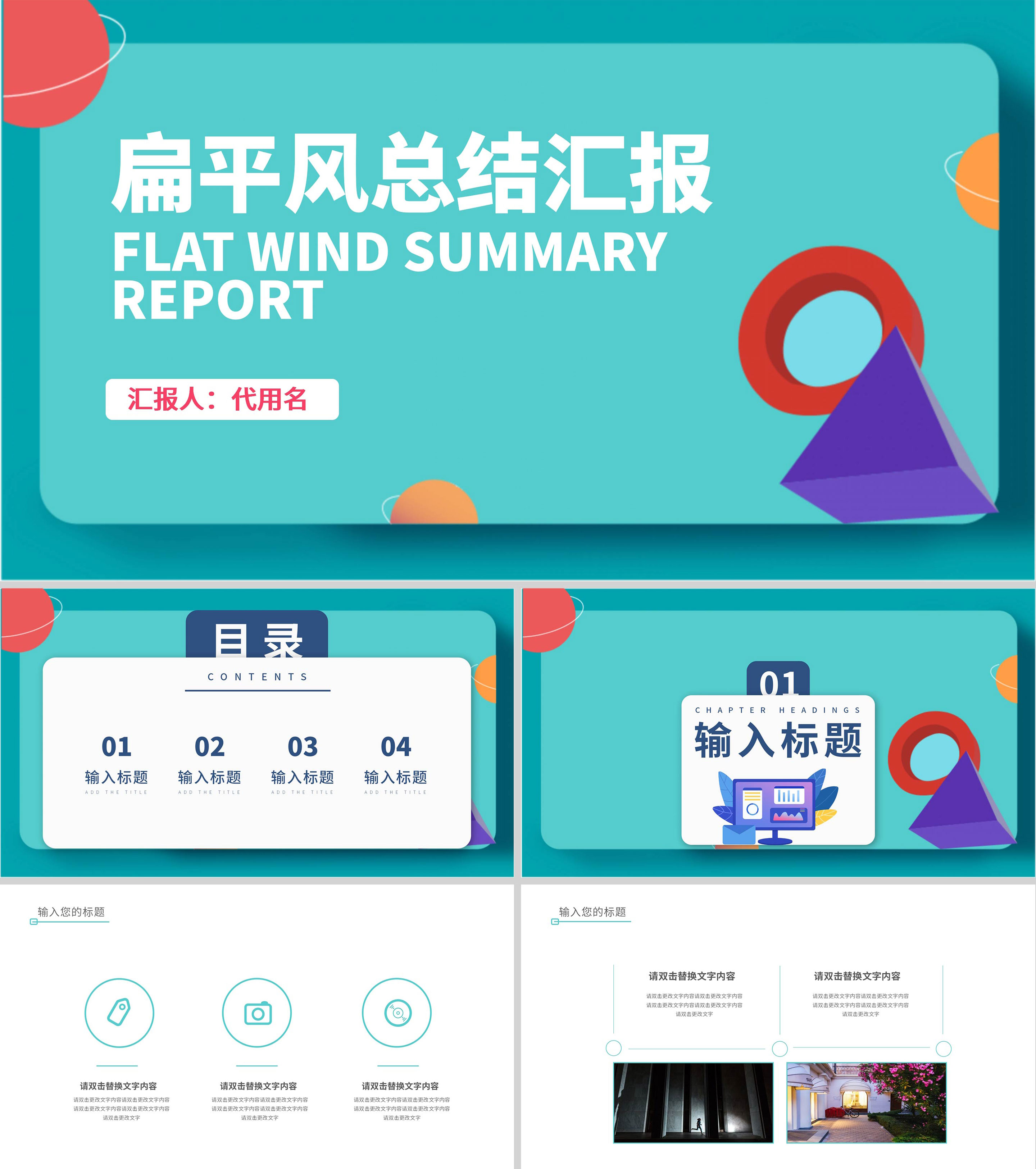 蓝色扁平风职场通用工作总结汇报PPT模板