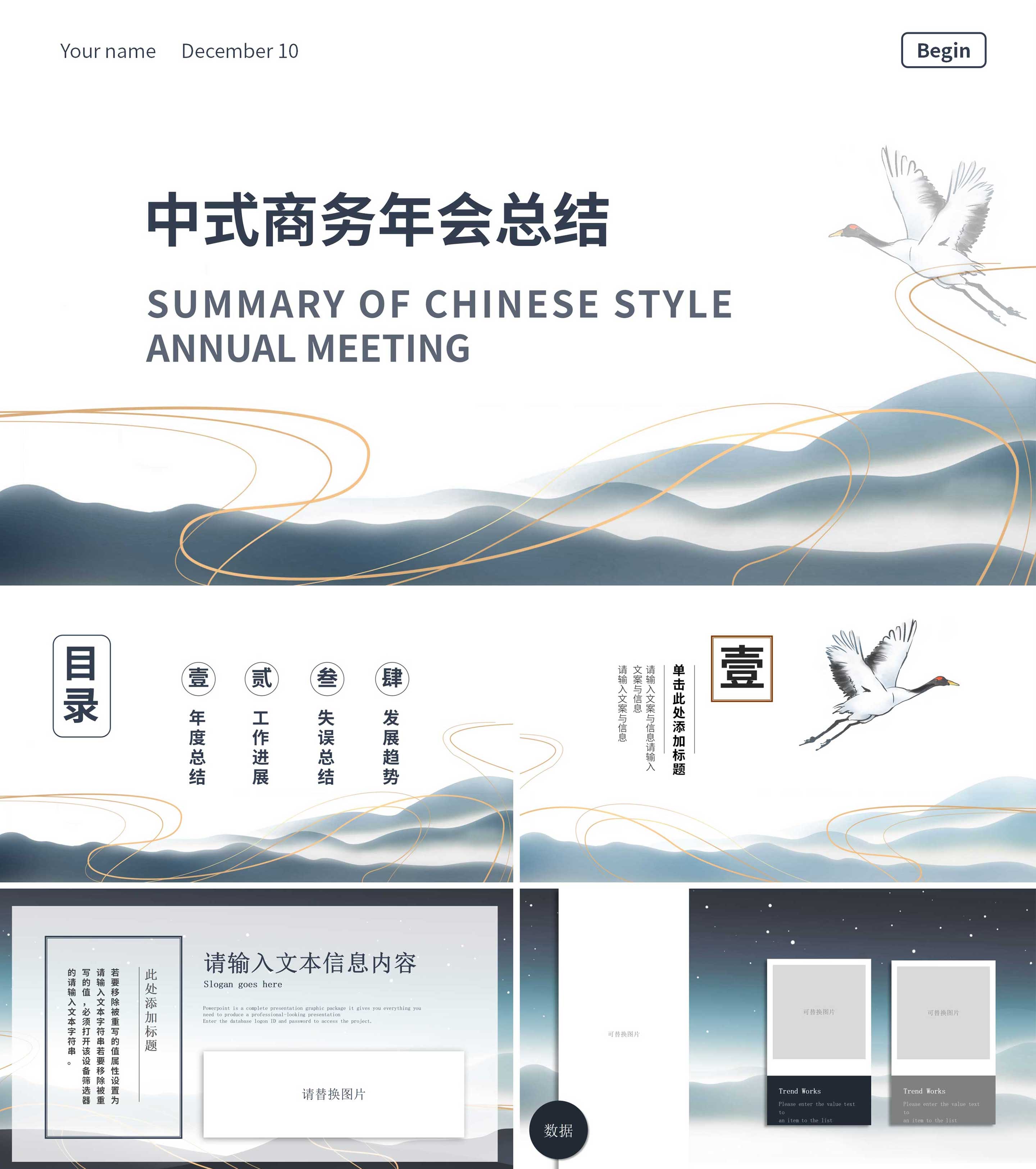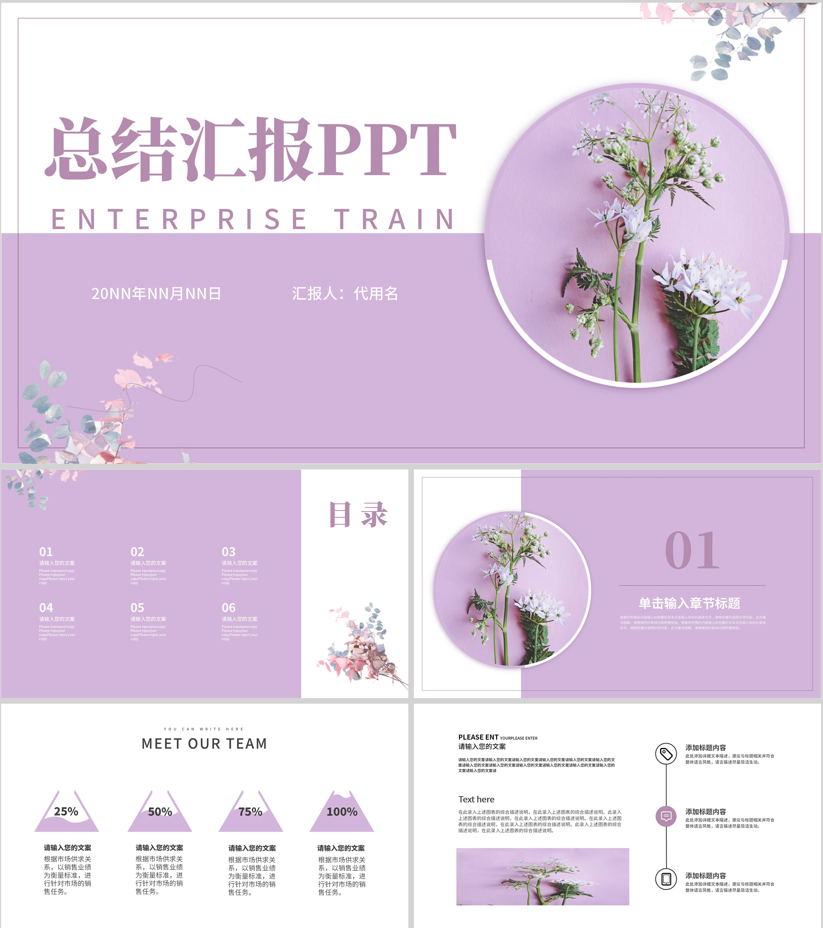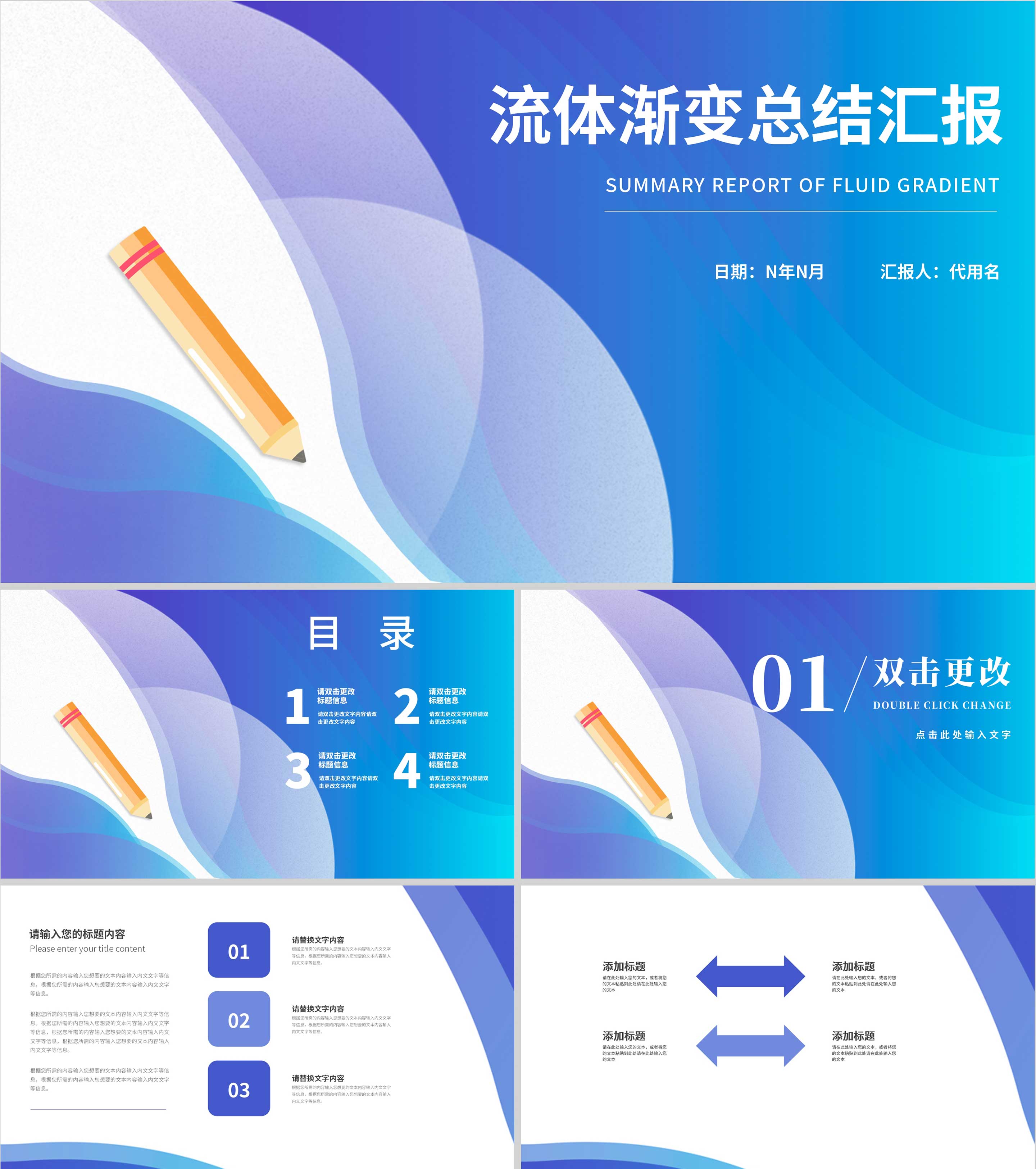 蓝色扁平风职场通用工作总结汇报PPT模板