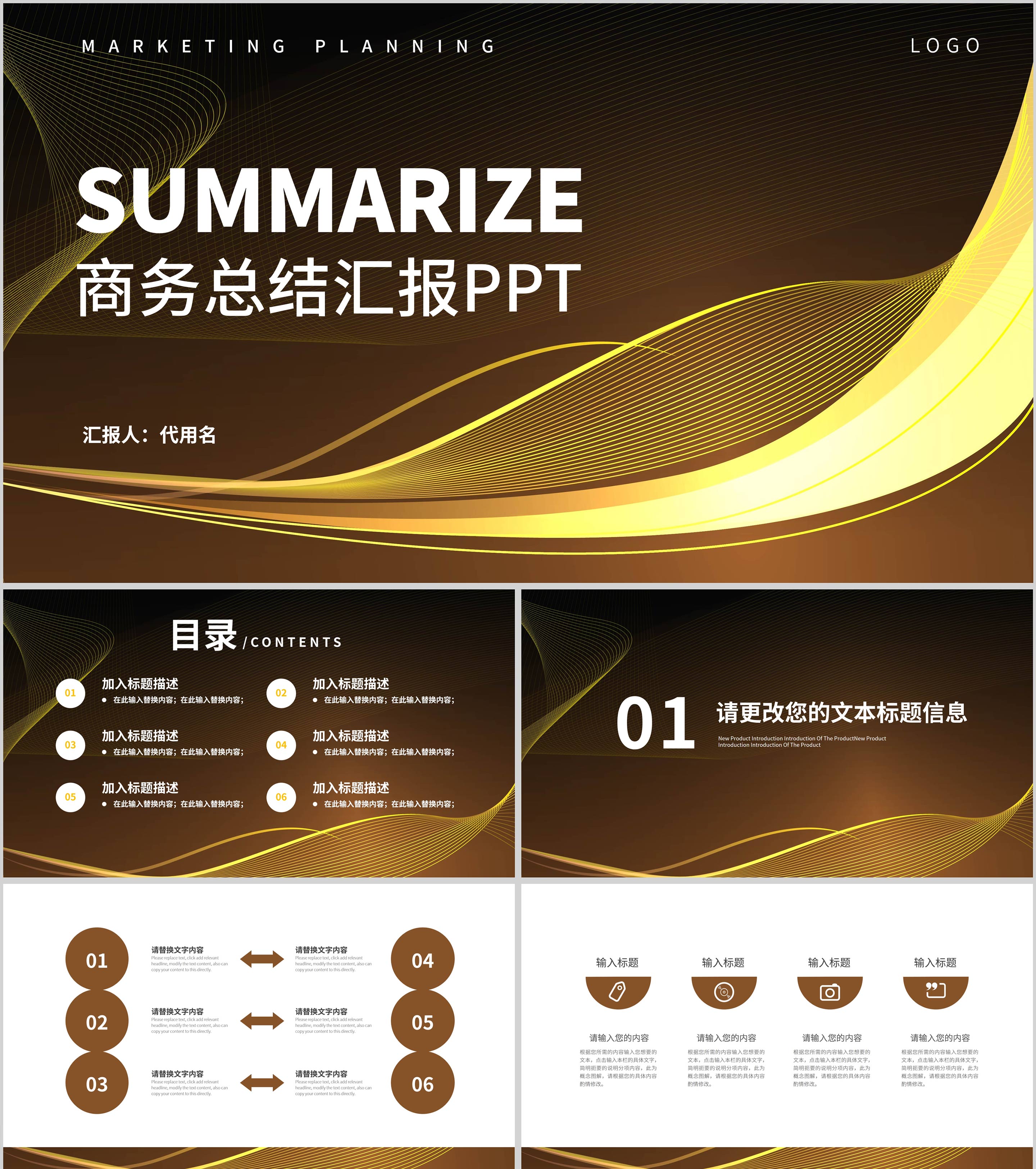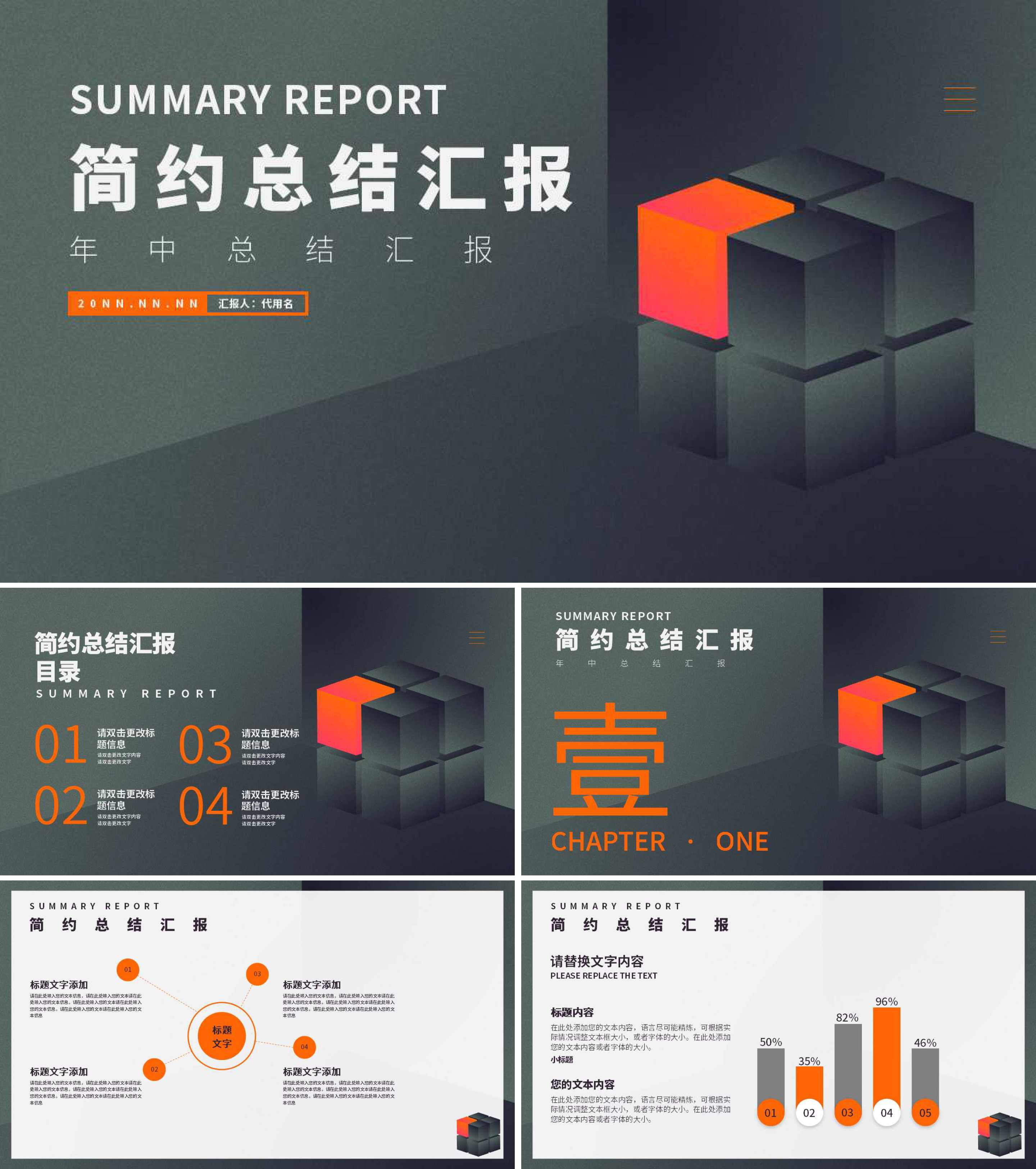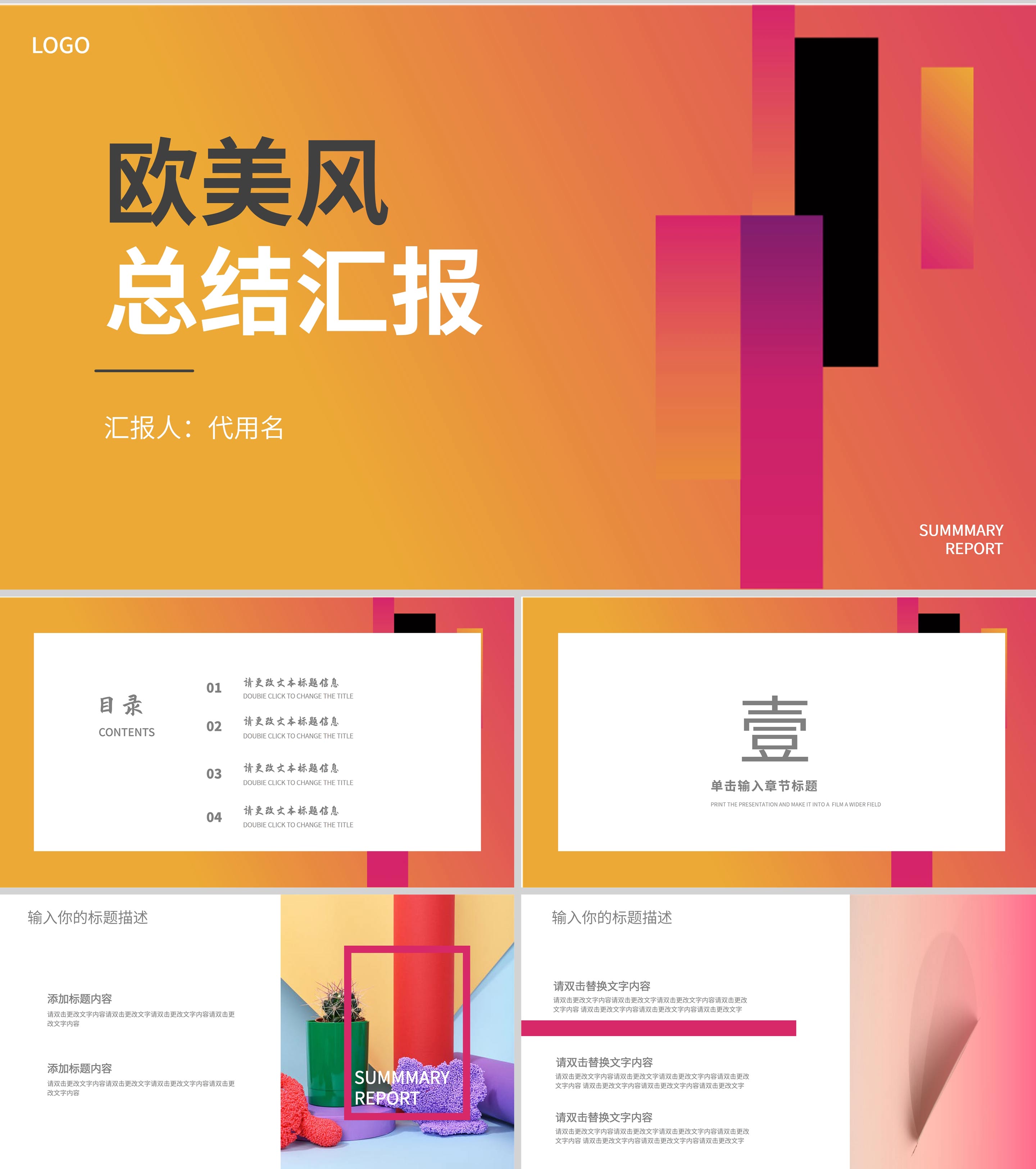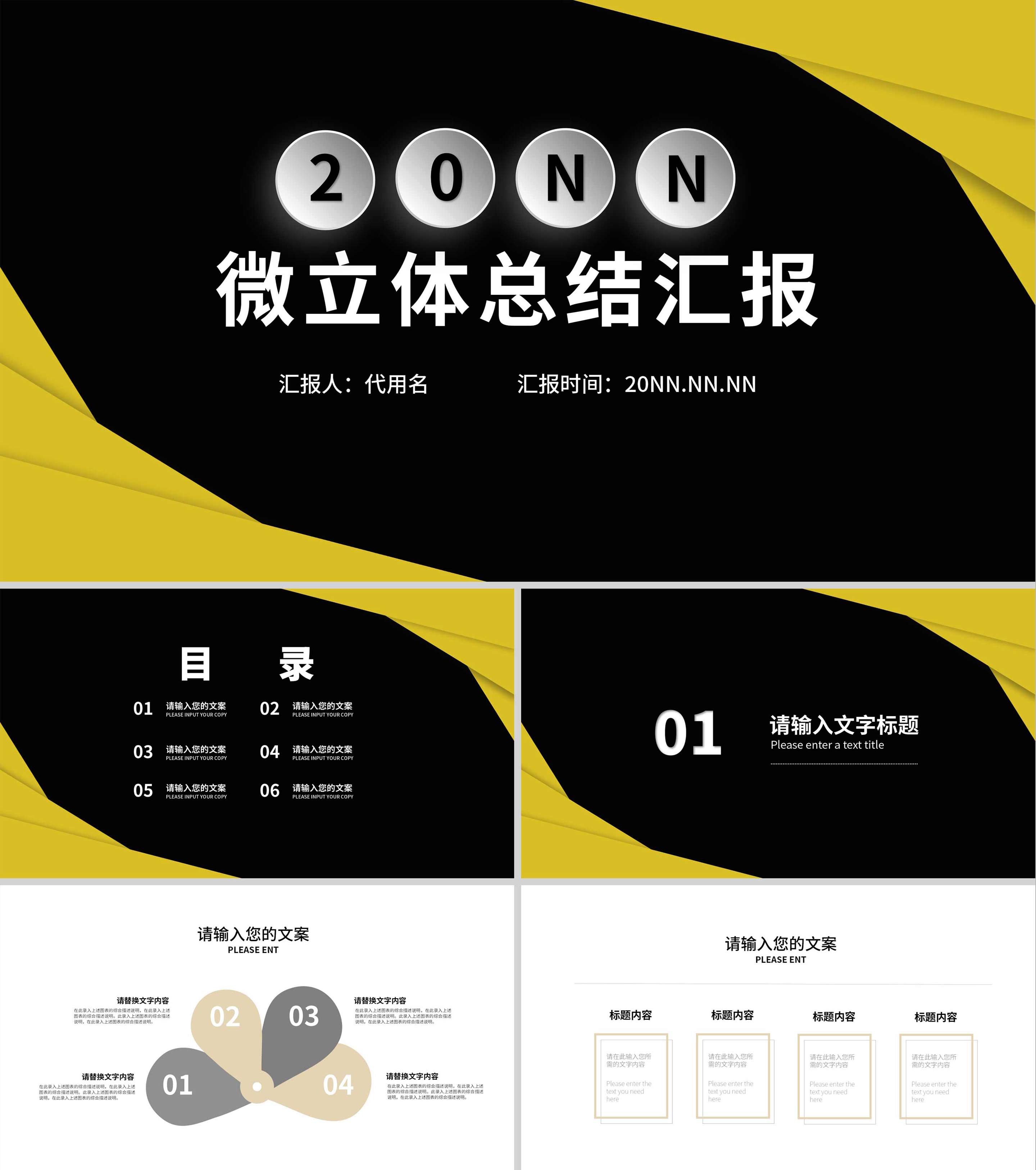 黄色渐变几何风时尚职场总结汇报PPT模板