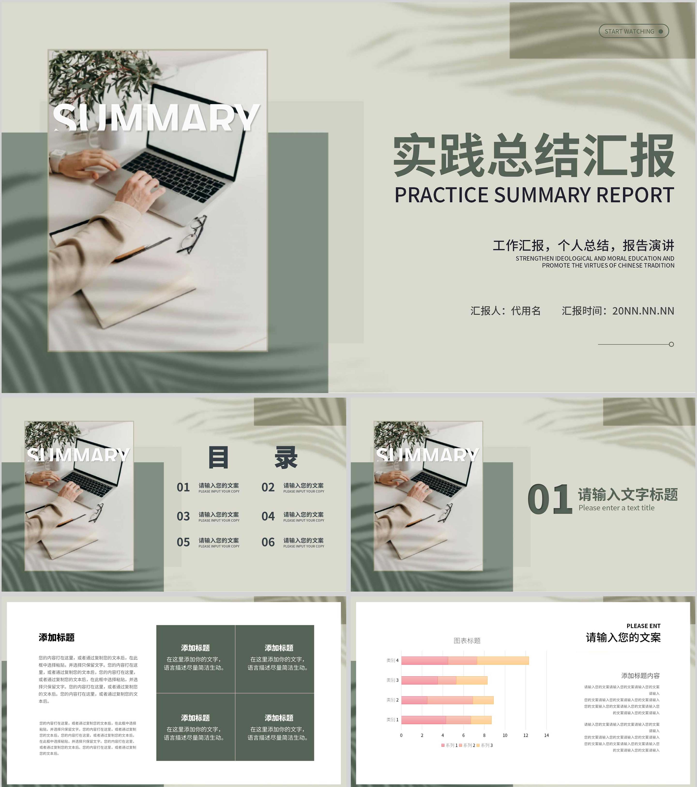 绿色画册风公司实习生实习实践总结汇报PPT模板
