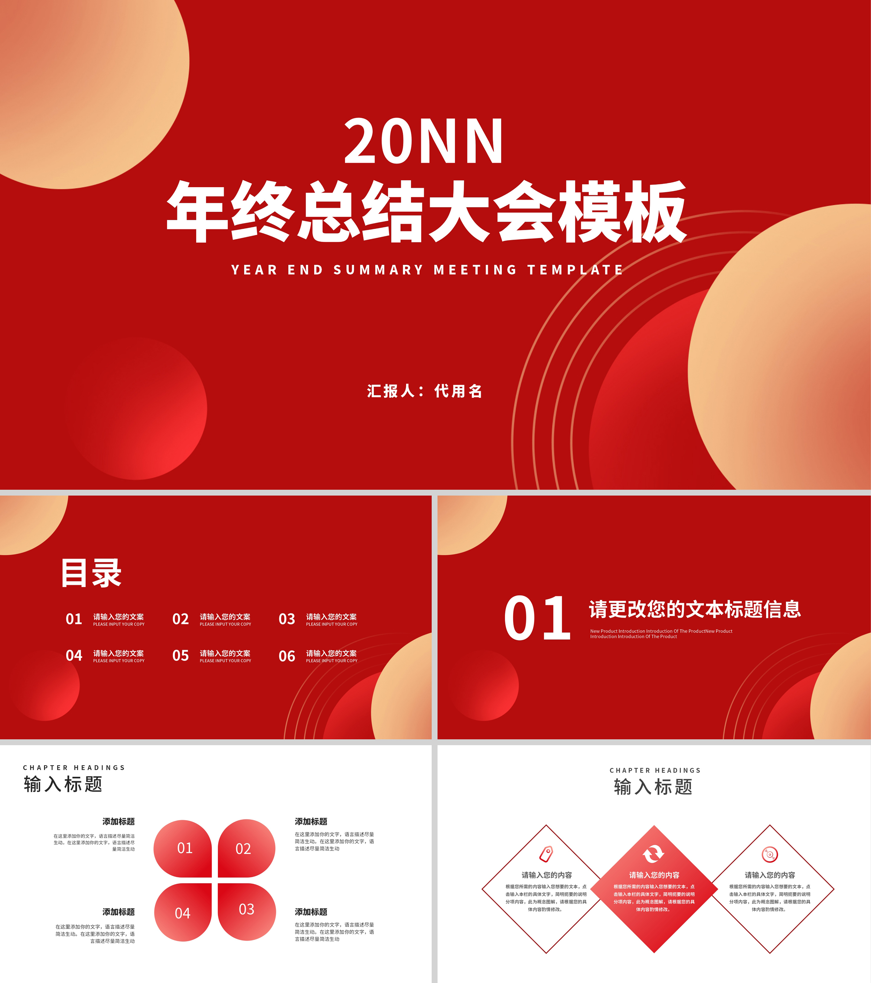 红色扁平风新年职场年终总结工作汇报PPT模板