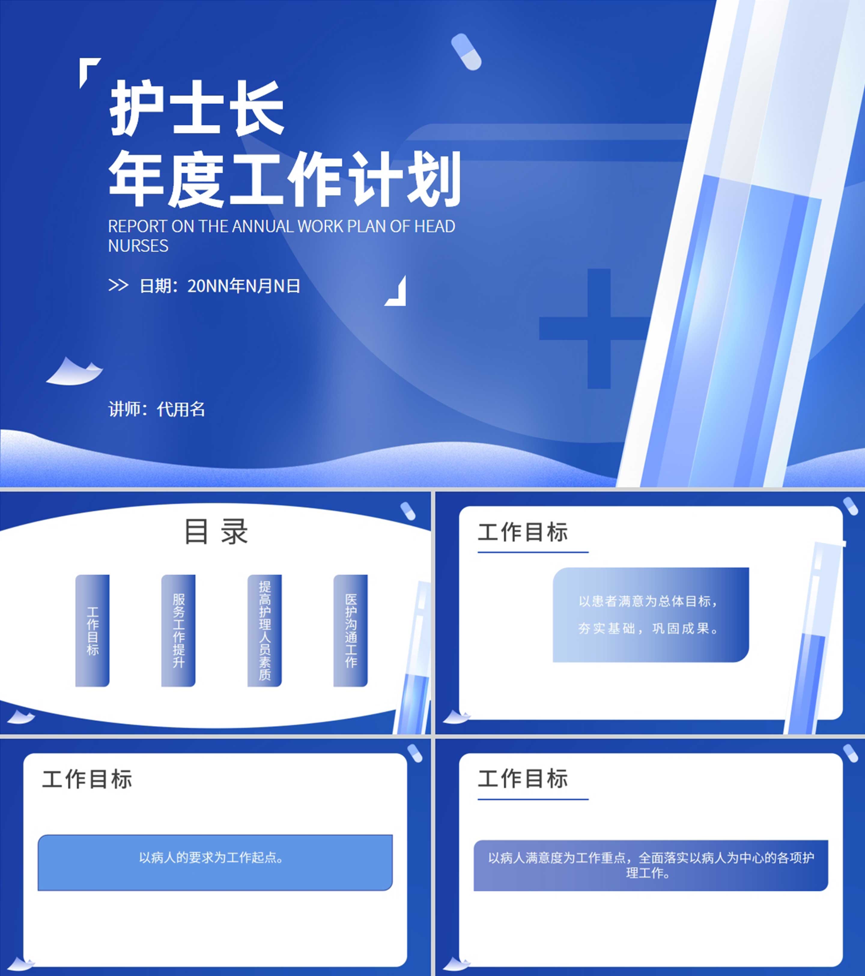 蓝色扁平风护士医疗工作计划汇报PPT模板