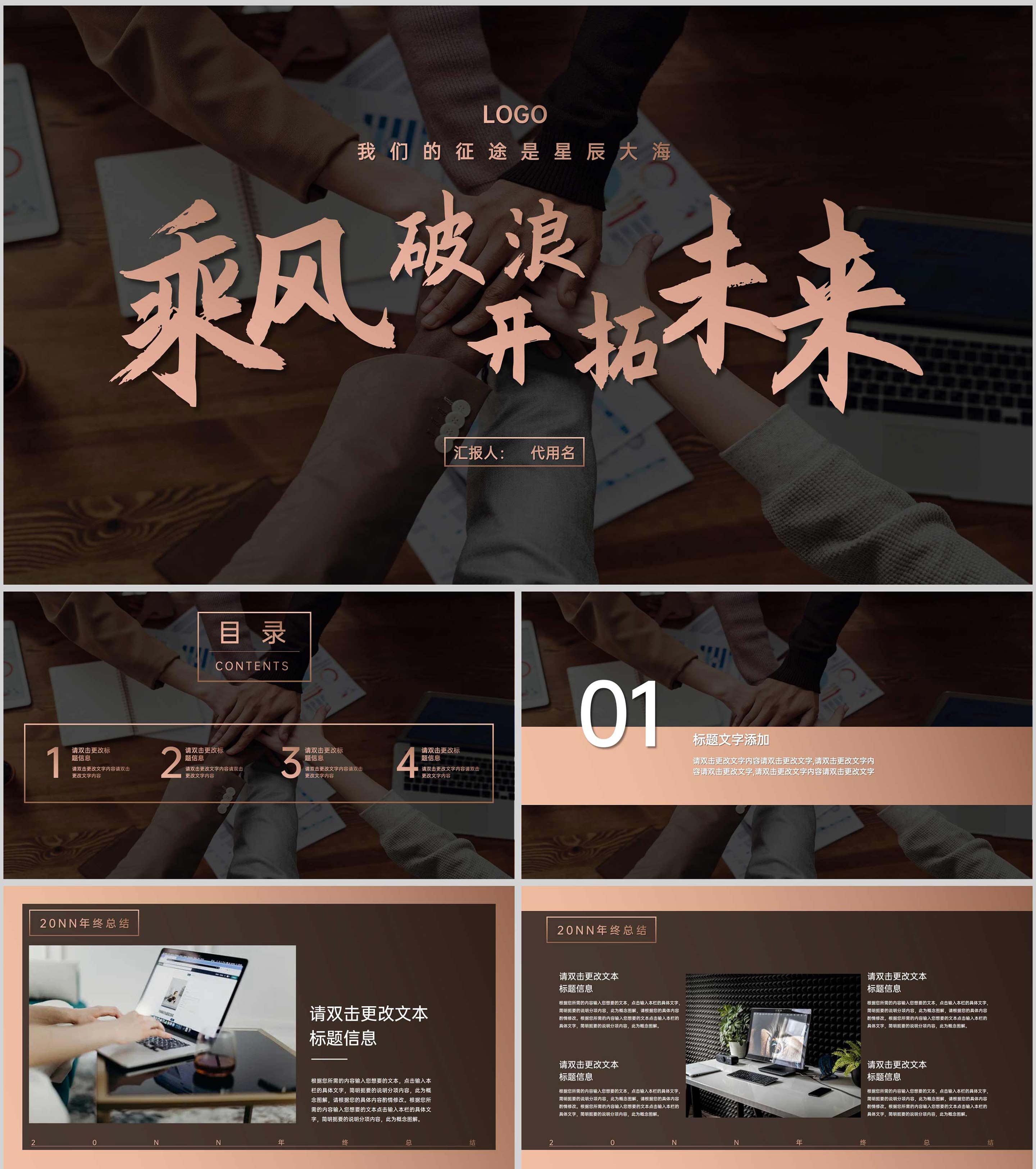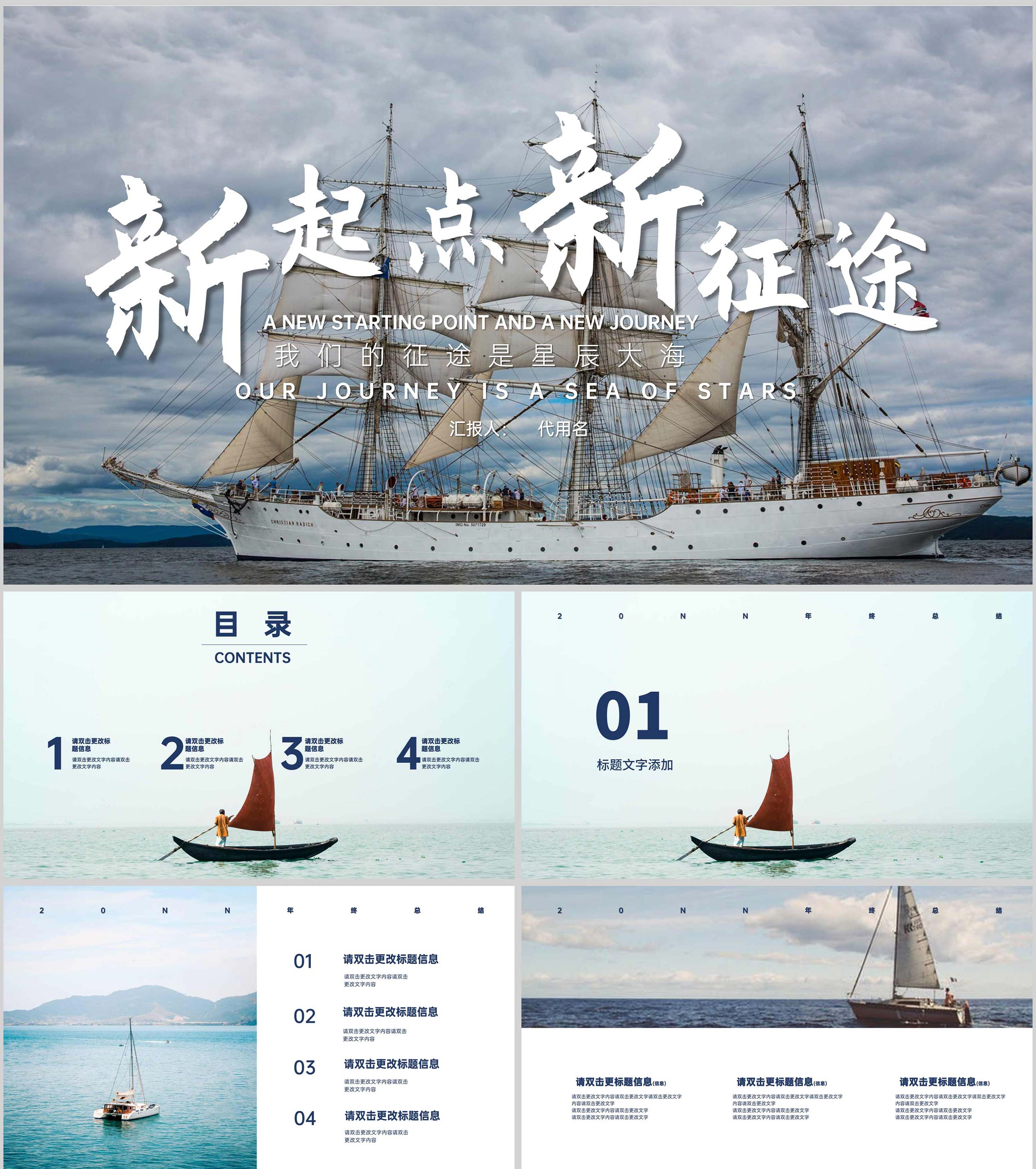 蓝色画册风励志扬帆职场通用总结汇报PPT模板