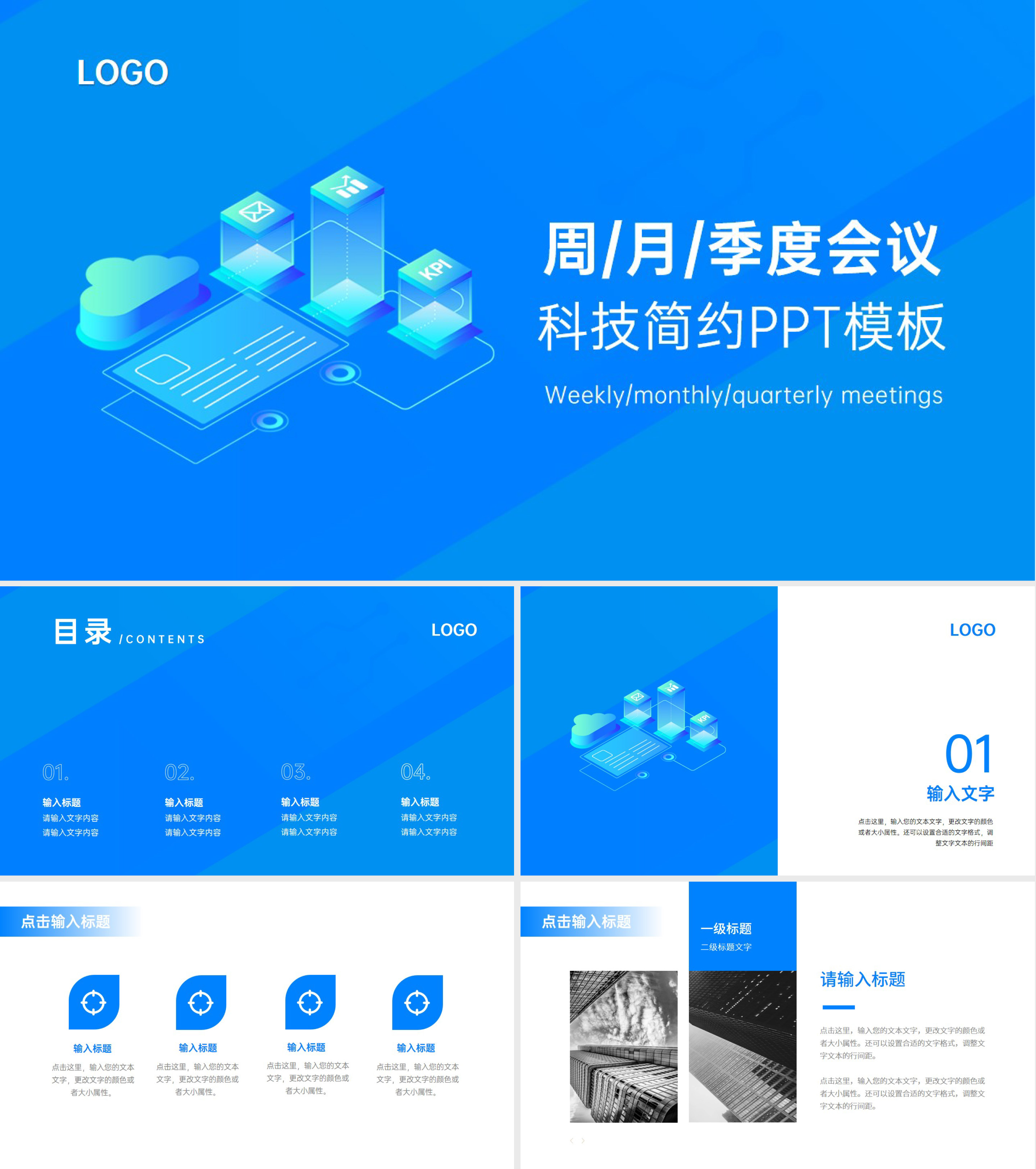 蓝色简约大气商务总结汇报PPT模板