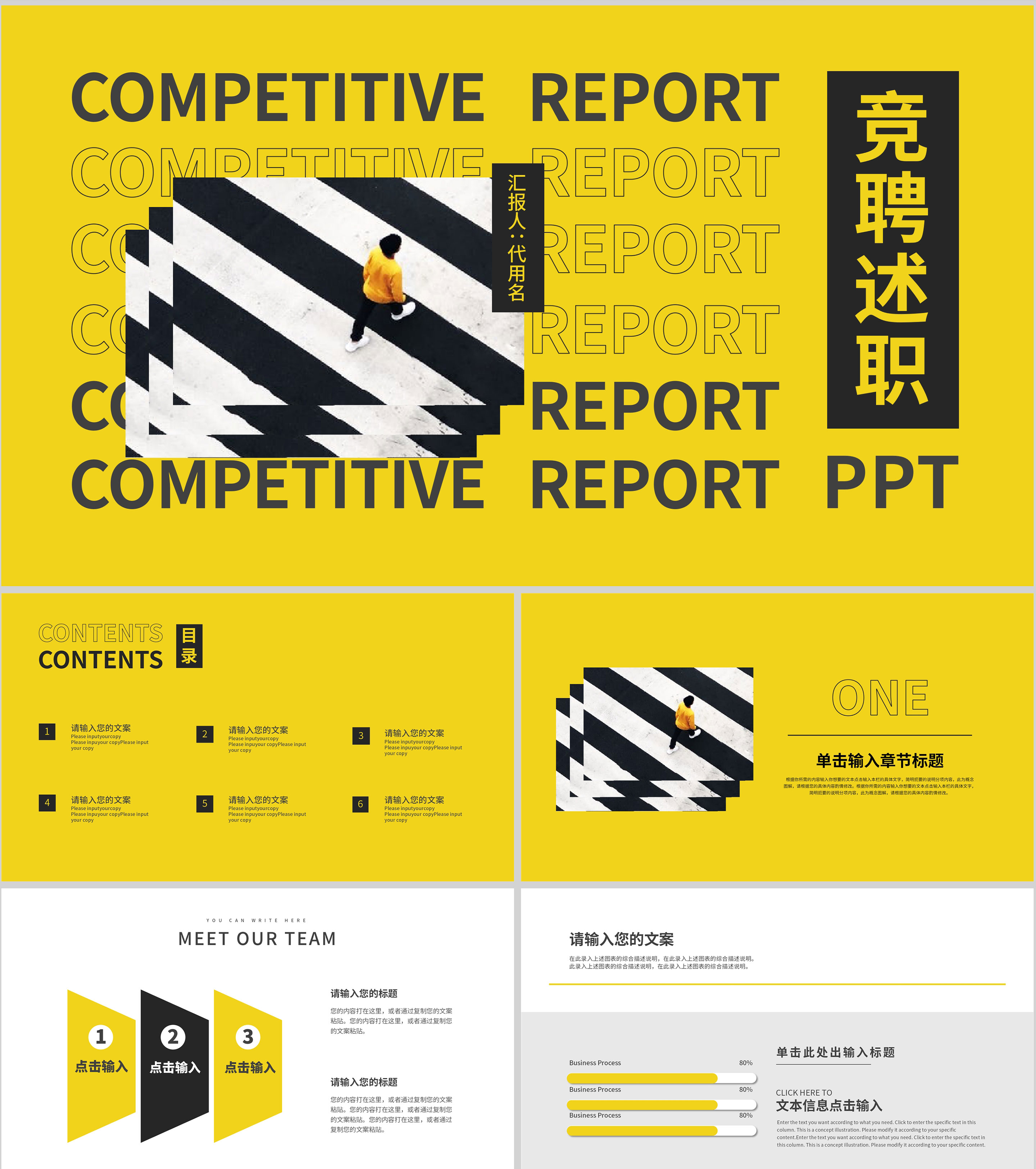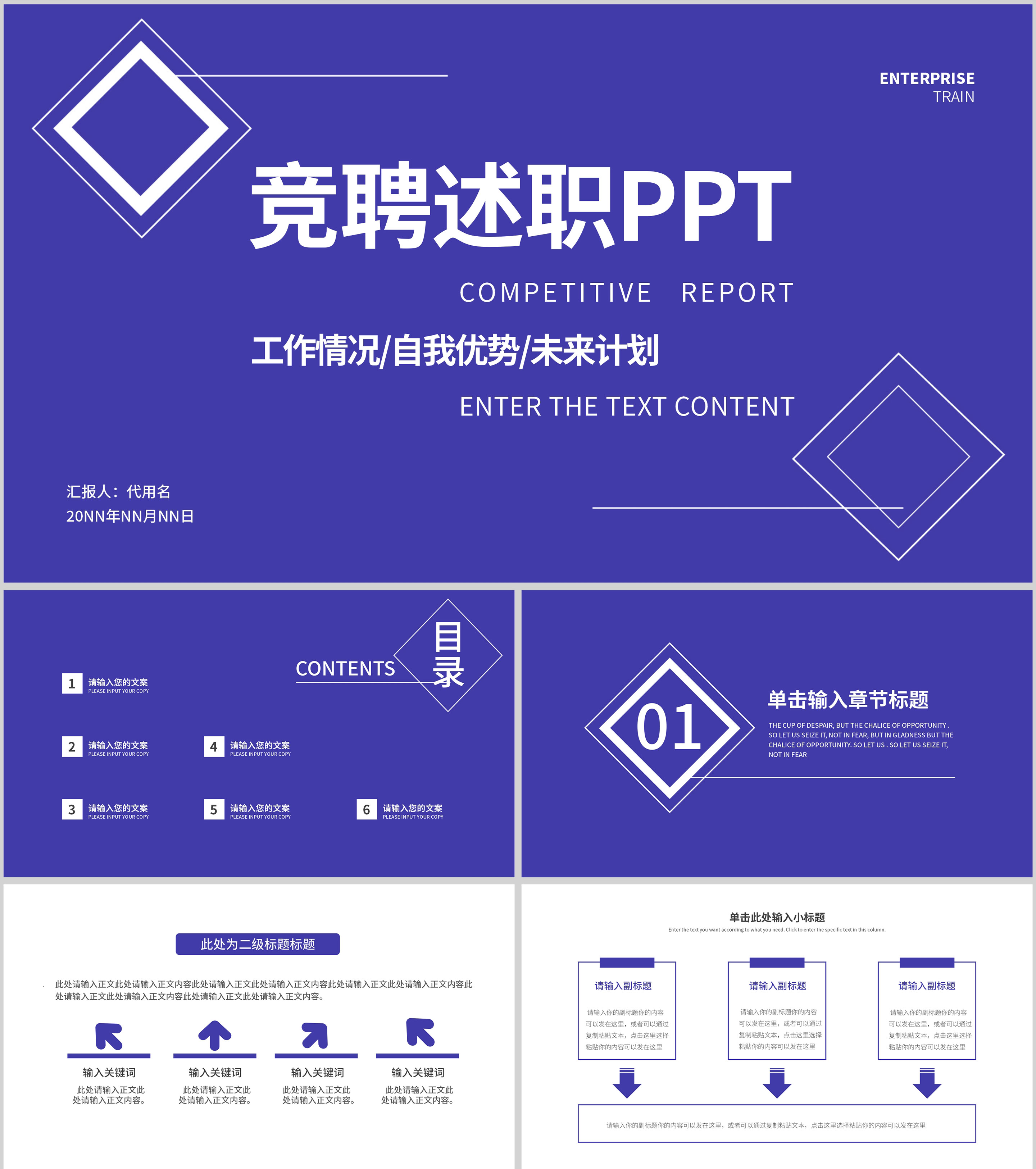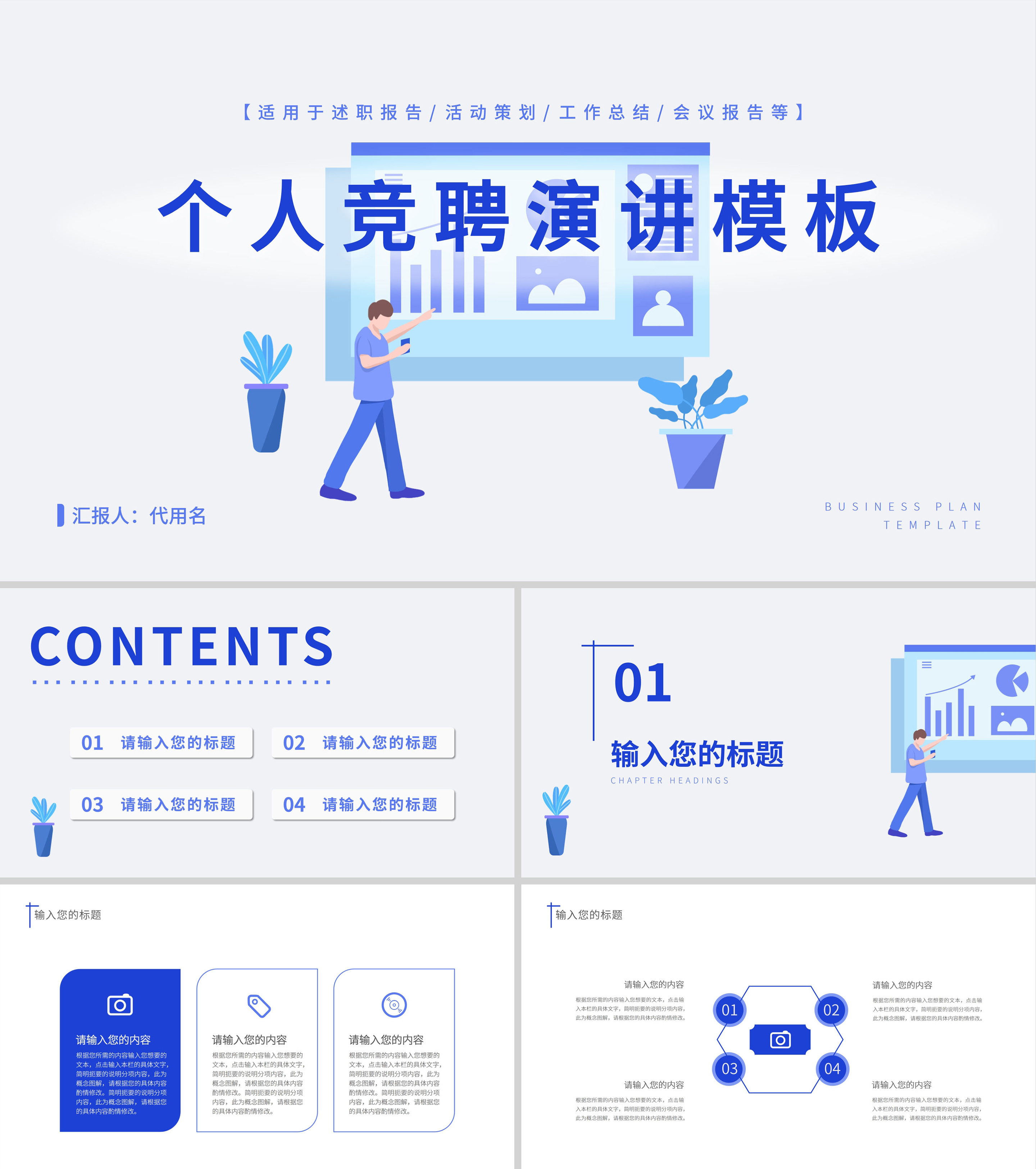 蓝色几何风放大镜竞聘述职报告PPT模板