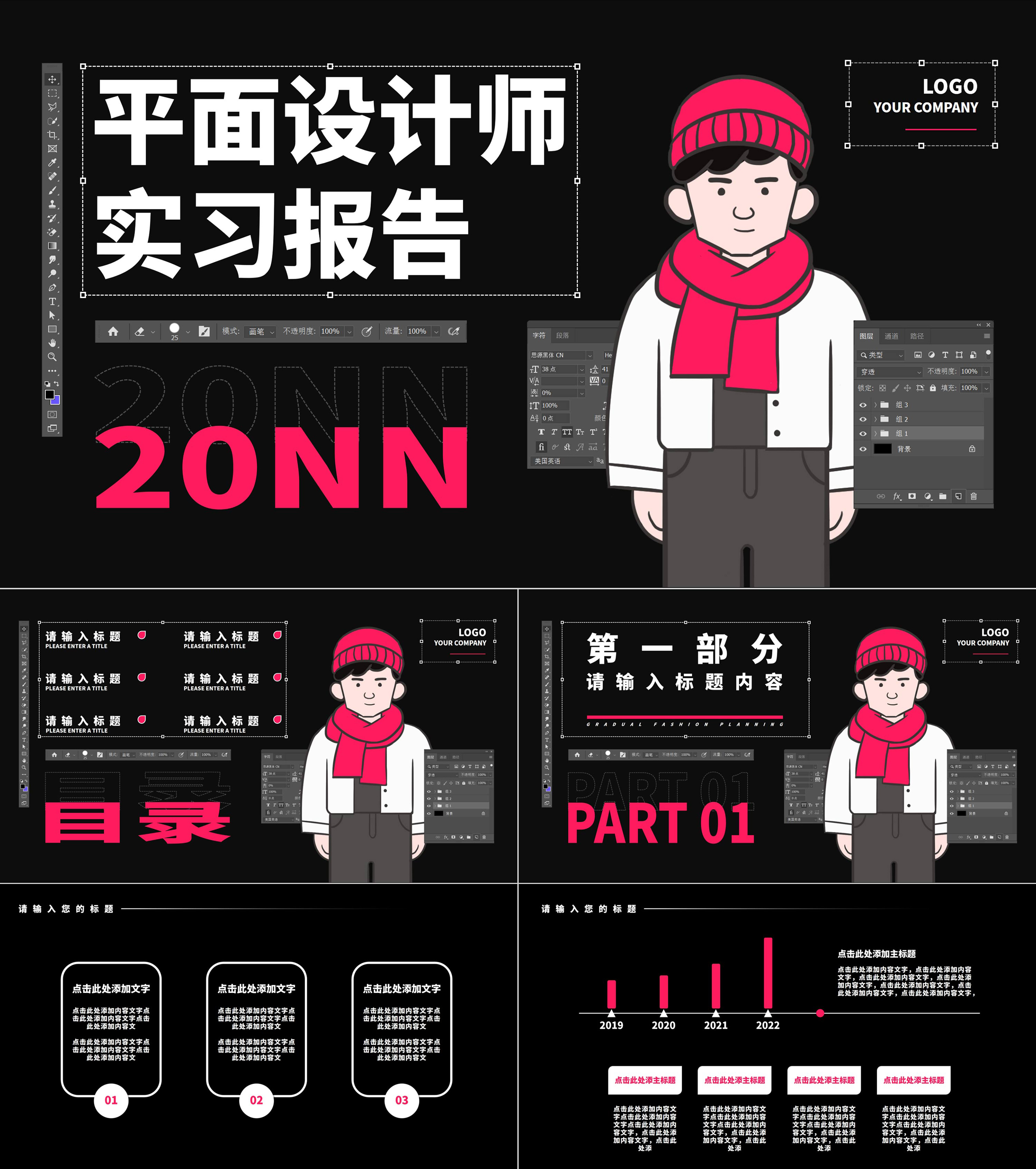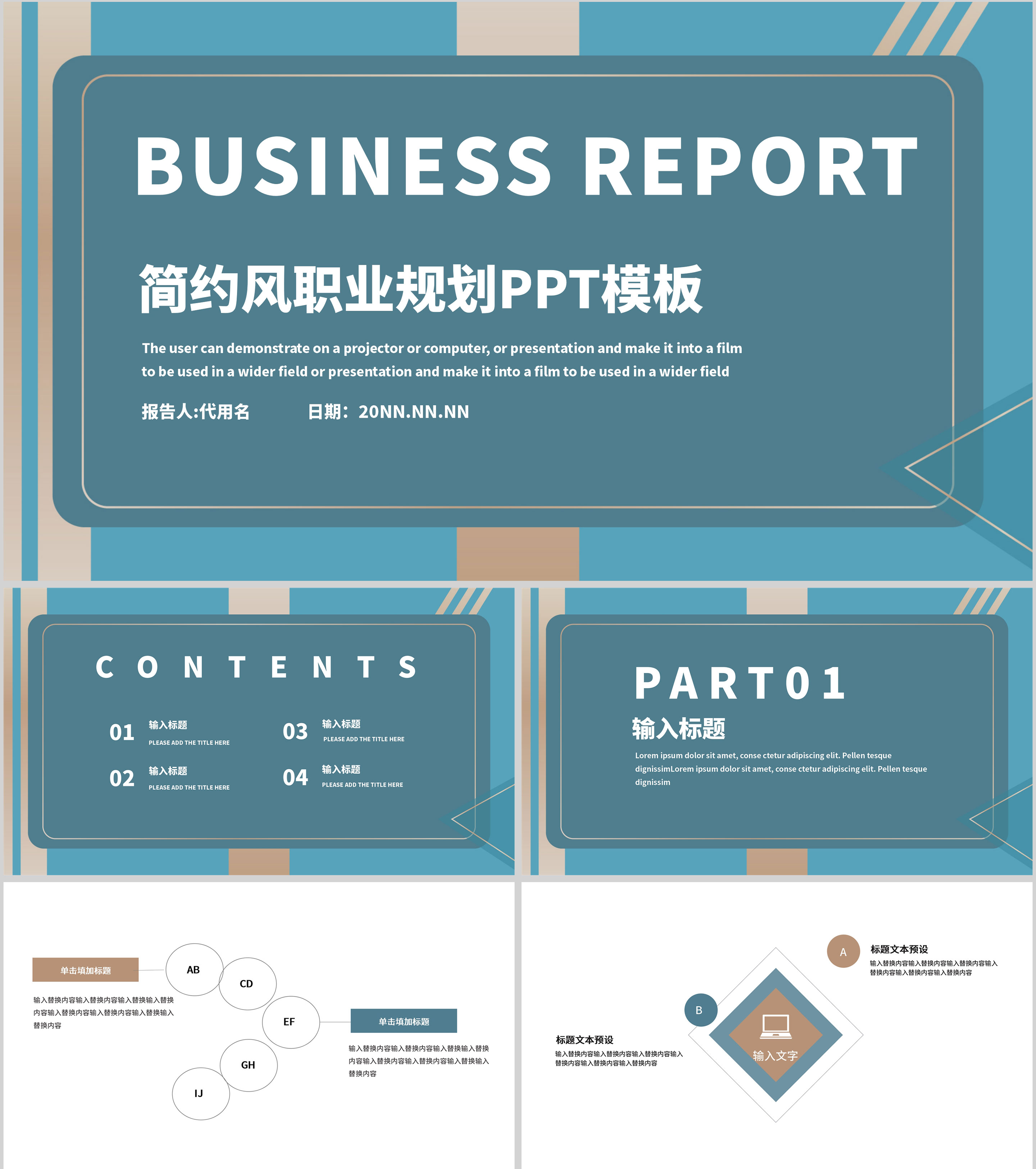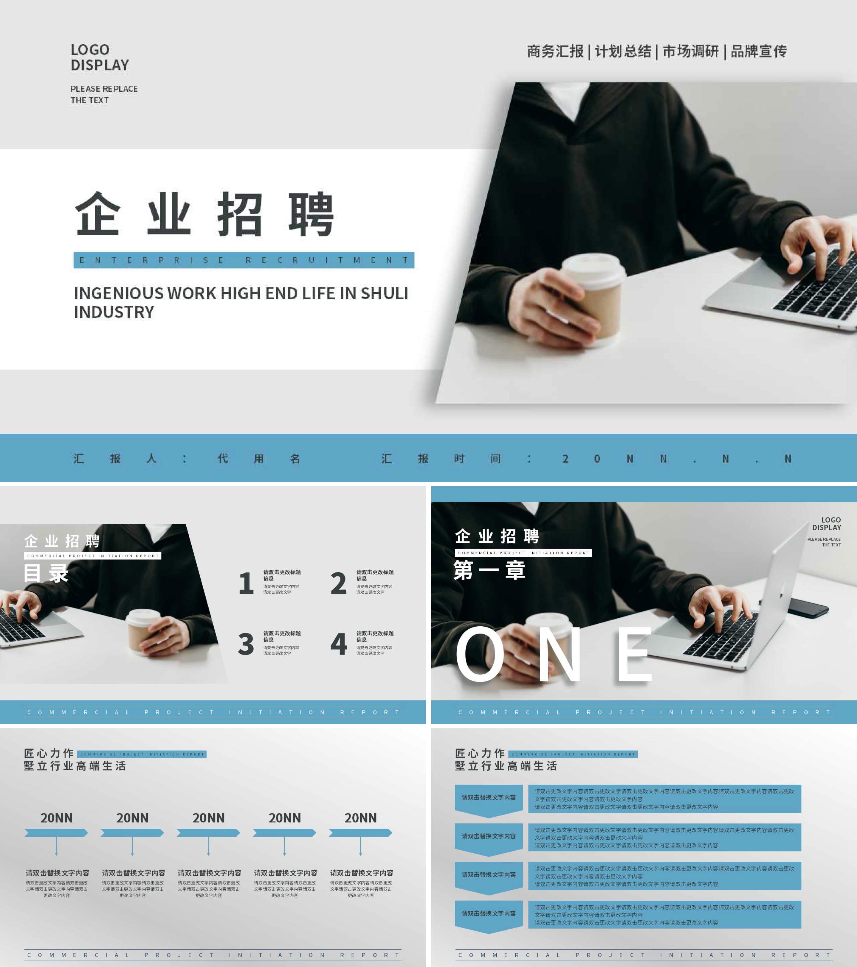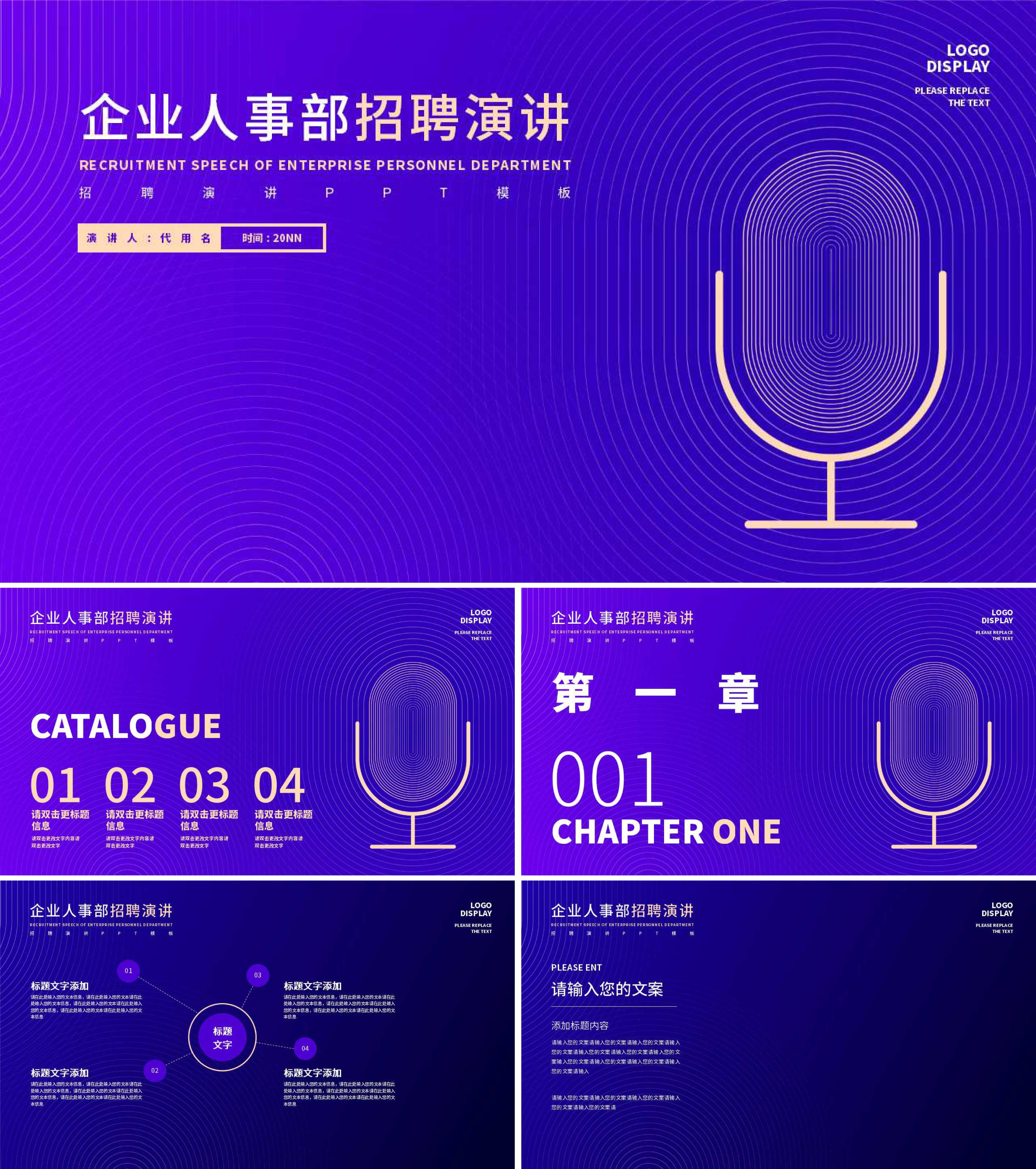 蓝色几何风放大镜竞聘述职报告PPT模板
