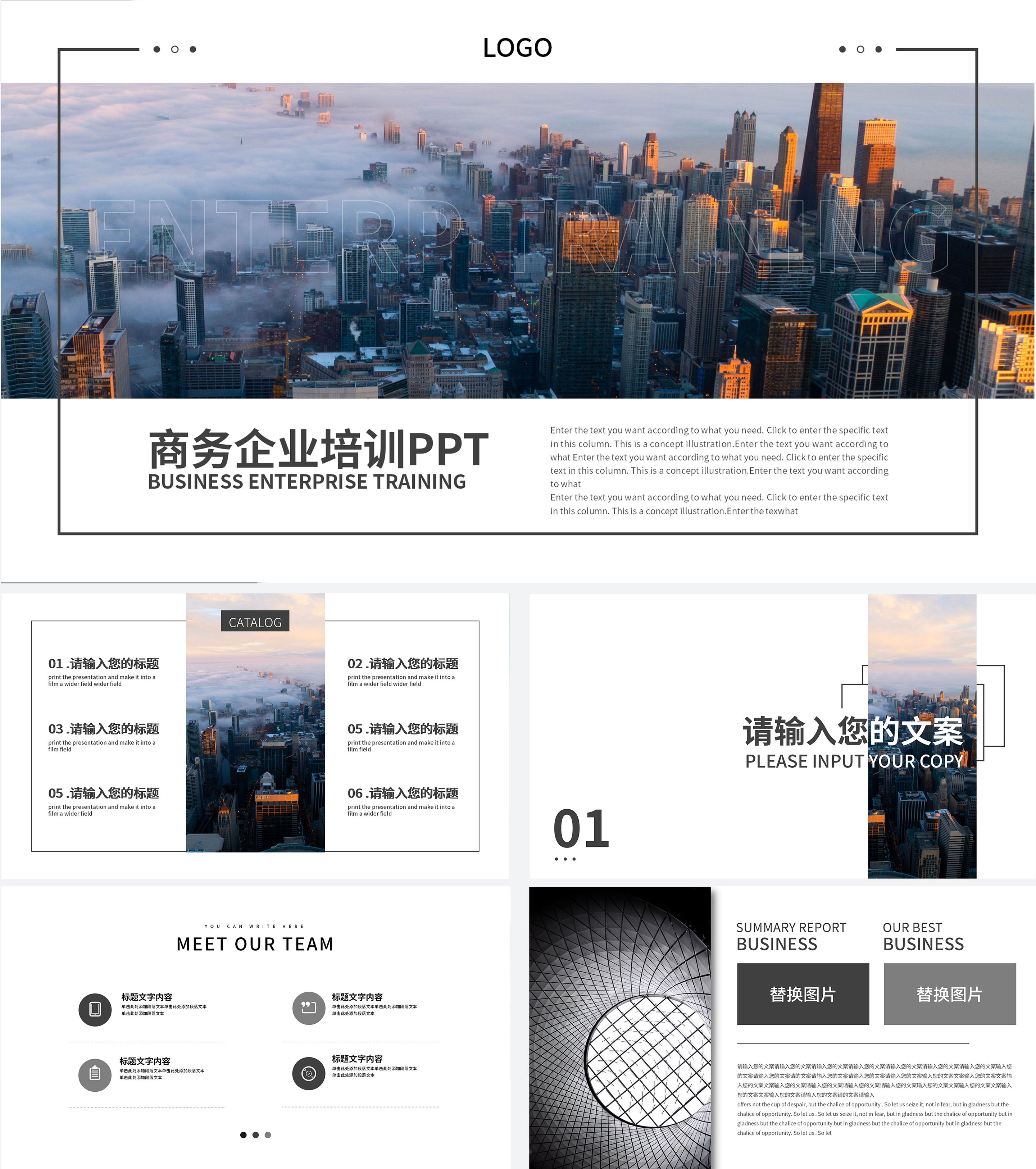 黑白色简约商务企业培训PPT模板