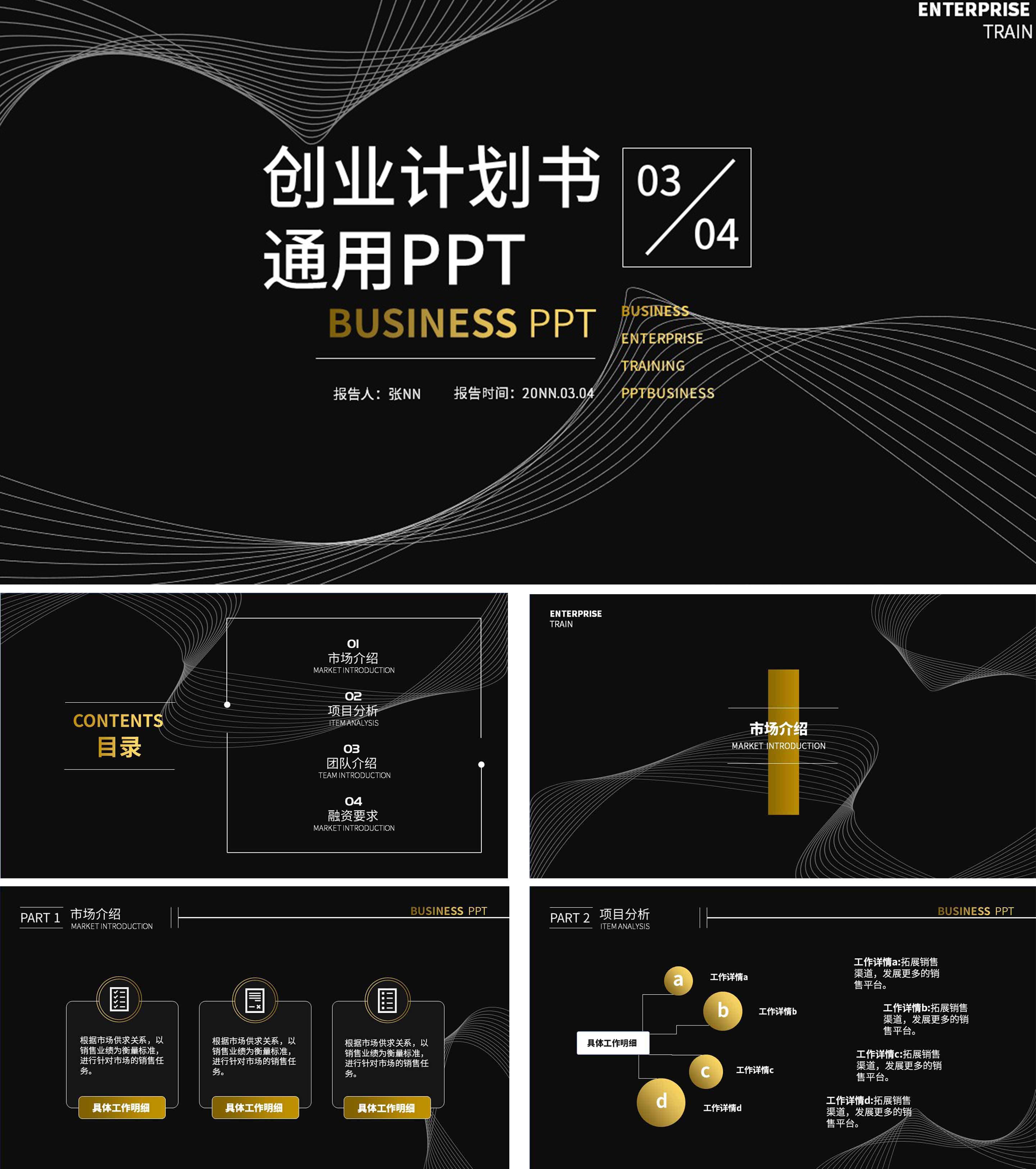 黑色简约线条创业计划书通用PPT模板