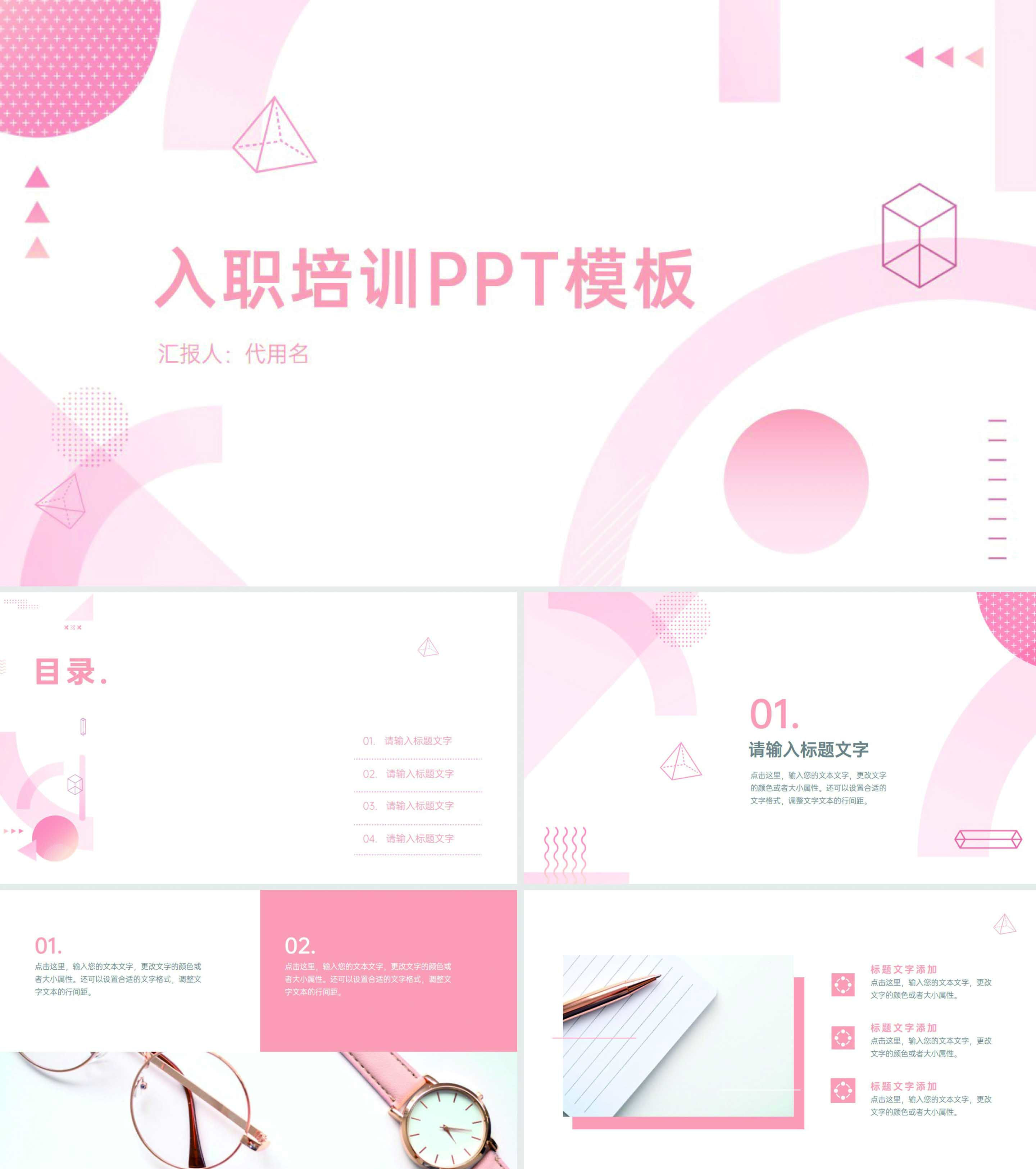 白色几何风员工入职培训PPT模板