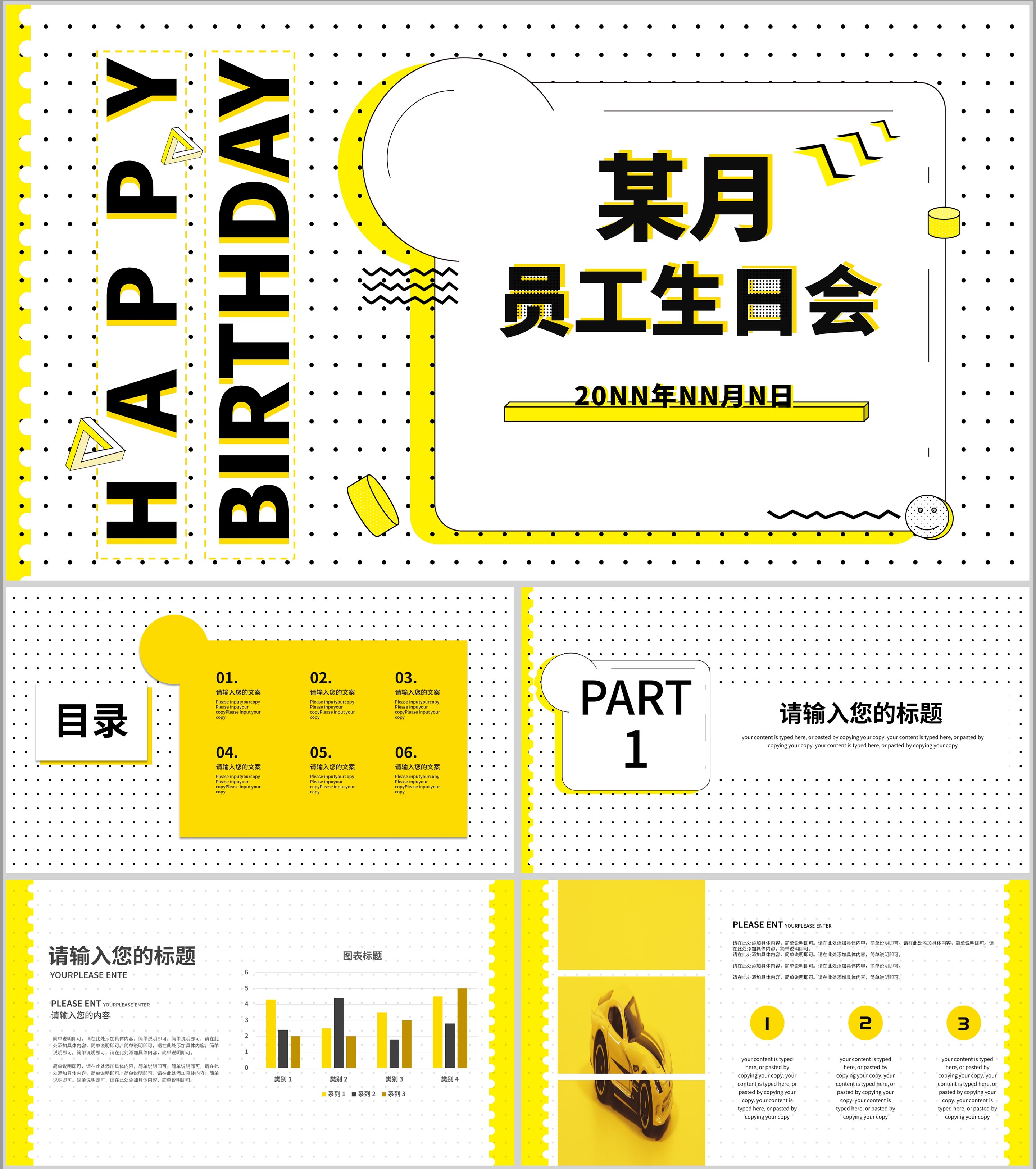 黄色孟菲斯员工生日会PPT模板