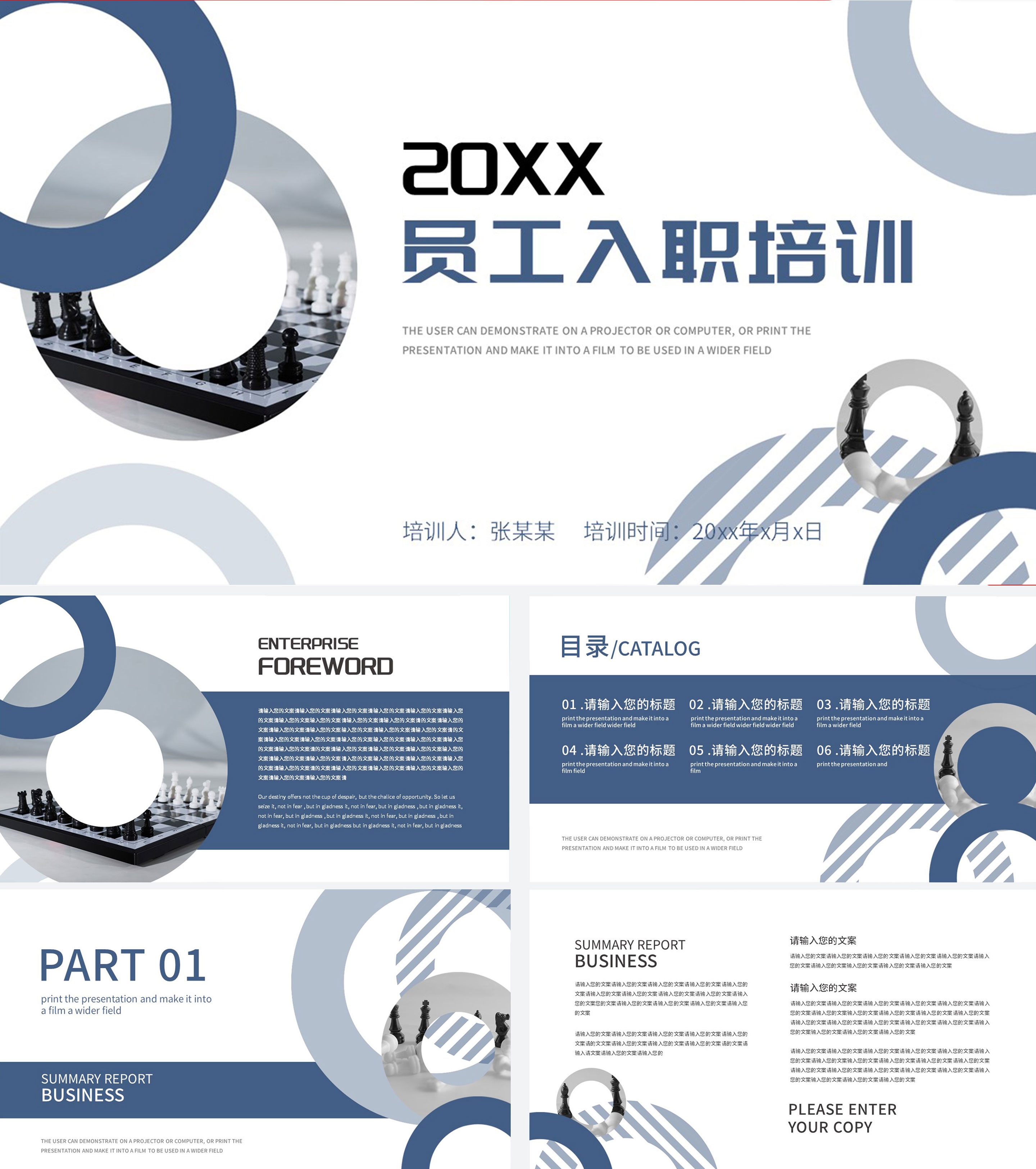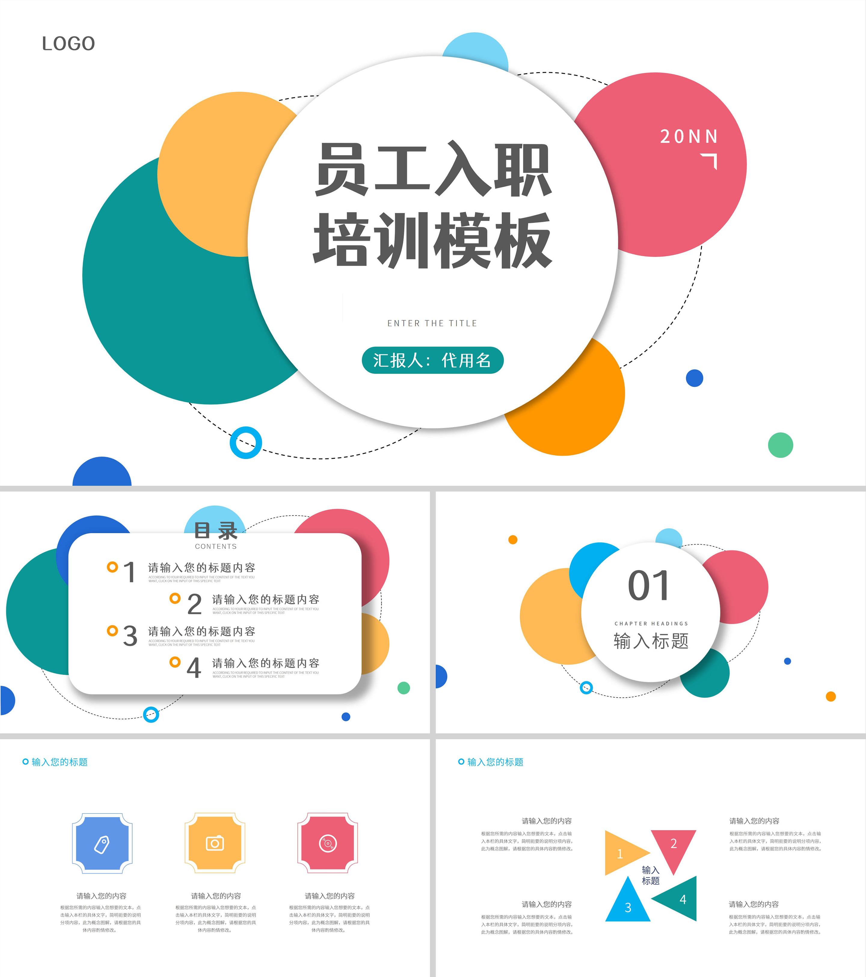 蓝色圆圈商务员工入职培训PPT模板