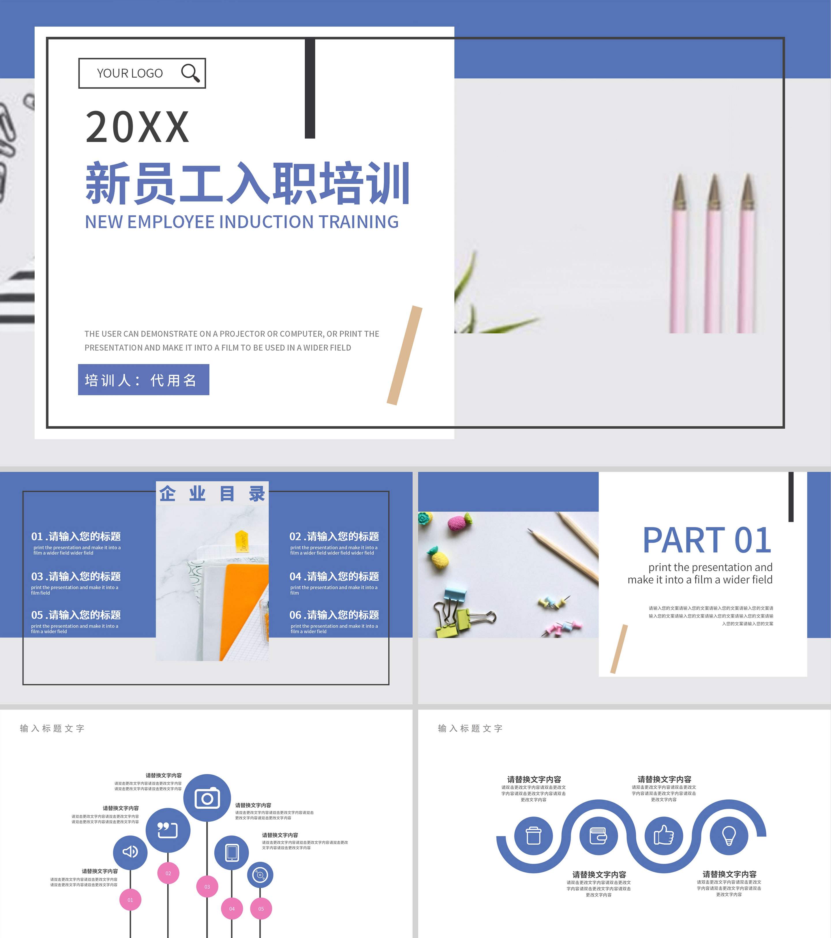 蓝色简约风入职培训PPT模板