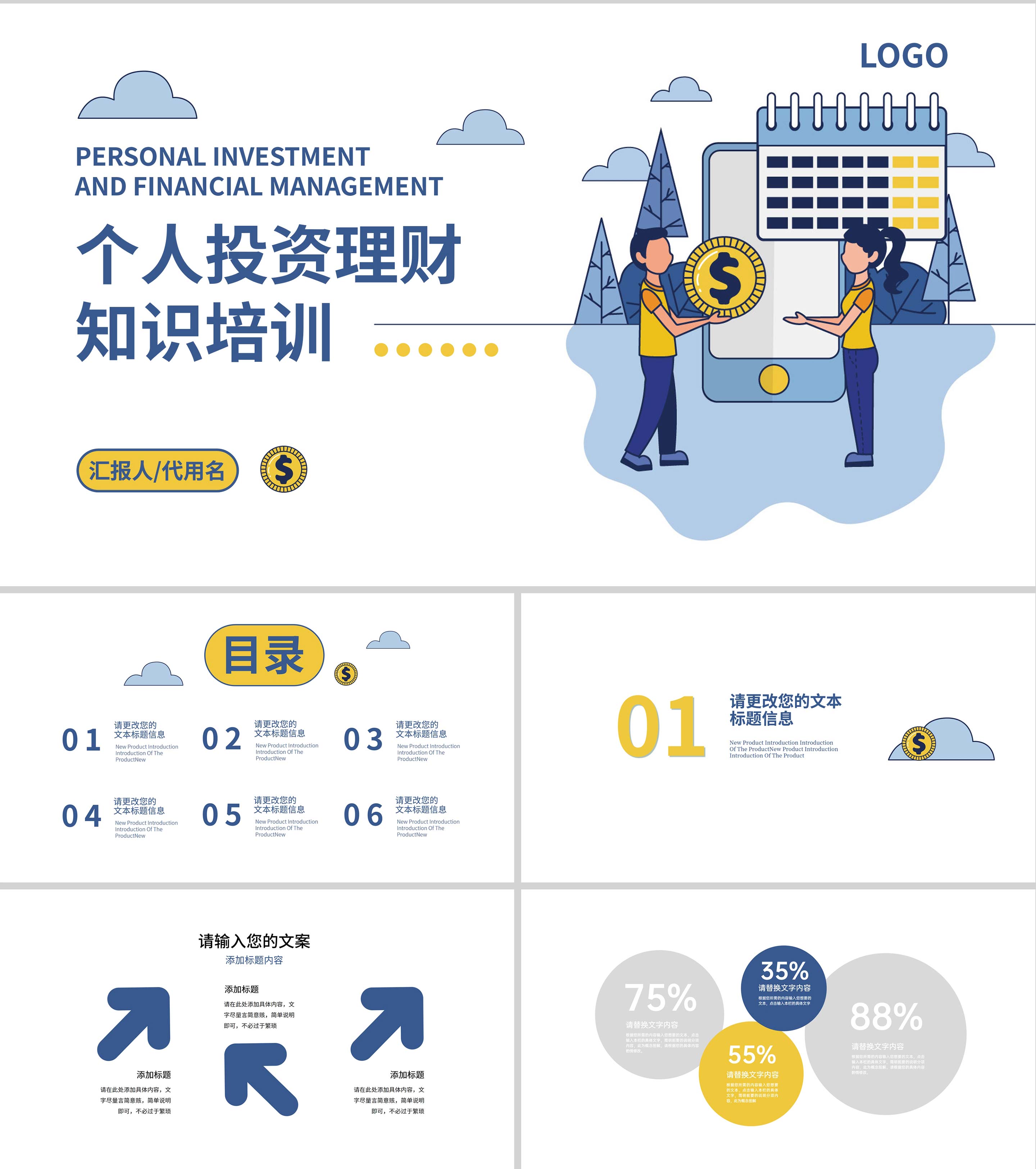 蓝色插画风理财知识培训PPT模板