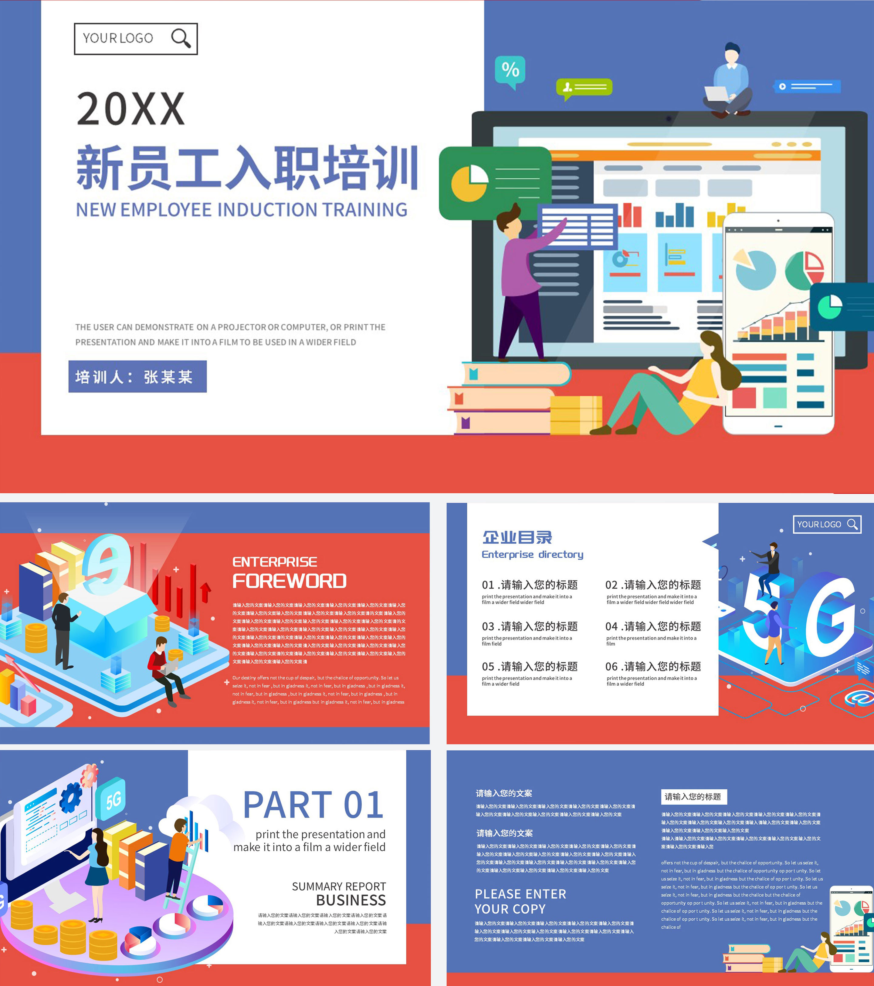 蓝色2.5D卡通入职培训PPT模板