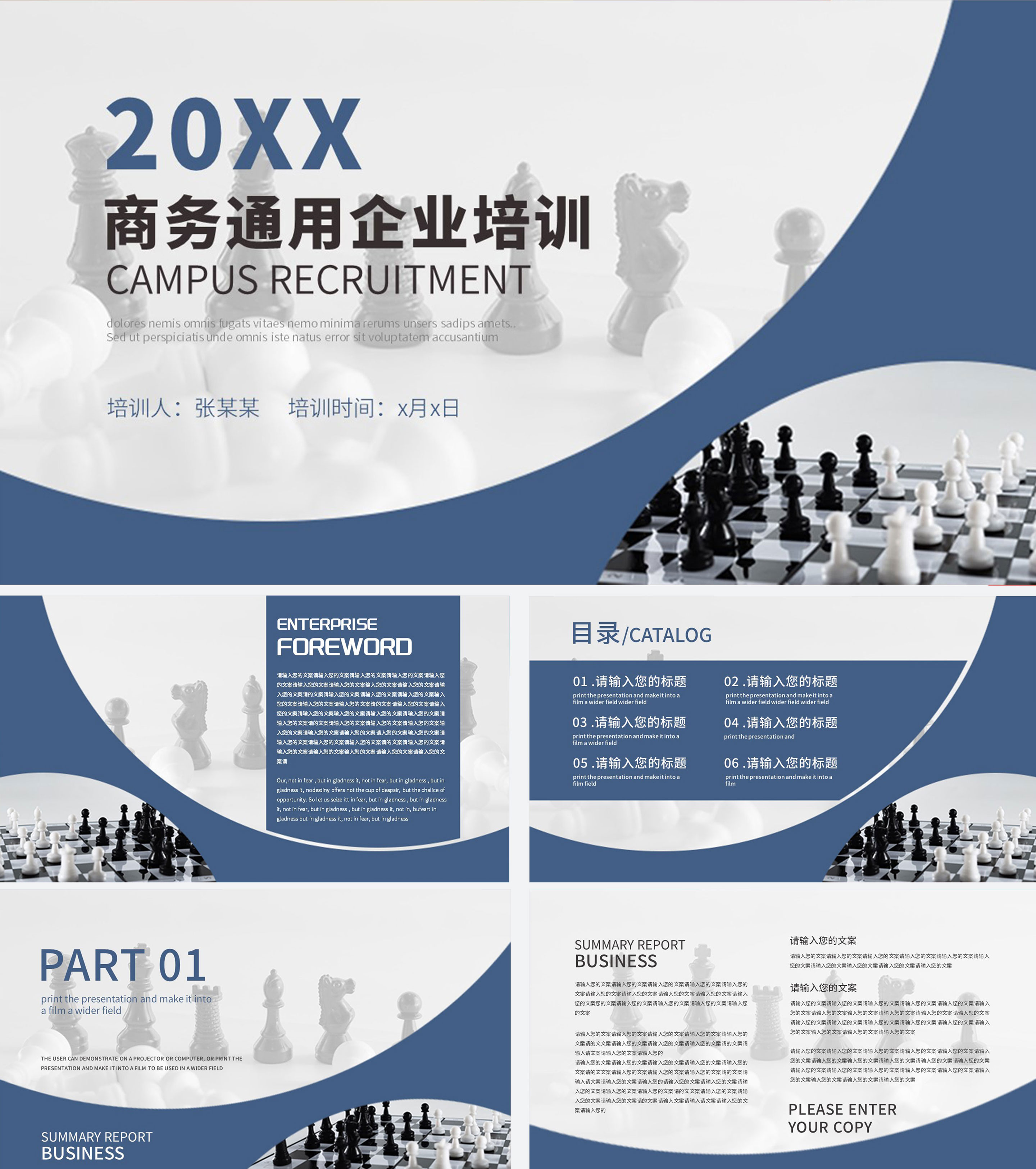 深蓝商务风企业通用入职课程培训PPT模板