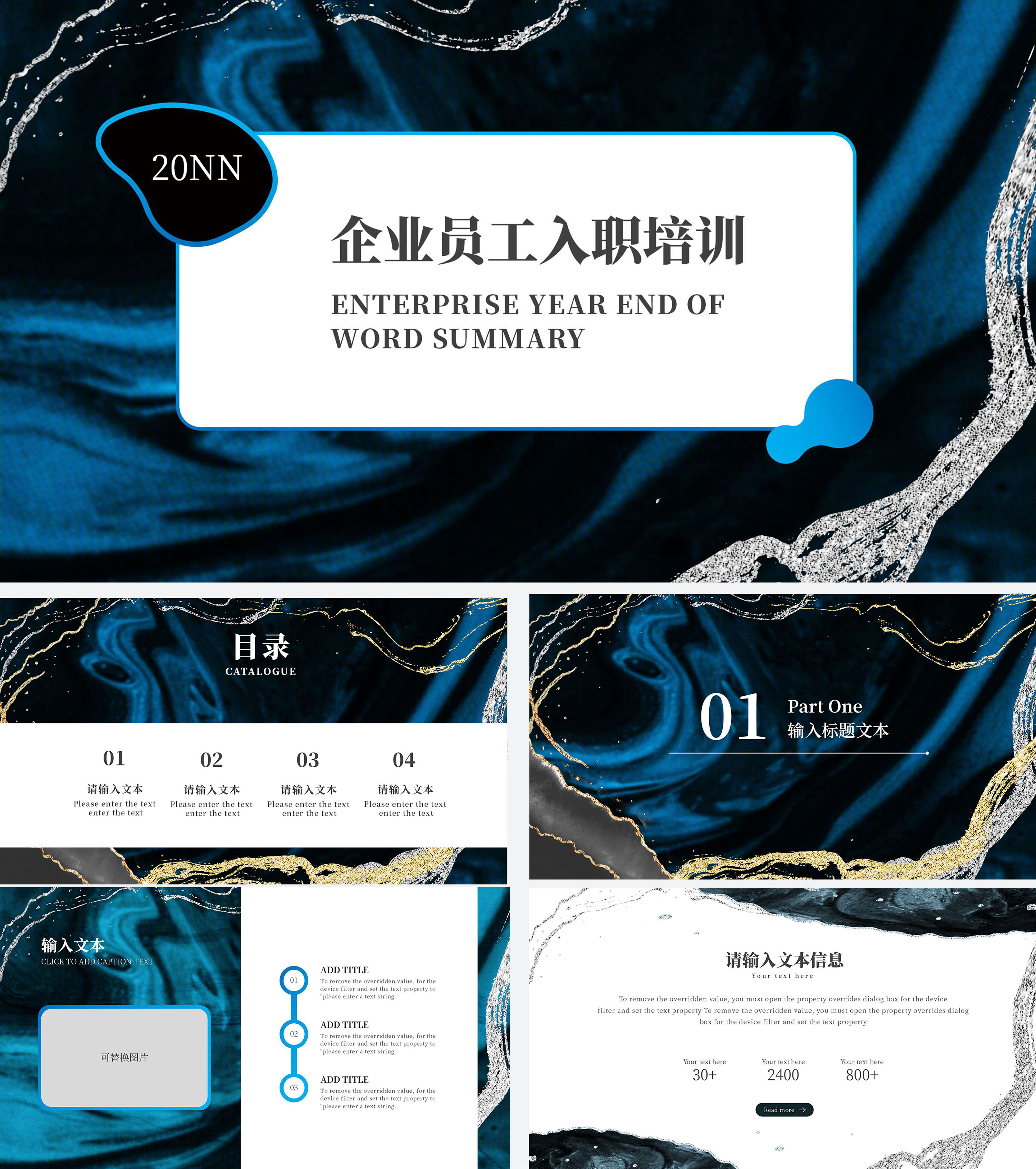 深蓝色理石企业入职培训PPT模板