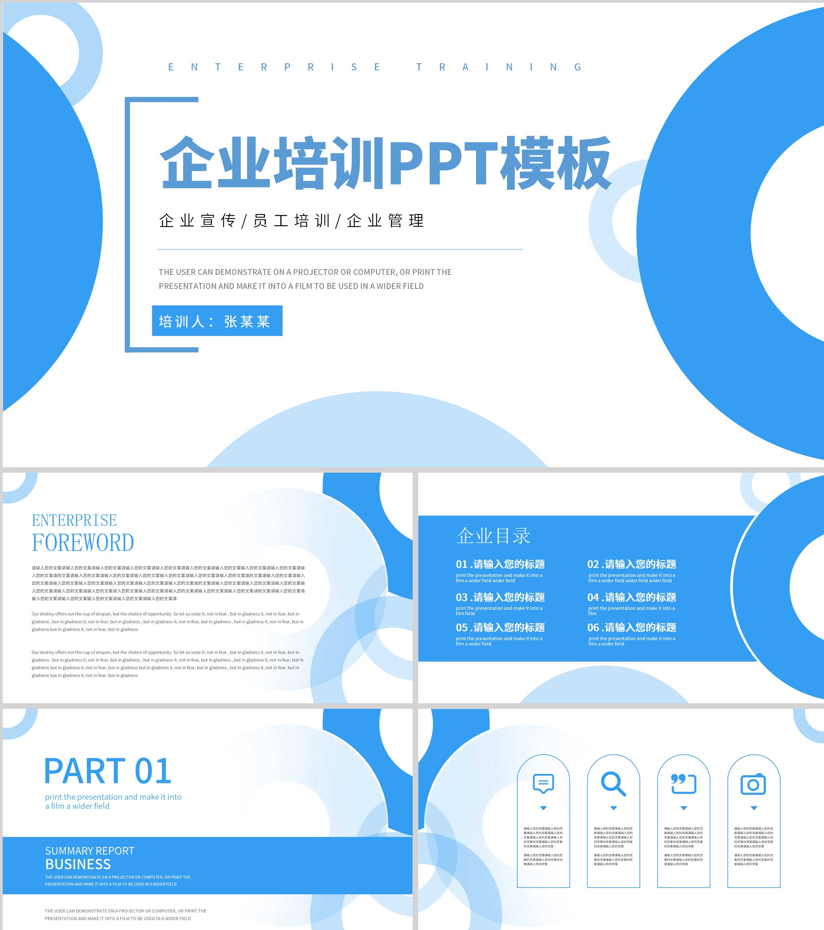 蓝色气泡简约企业培训PPT模板