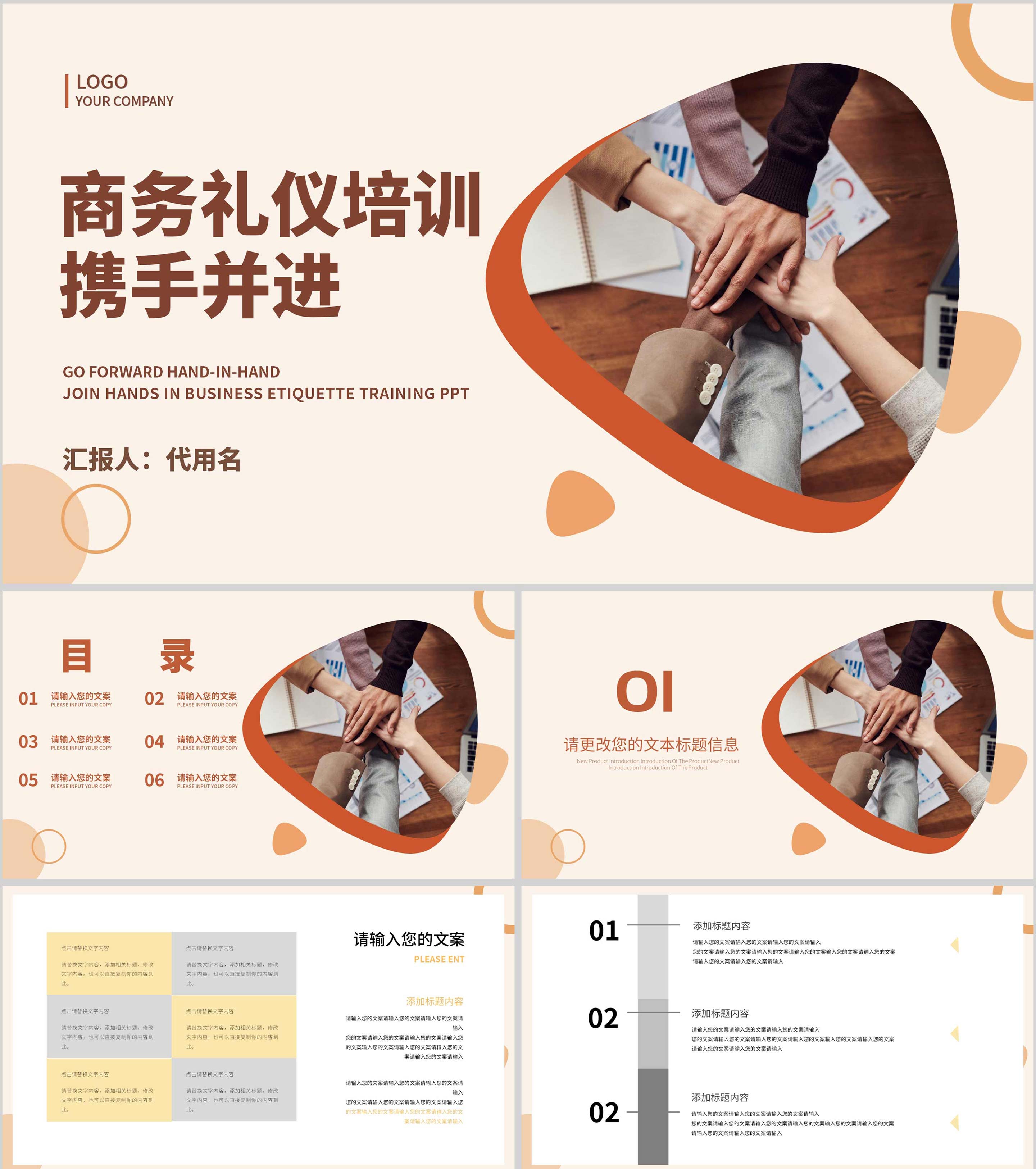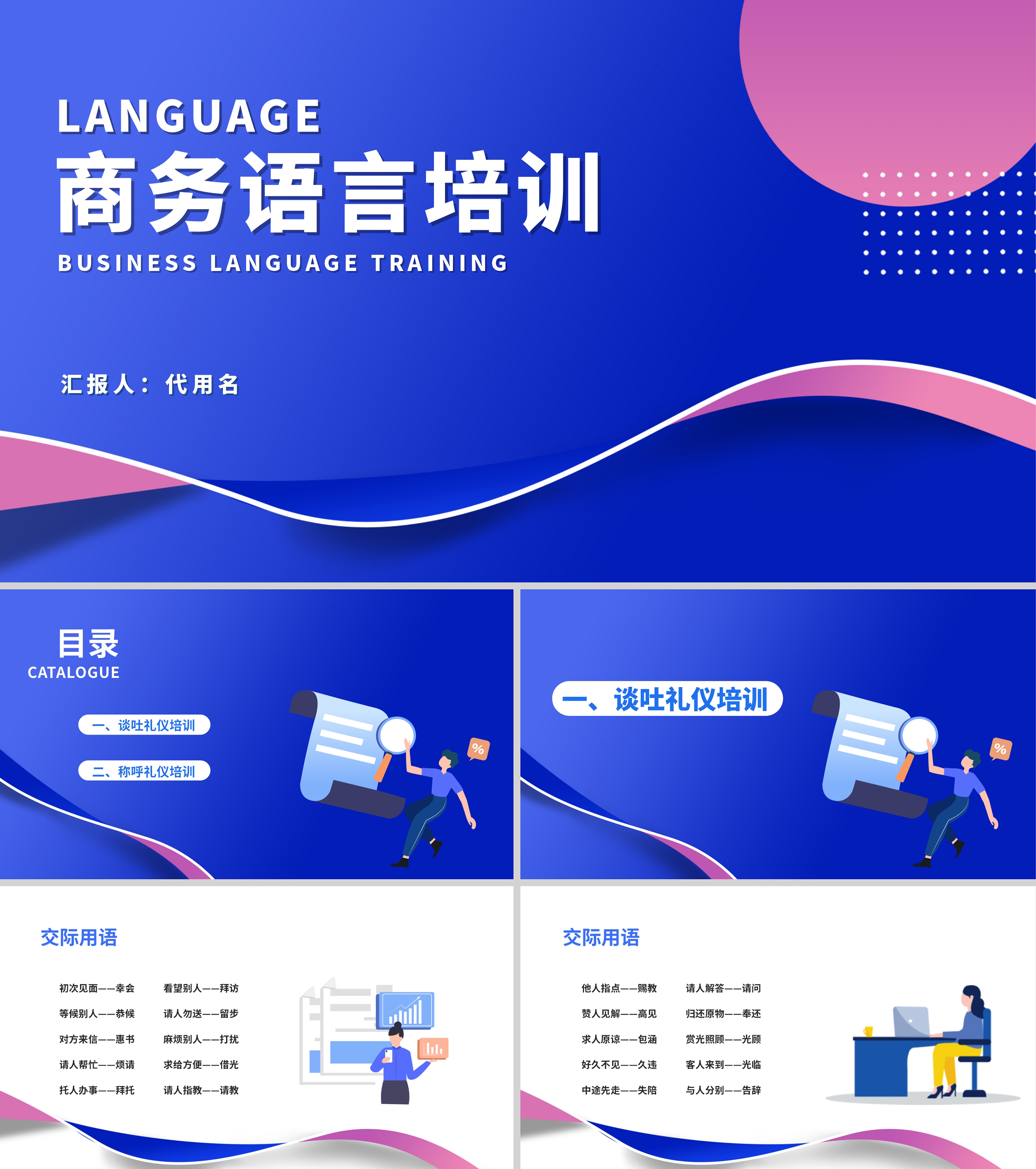 蓝色几何风销售商务礼仪会面培训PPT模板