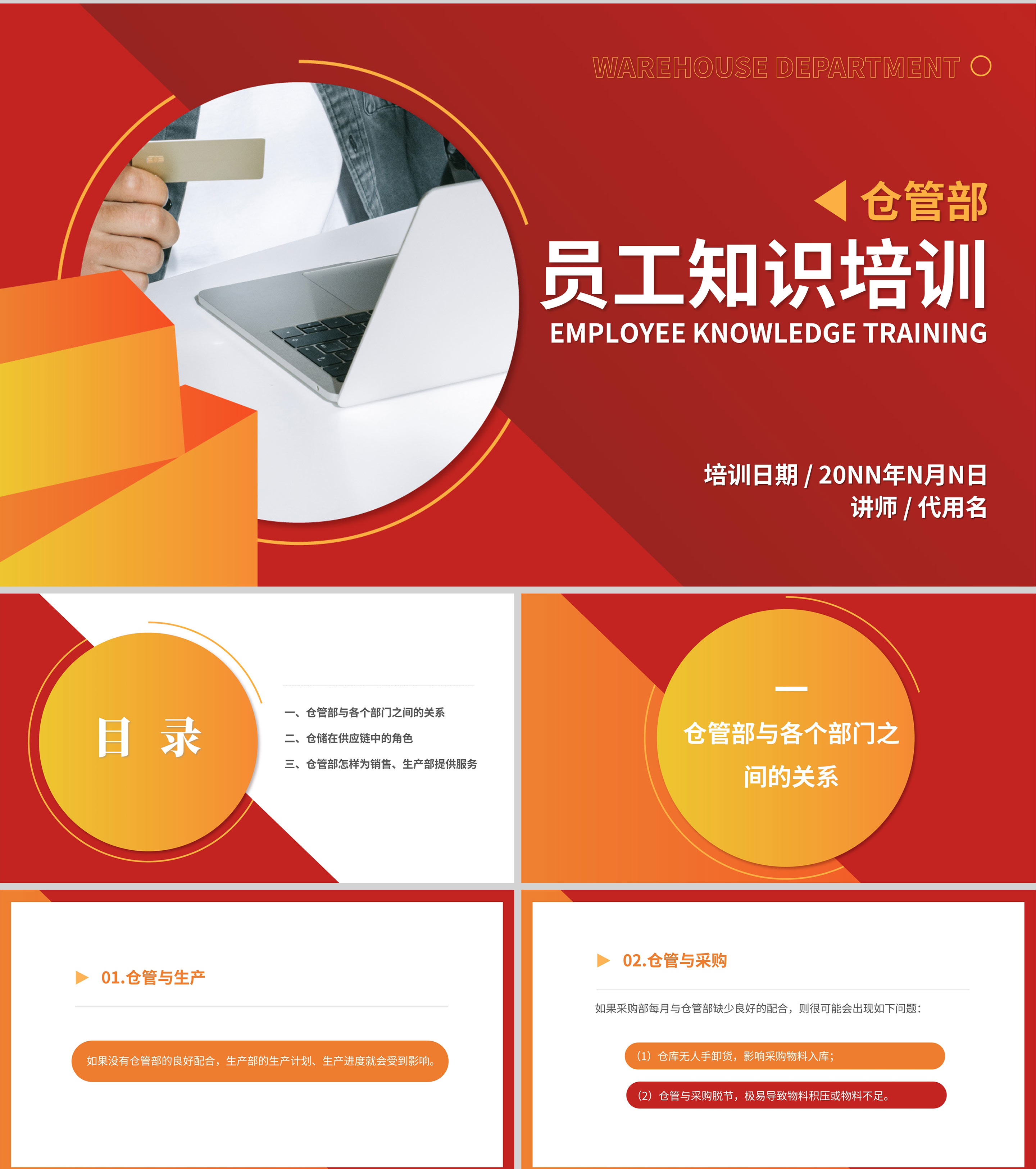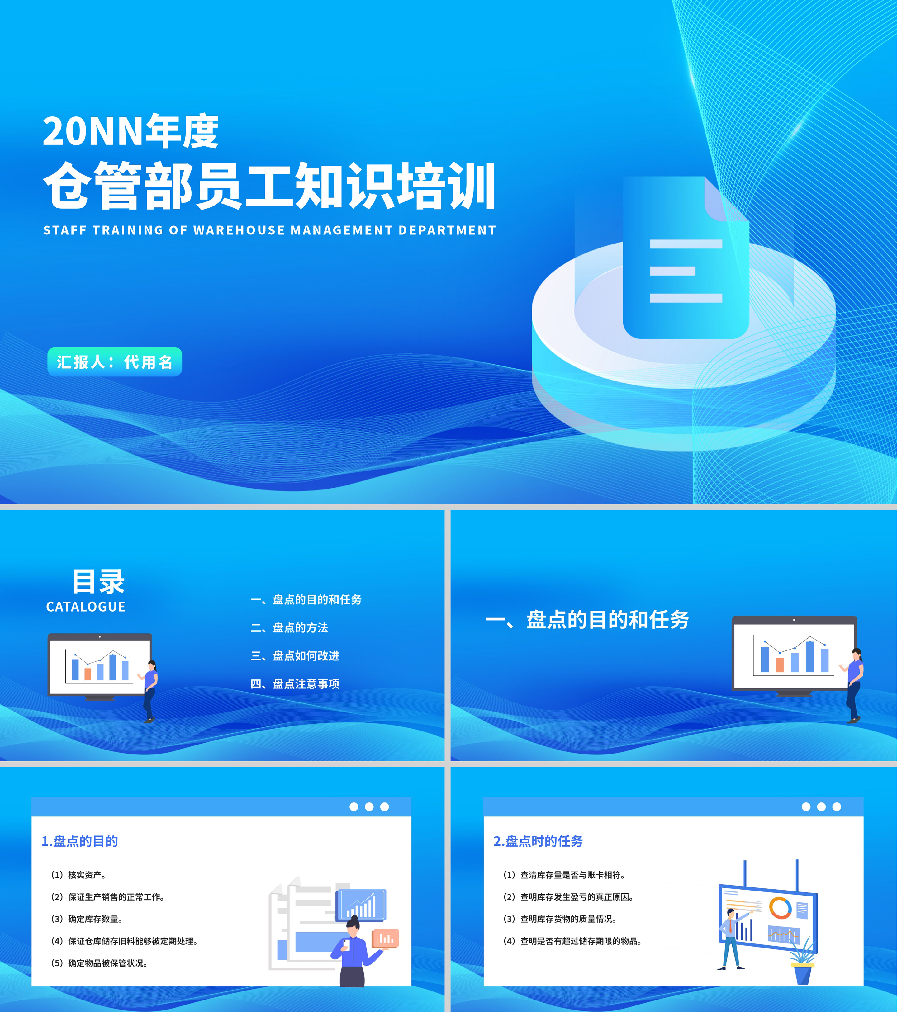蓝色扁平风仓库员工盘点知识培训PPT模板