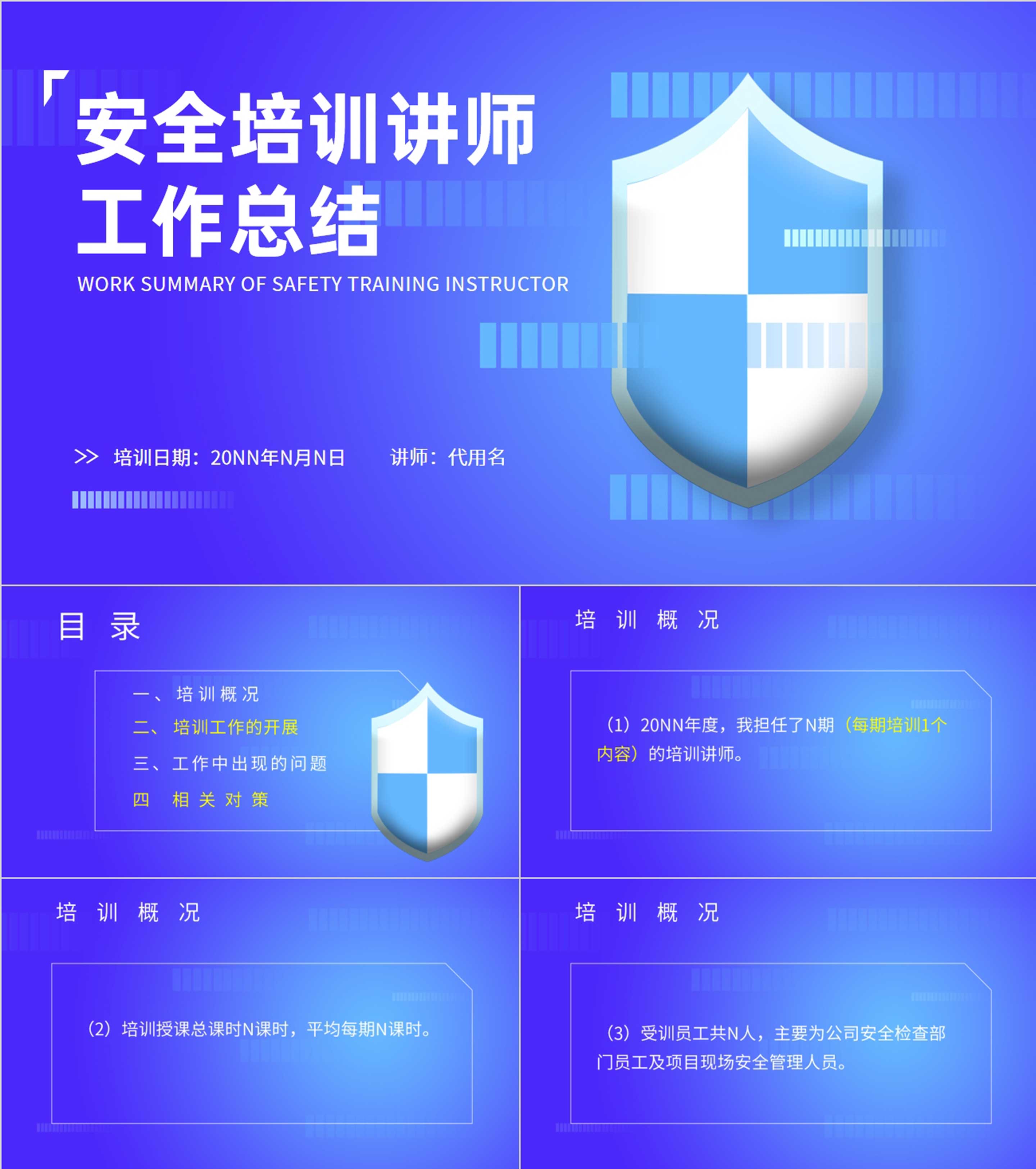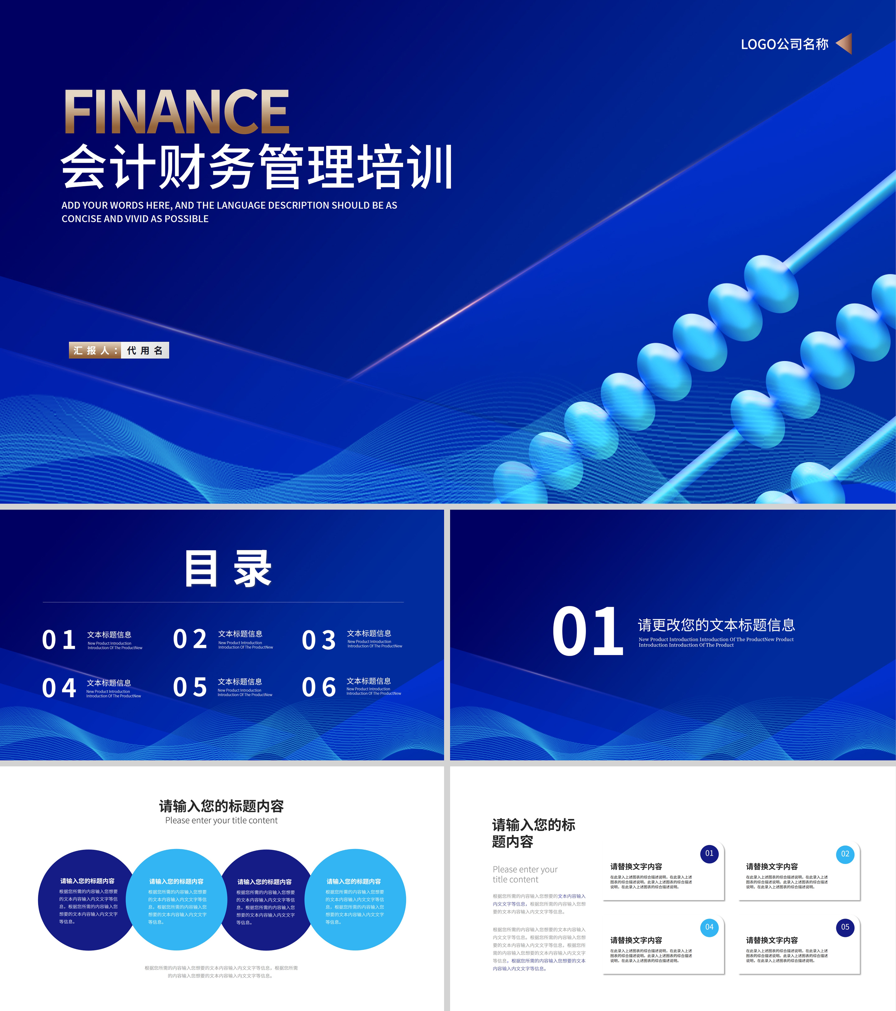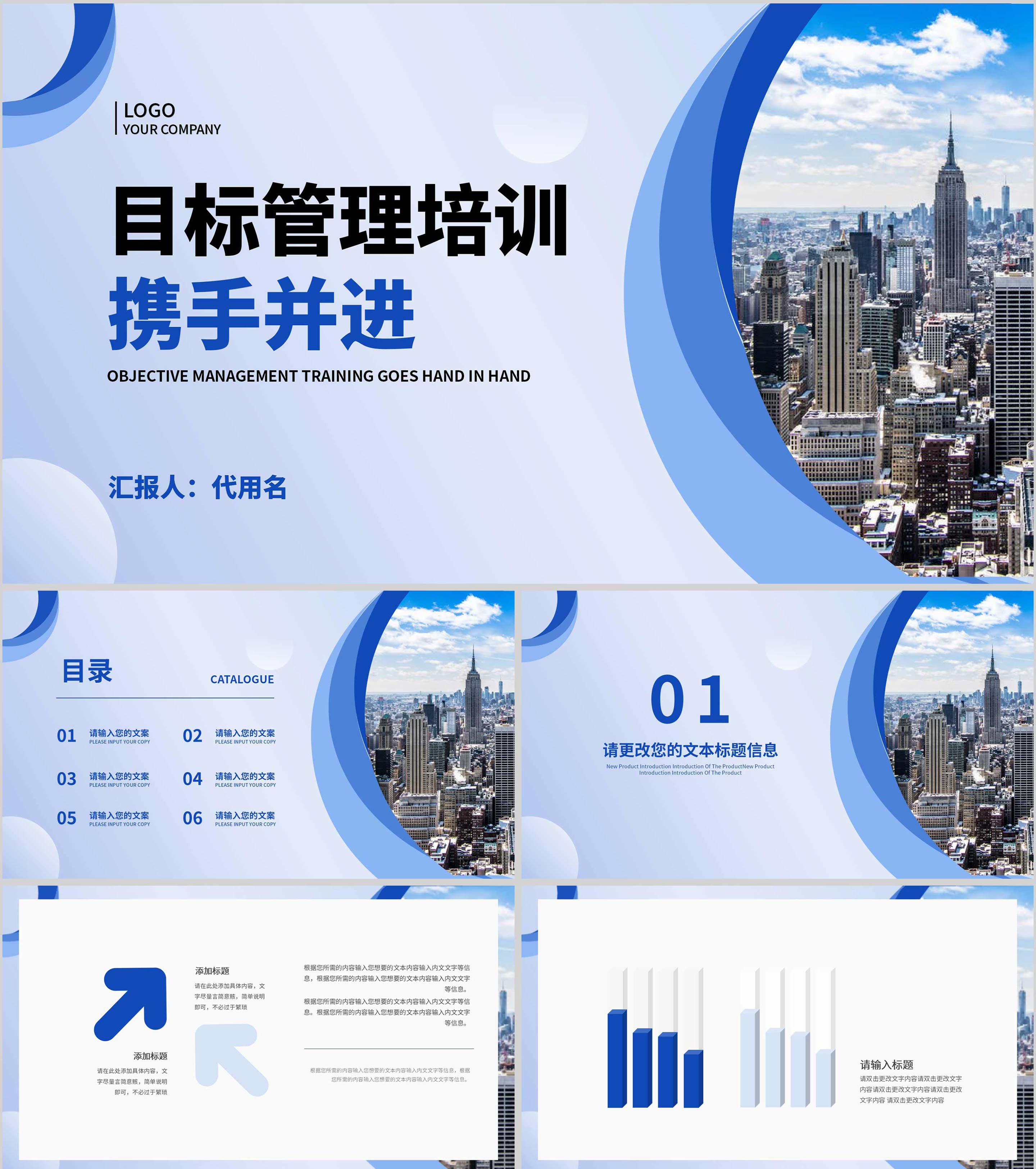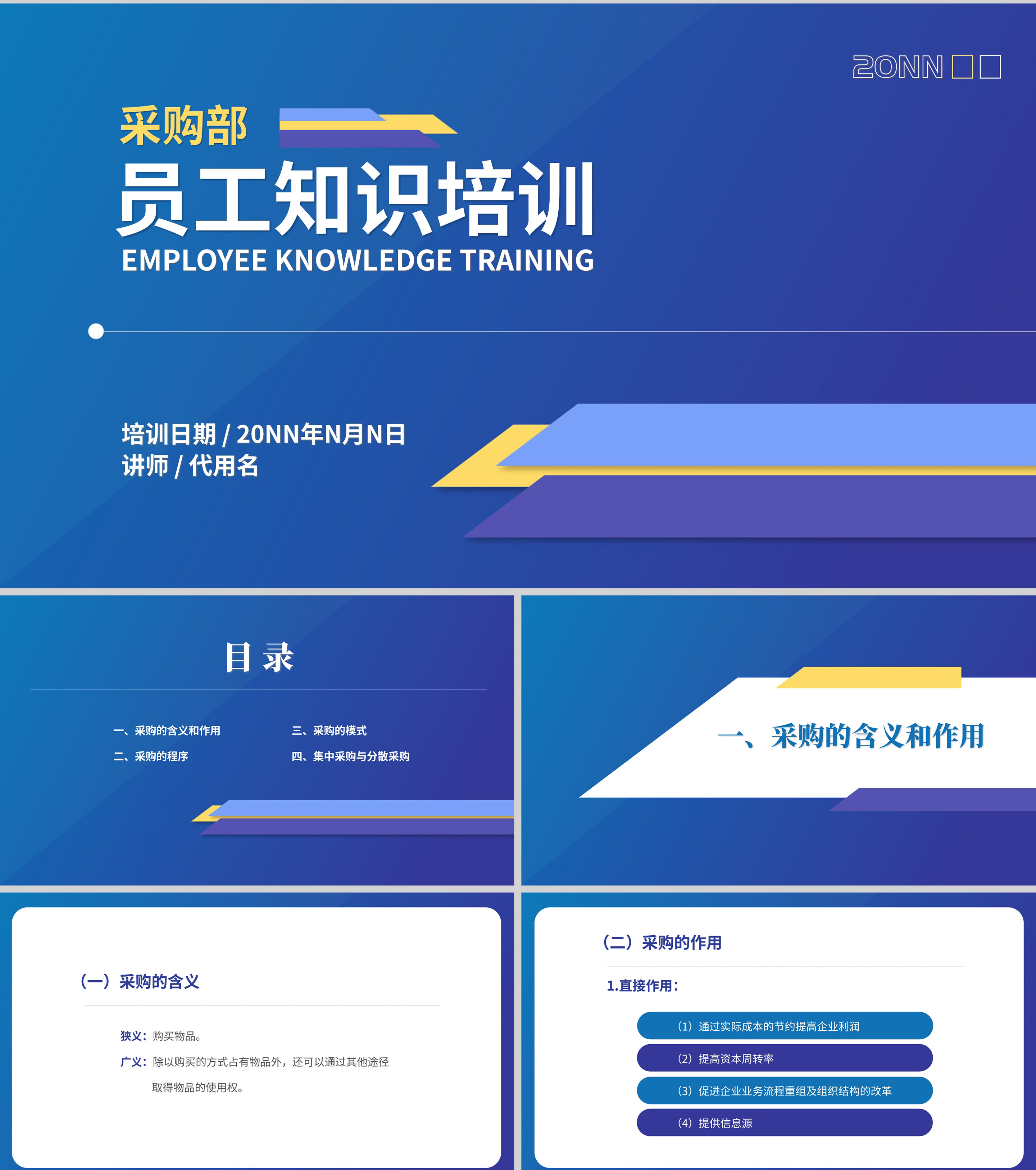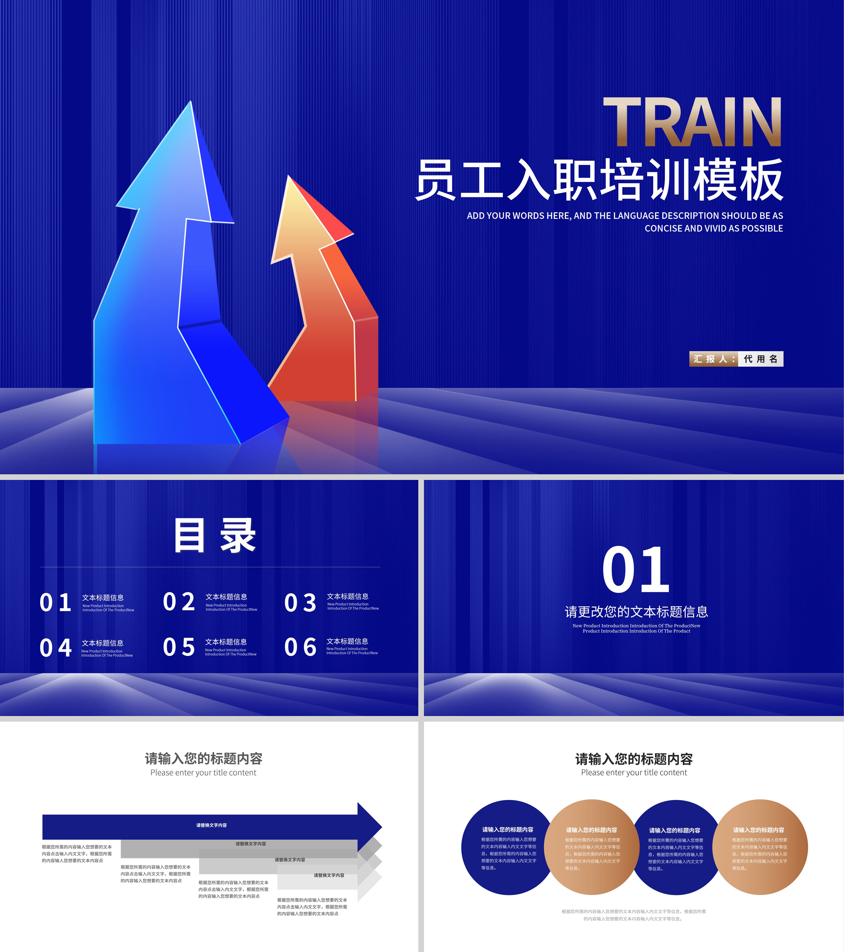 几何风蓝色文件夹企业通用入职培训PPT模板