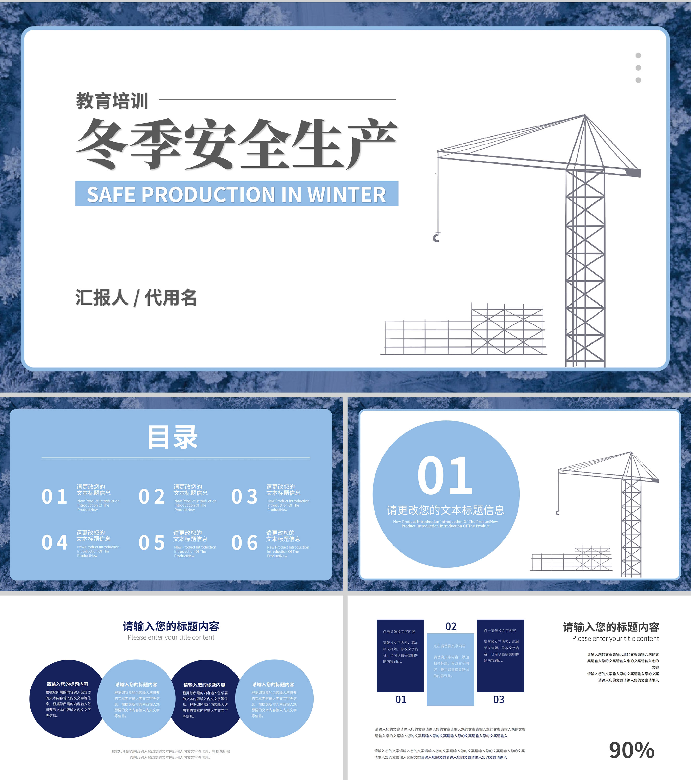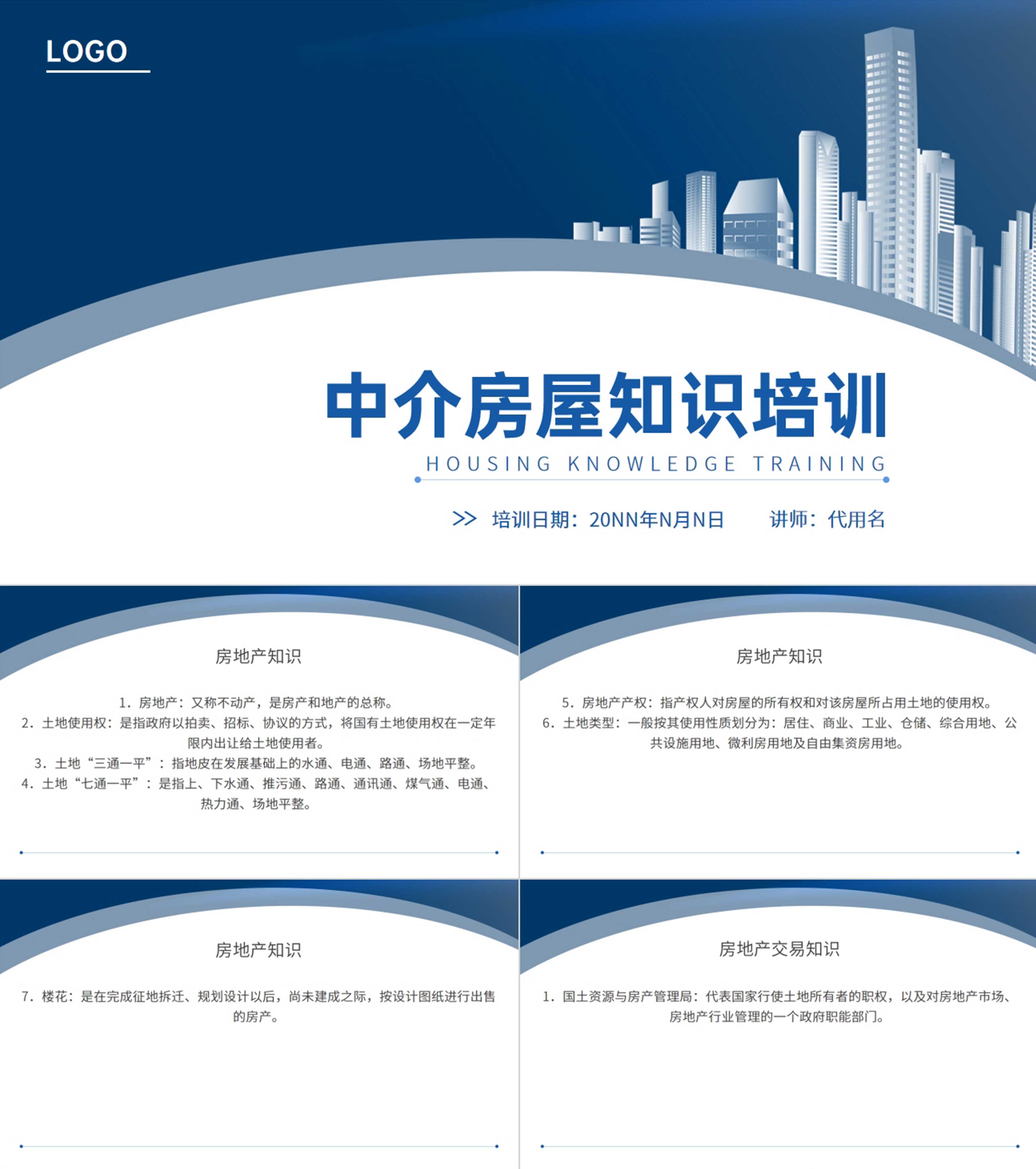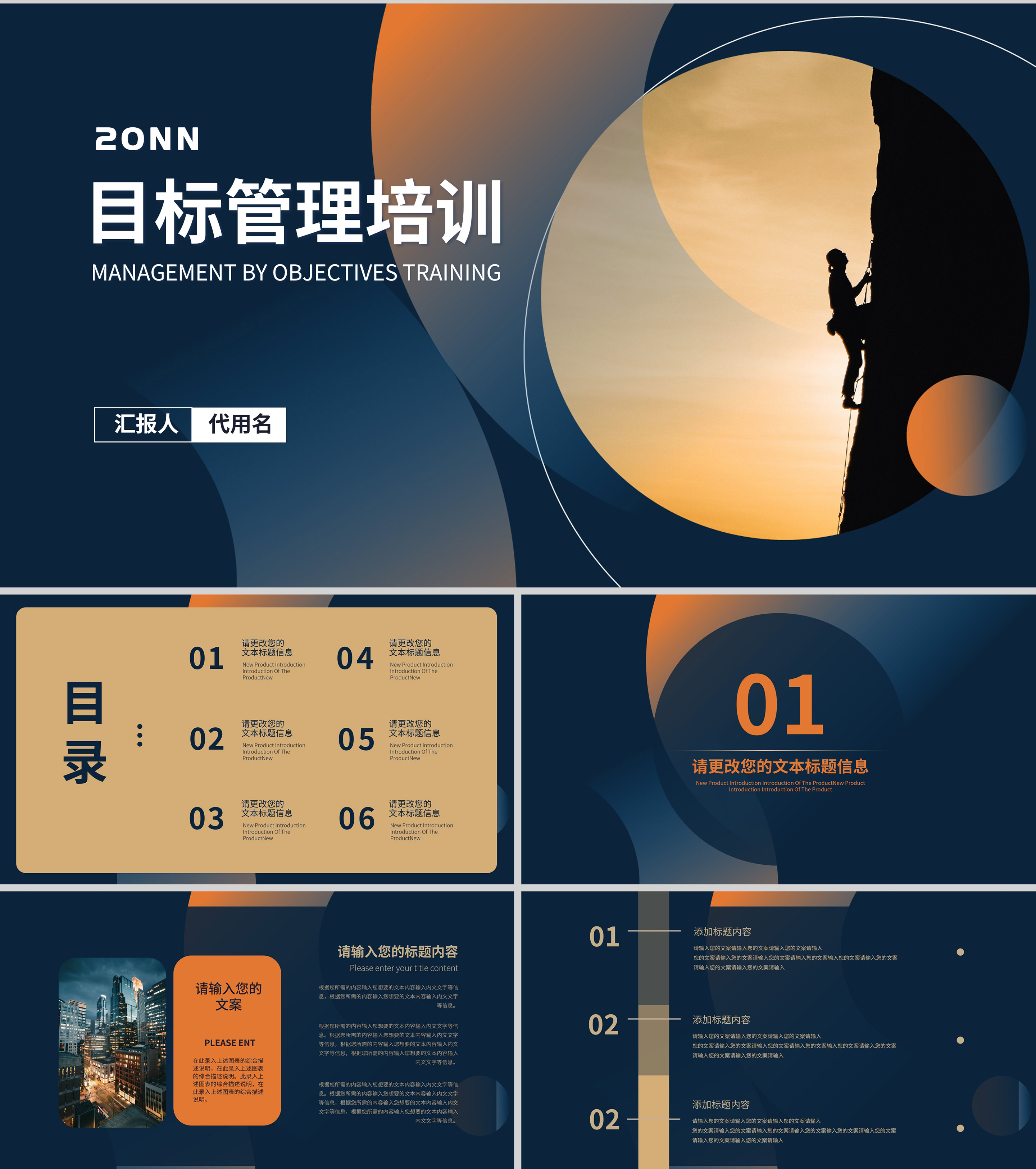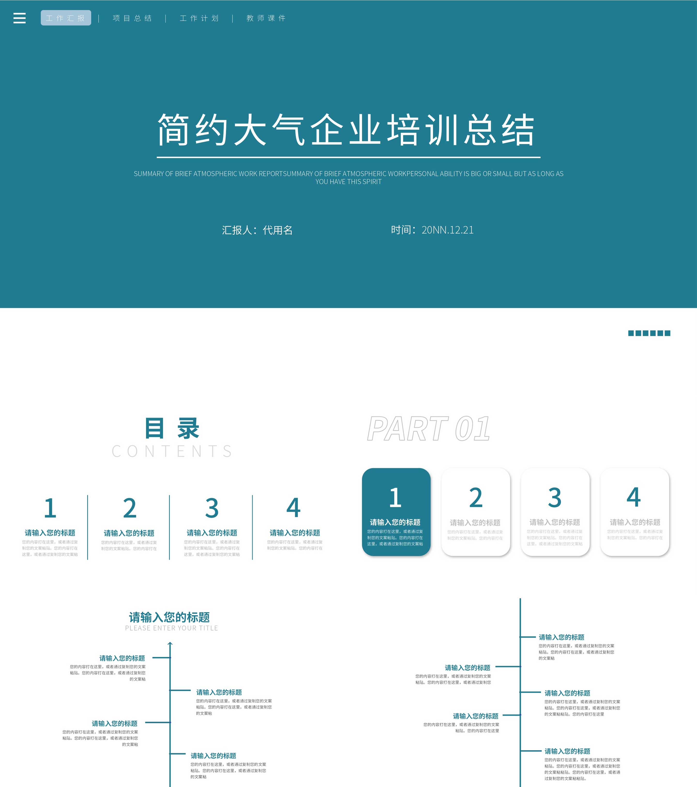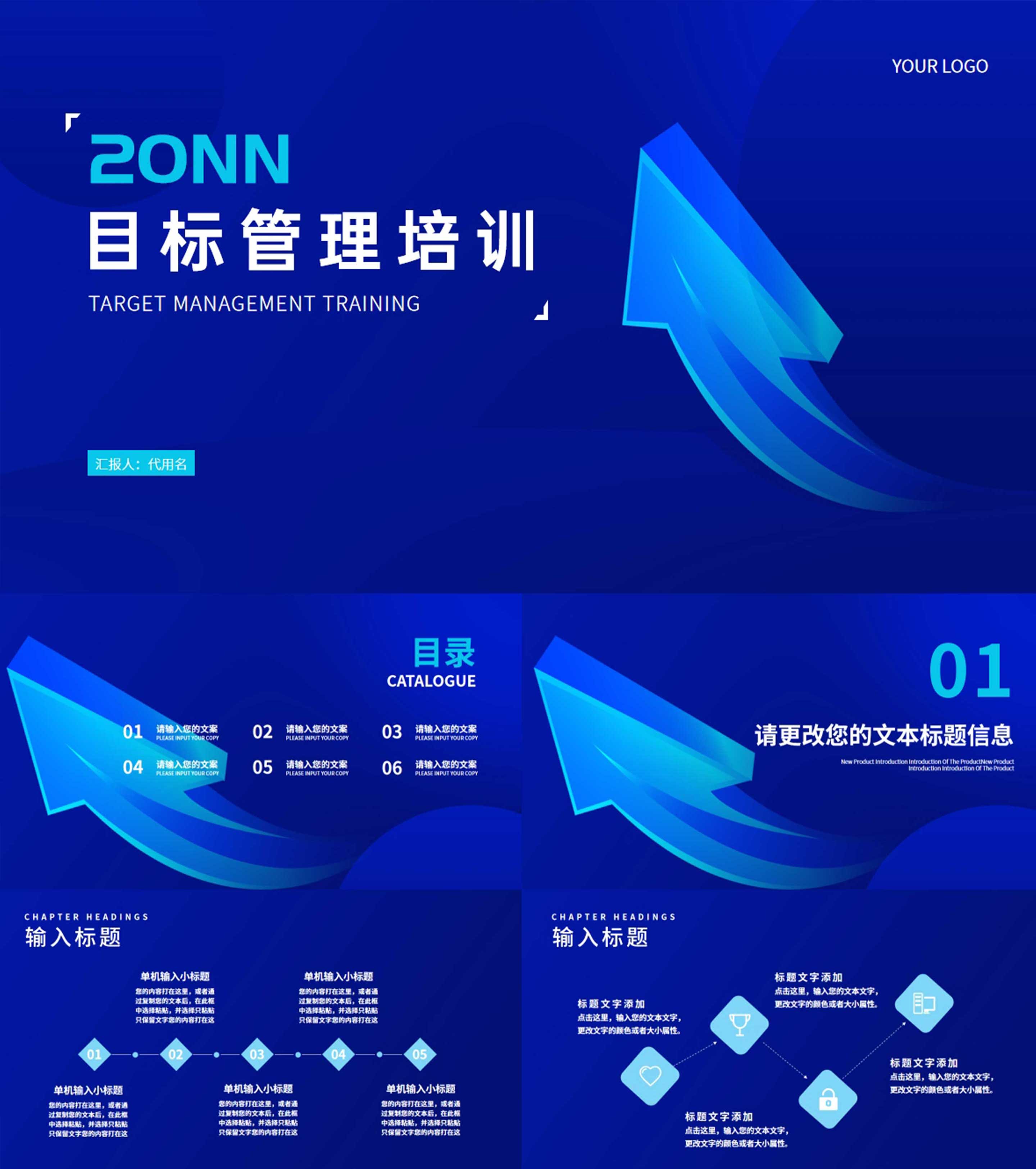 几何风蓝色文件夹企业通用入职培训PPT模板