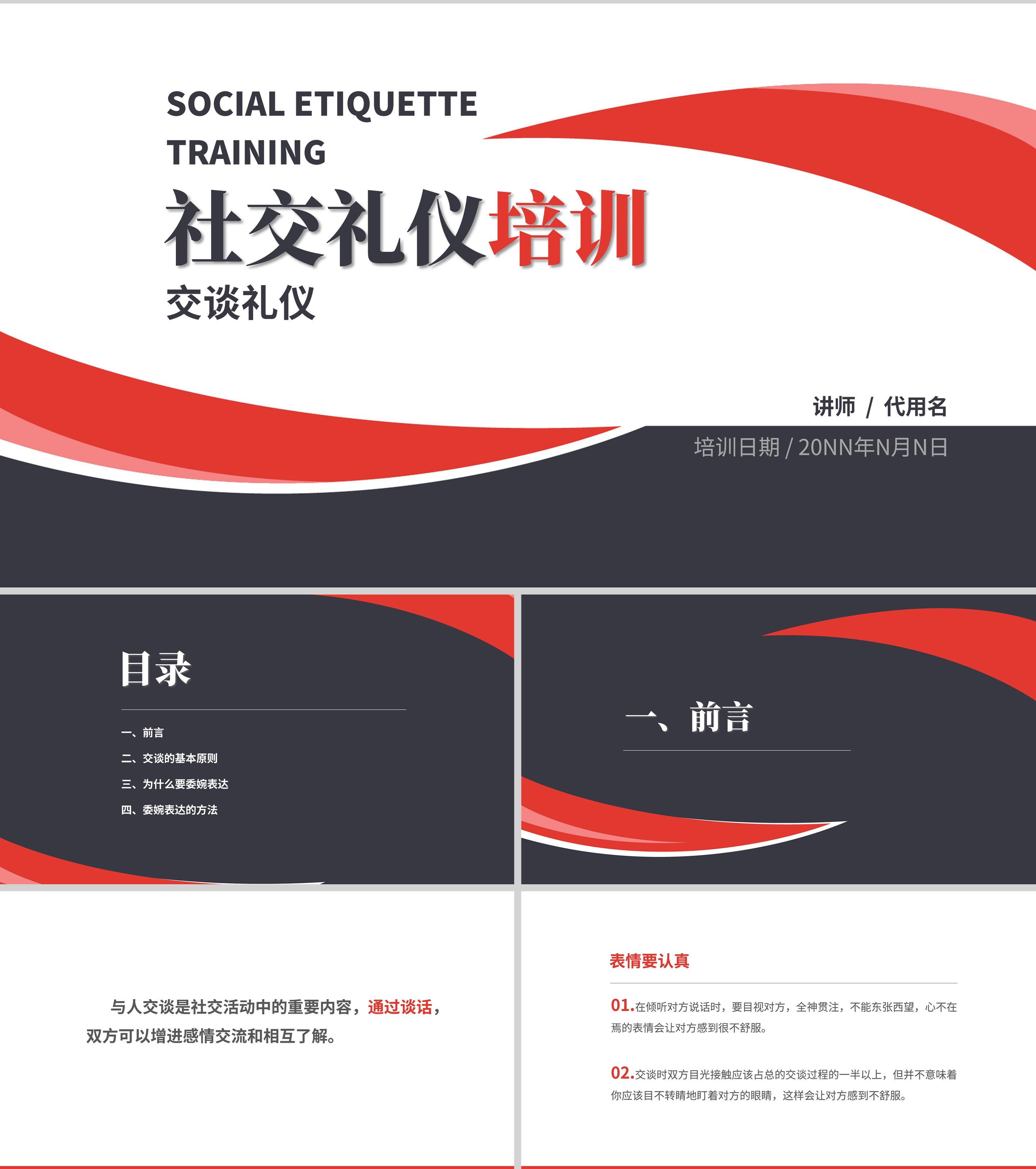 白色商务风社交礼仪培训交谈礼仪PPT模板