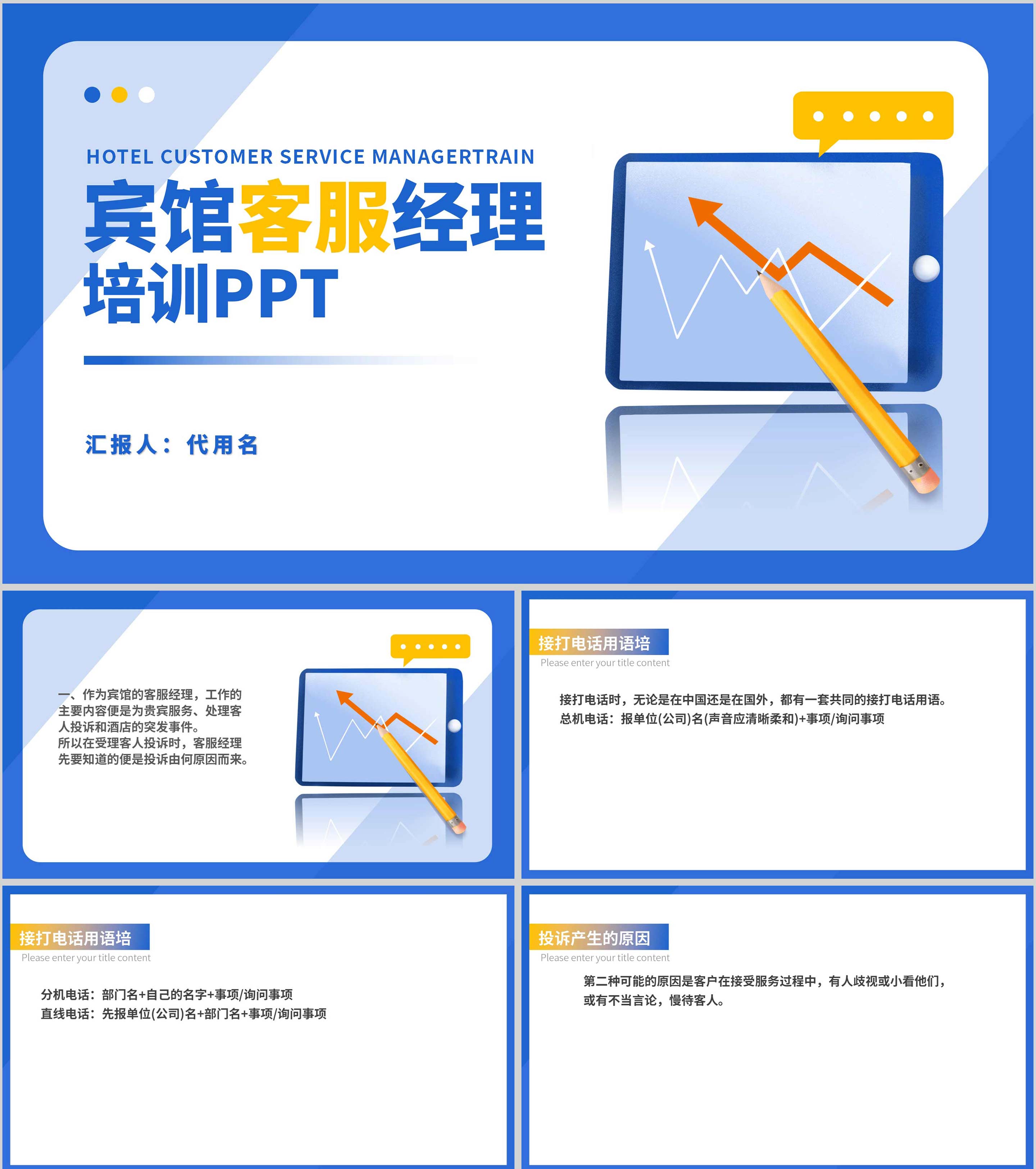 蓝色扁平风宾馆客服经理规范化管理培训PPT模板