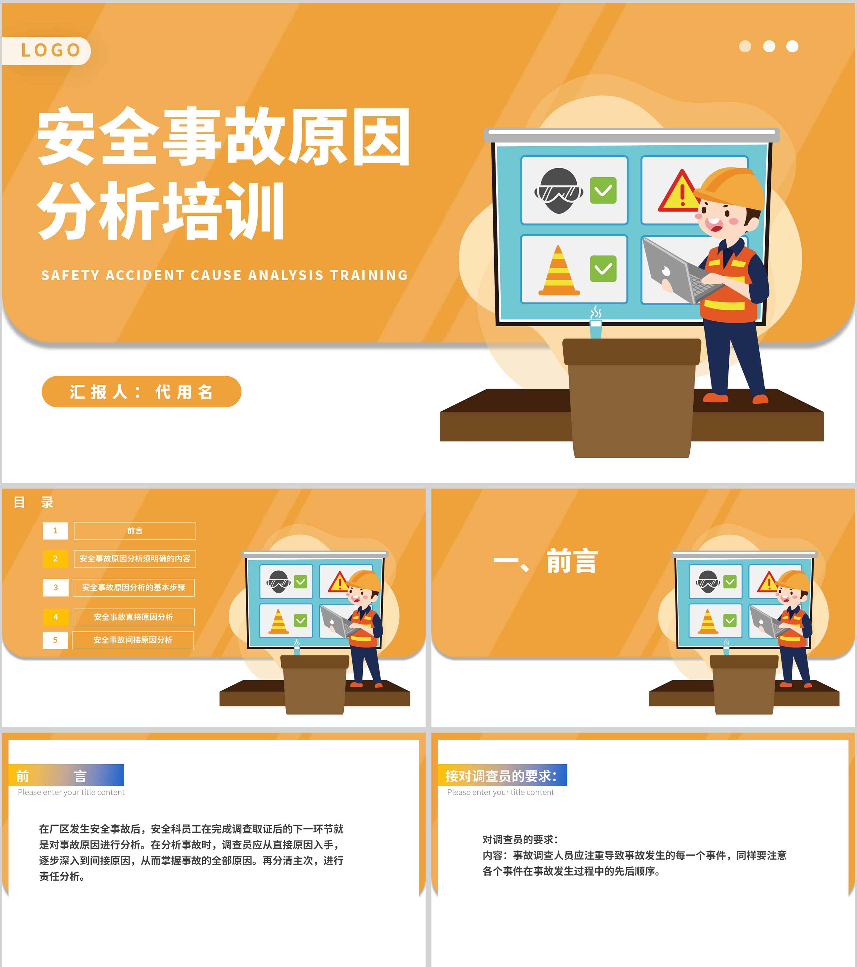 黄色卡通风施工安全事故原因分析培训PPT模板
