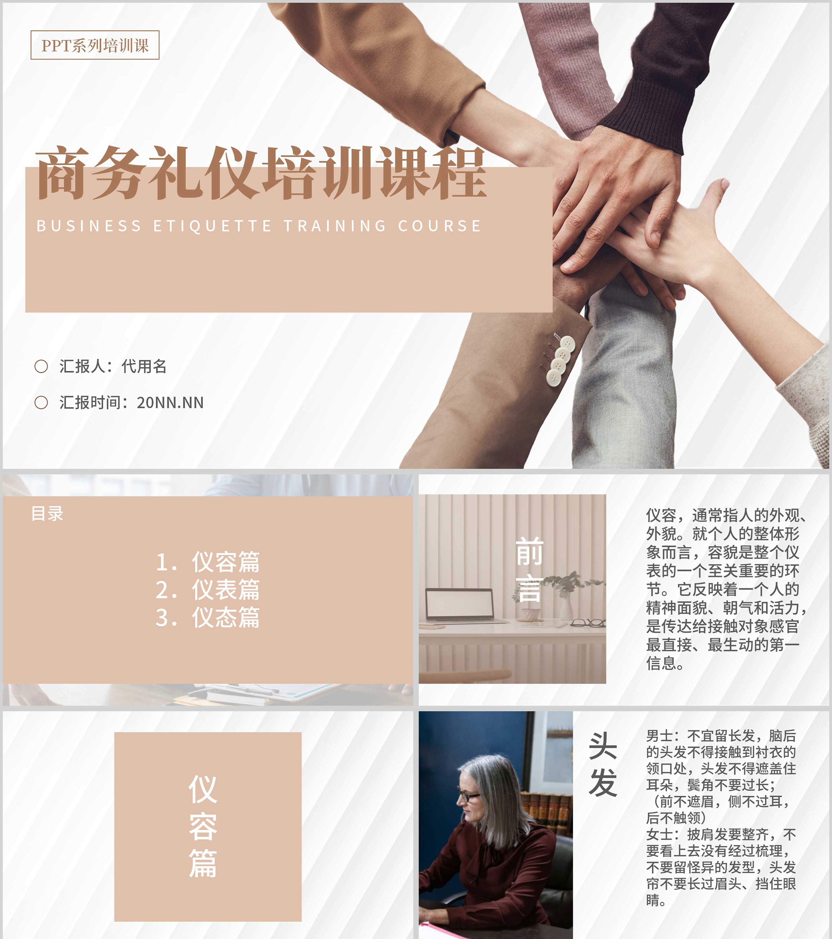 白色简约风迎宾接待商务礼仪培训PPT课程