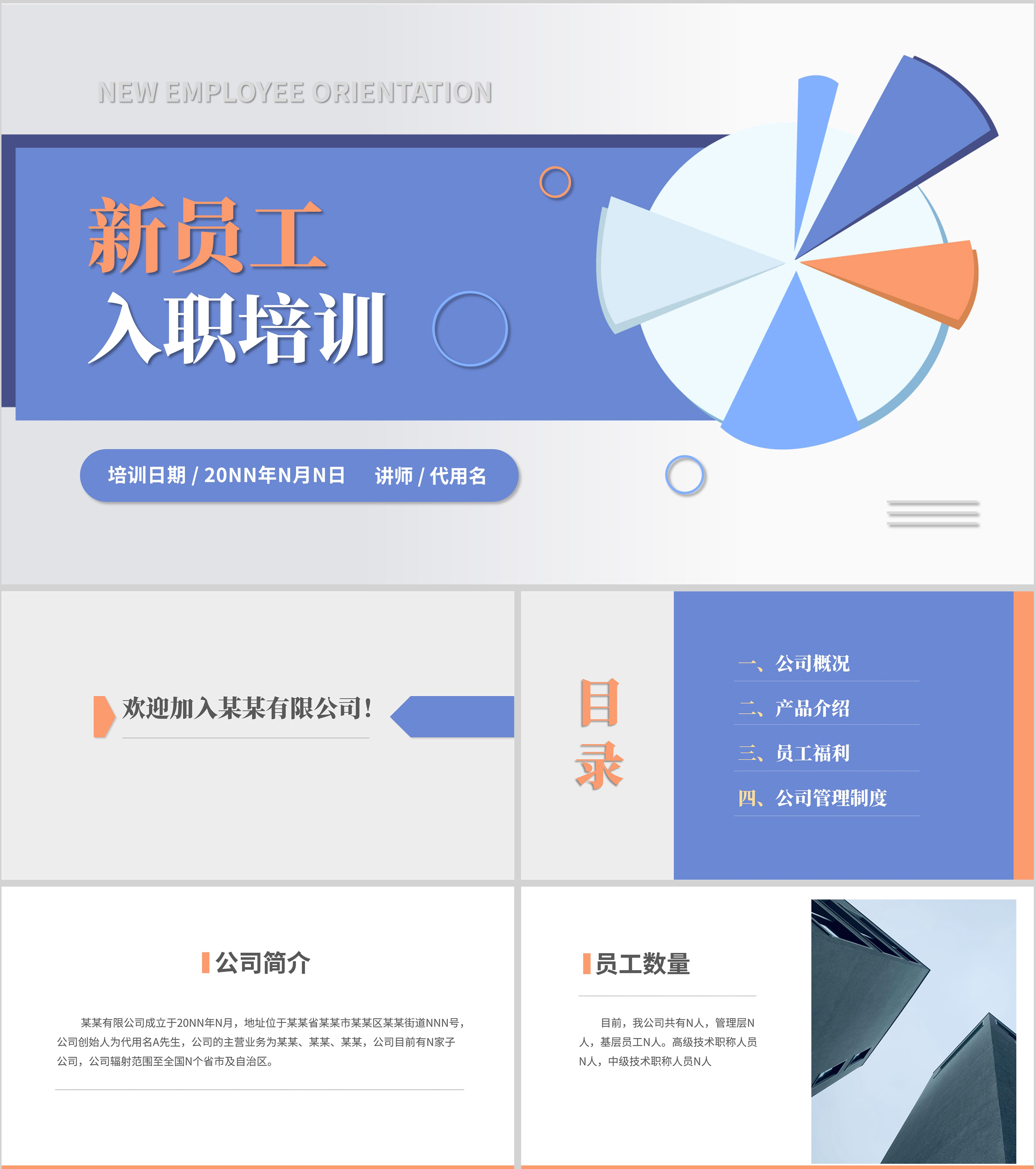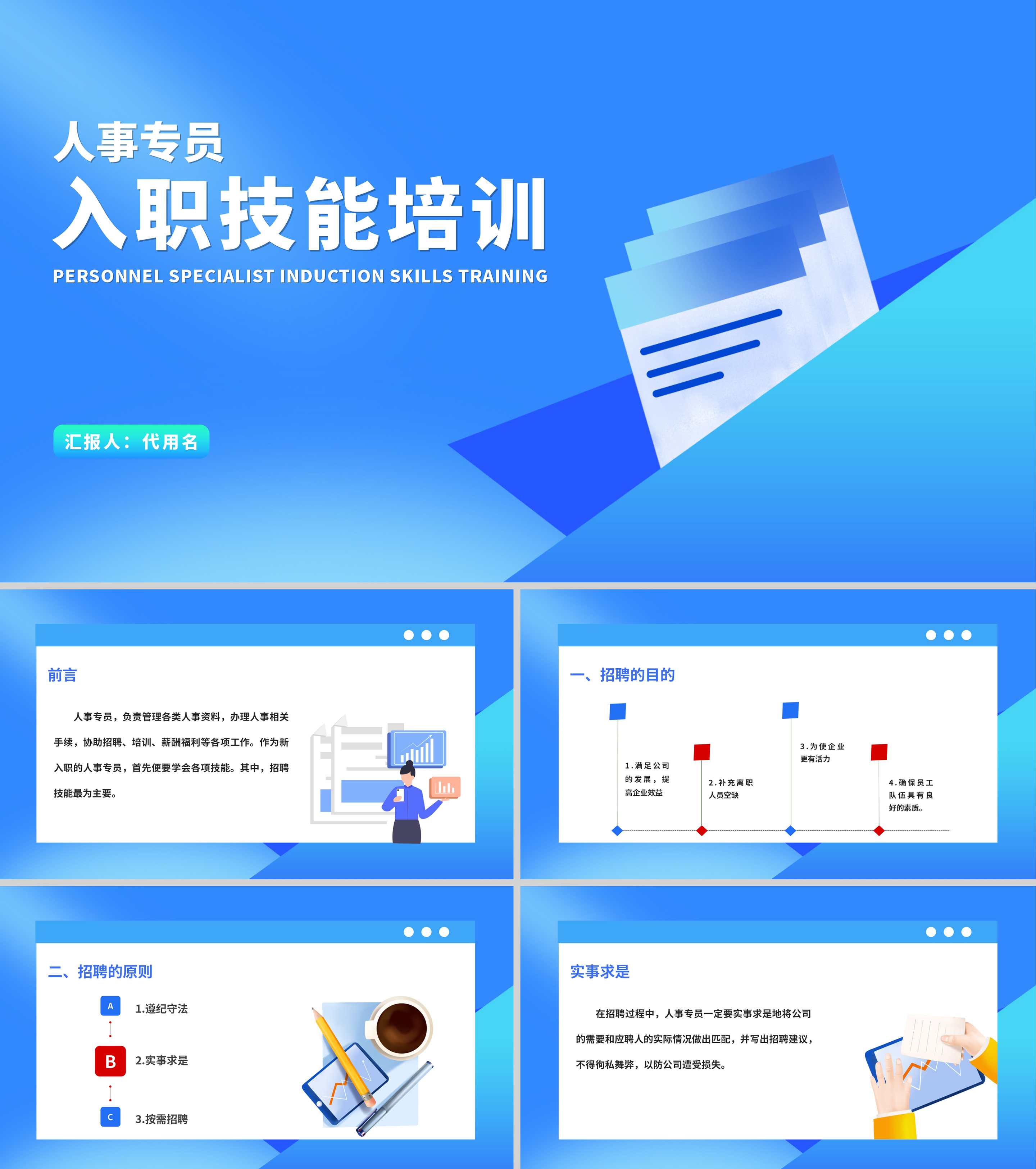 蓝色扁平风人事专员职场入职技能规范培训PPT模板