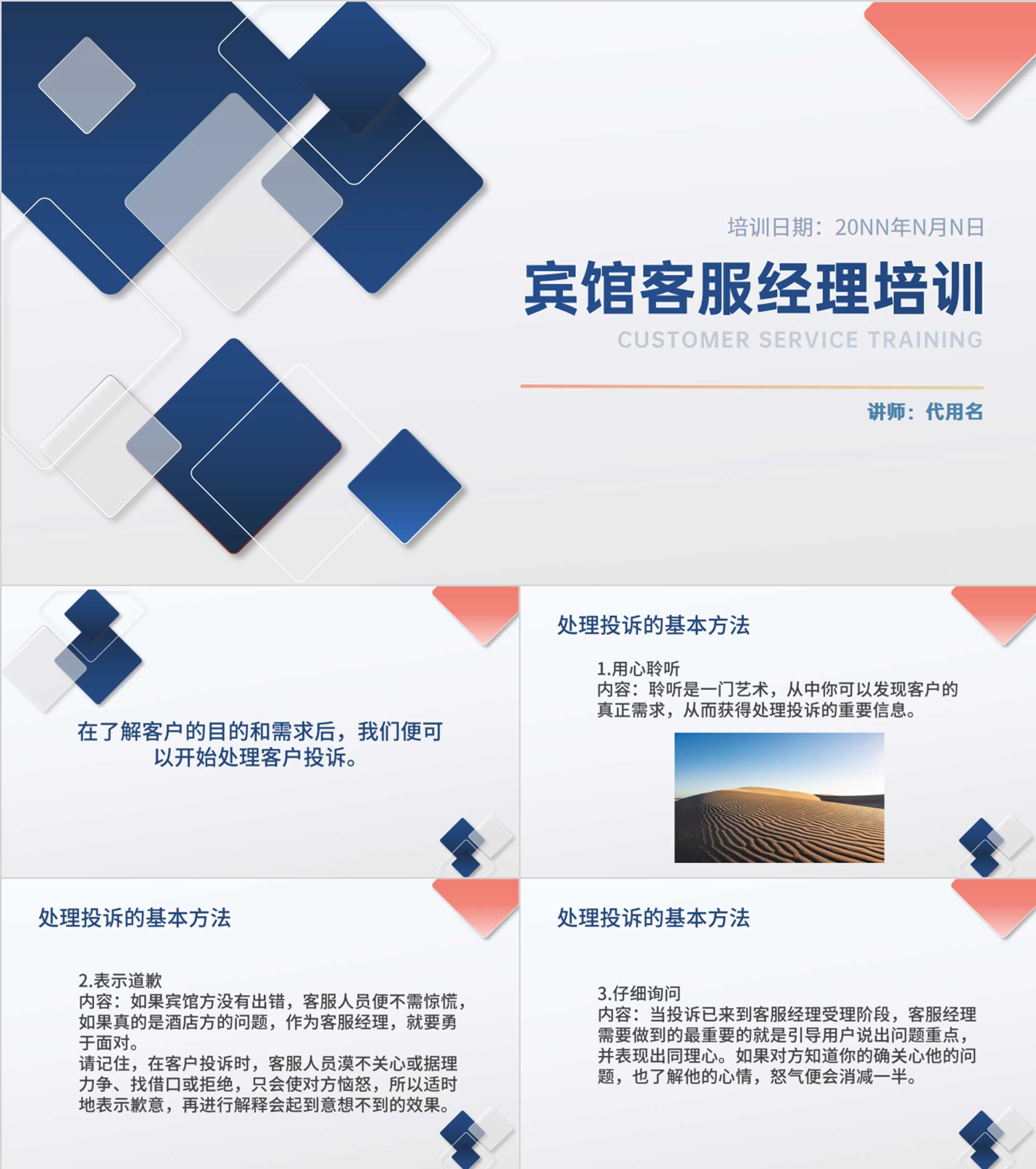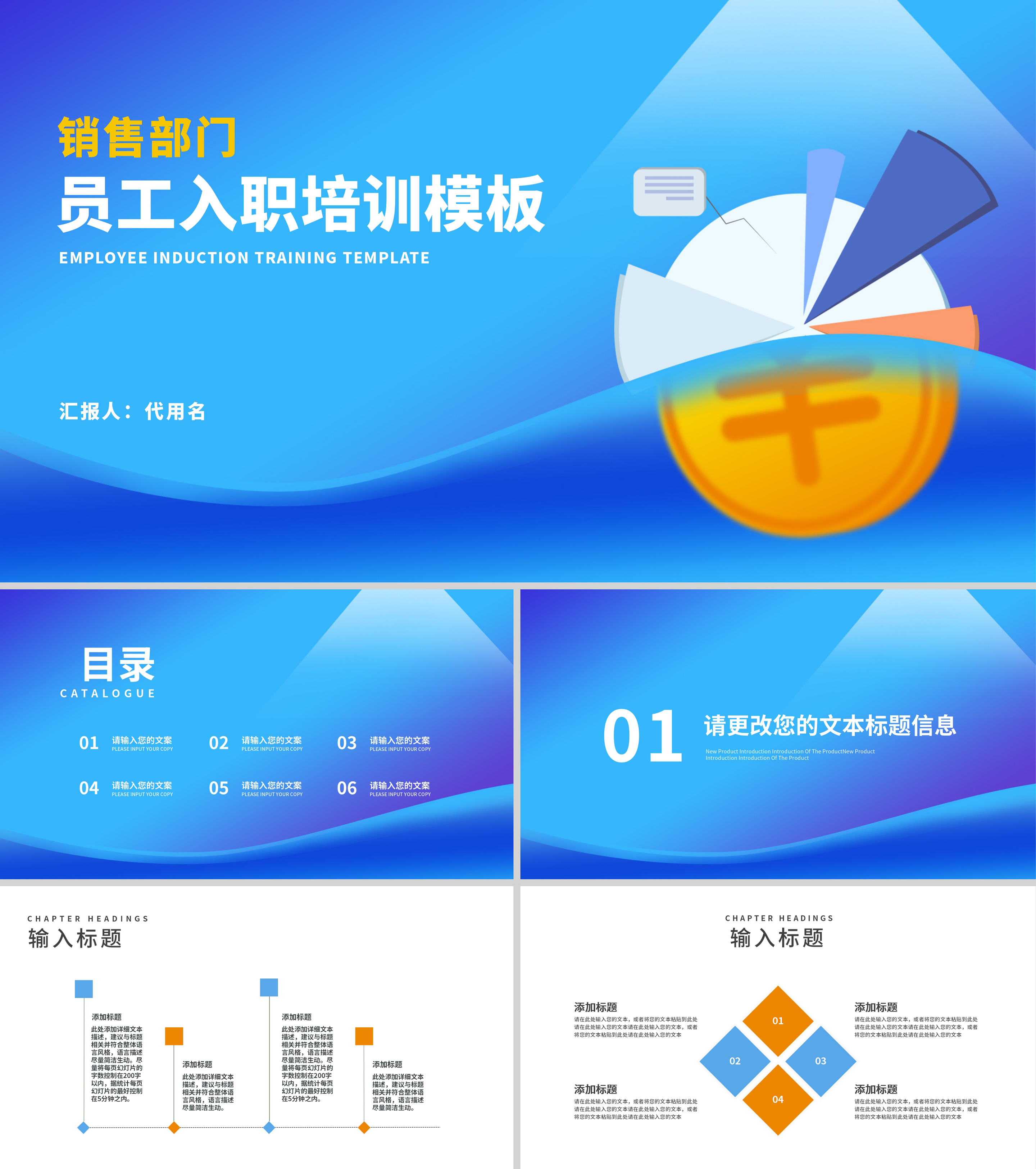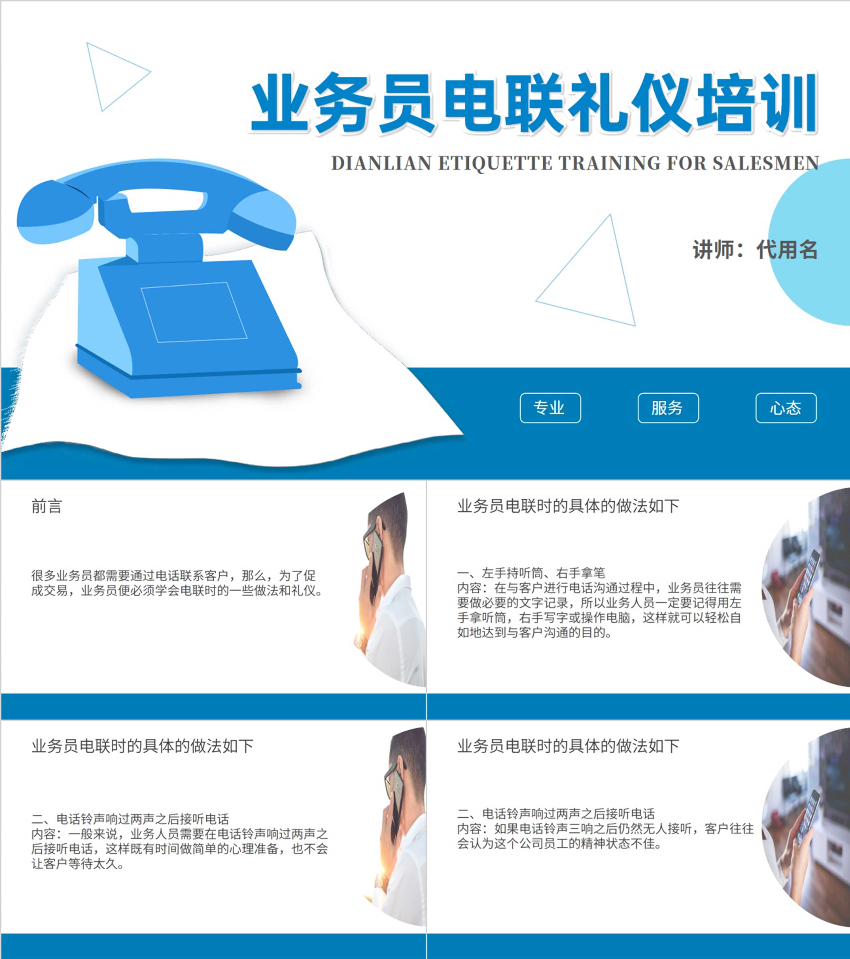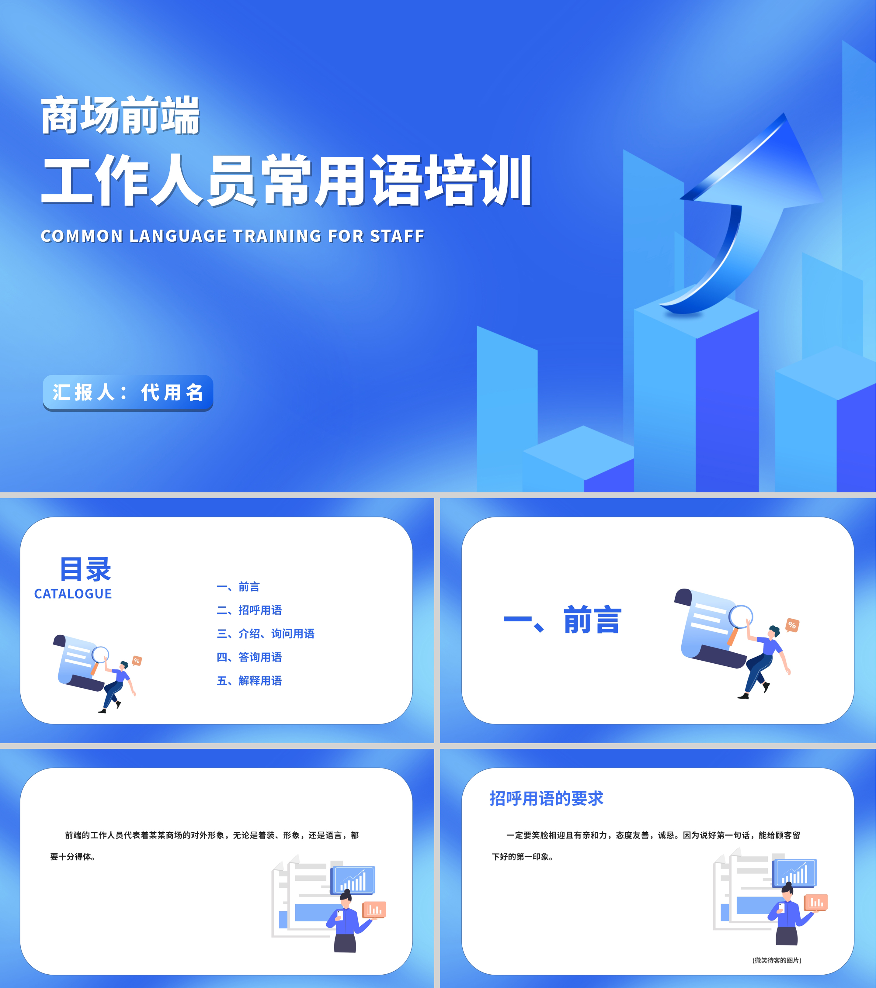 蓝色扁平风商场工作人员销售接待培训PPT模板