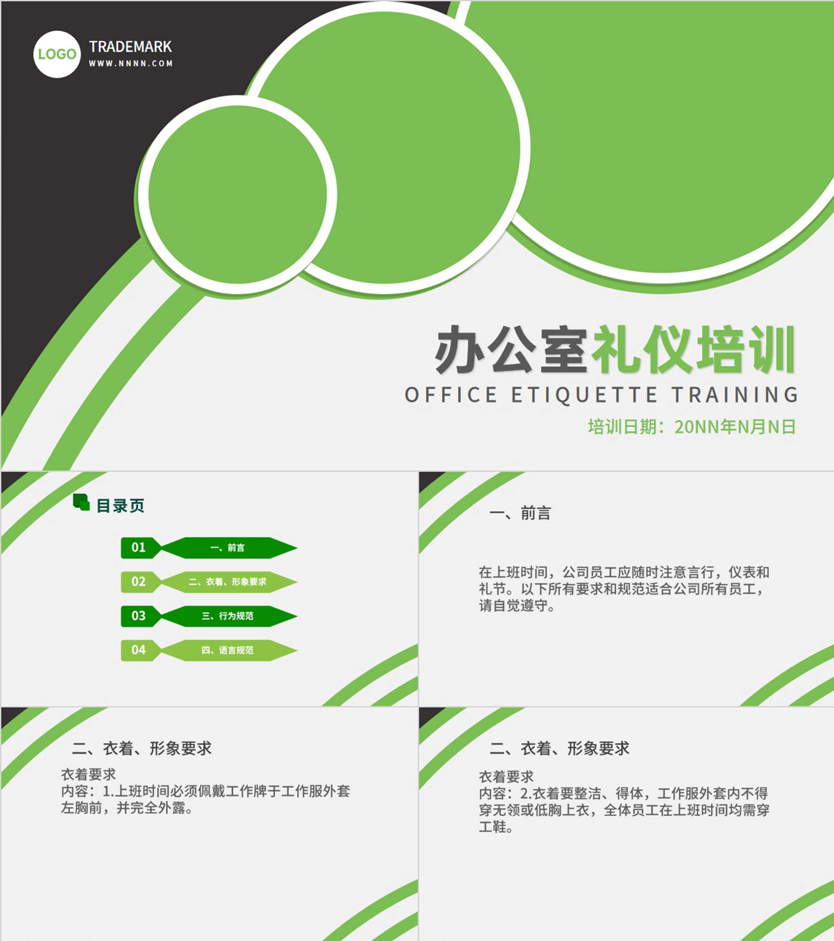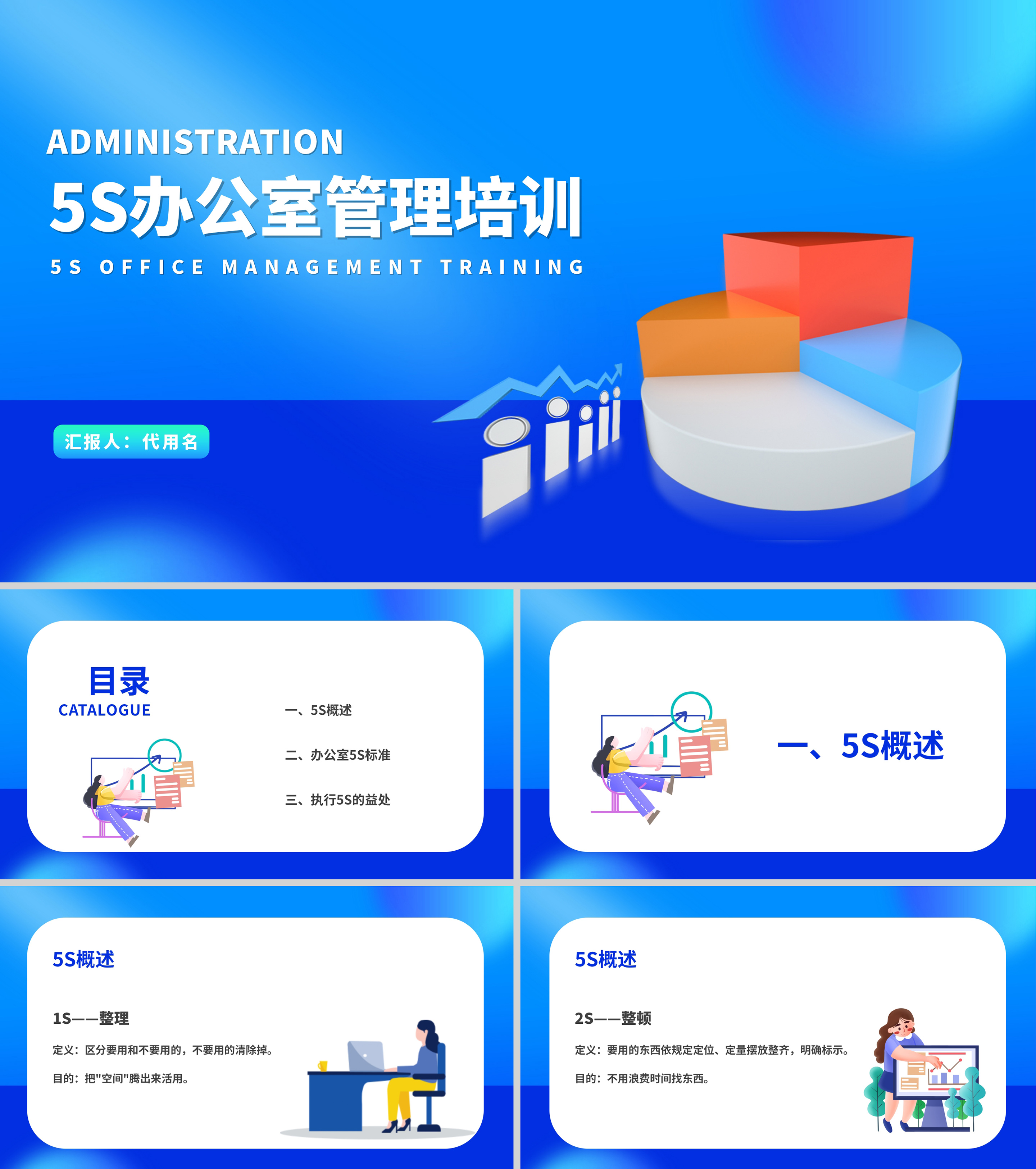蓝色扁平风现代办公室管理规范形象培训PPT模板