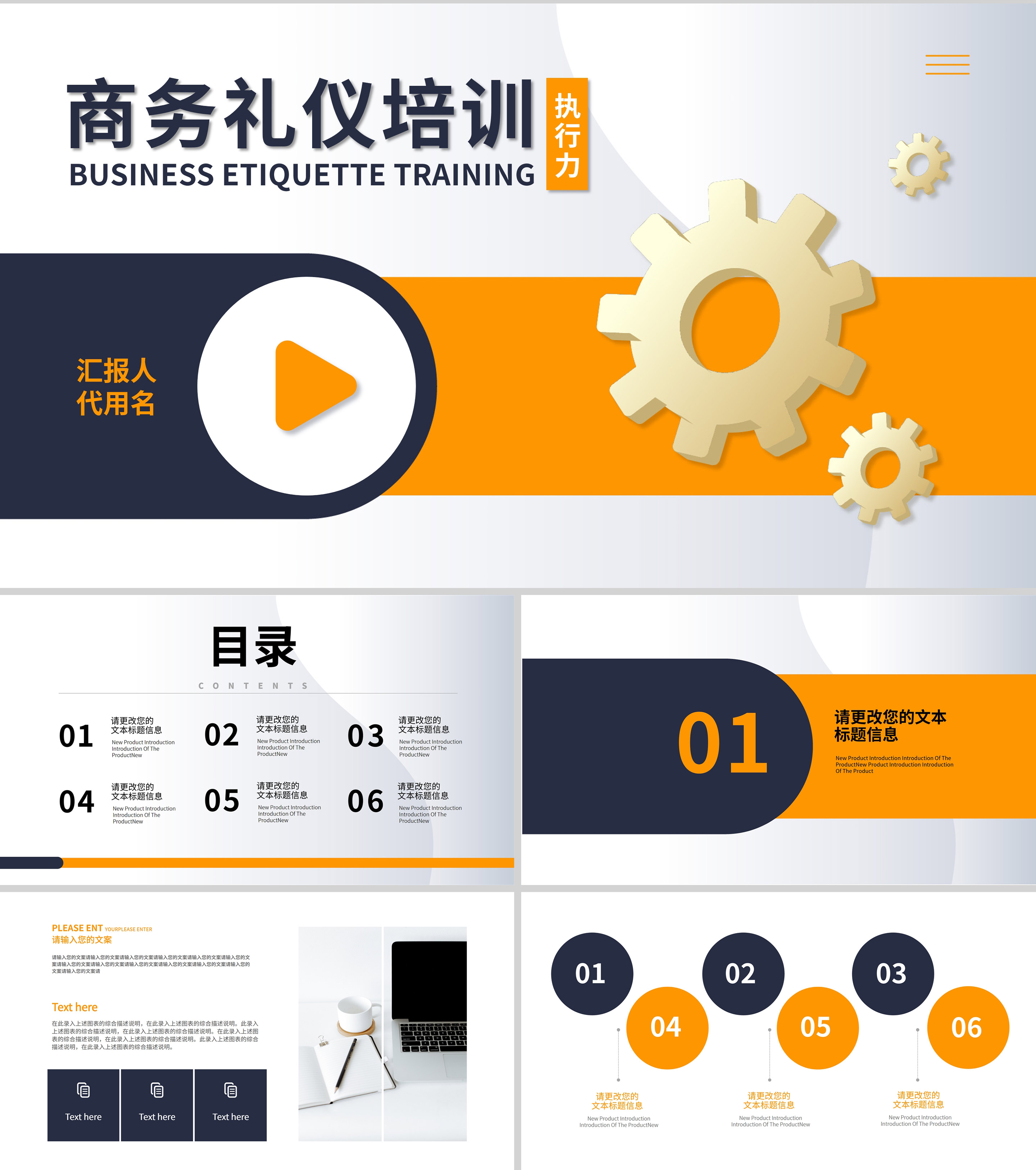白色商务风金属齿轮企业接待商务礼仪培训PPT模板