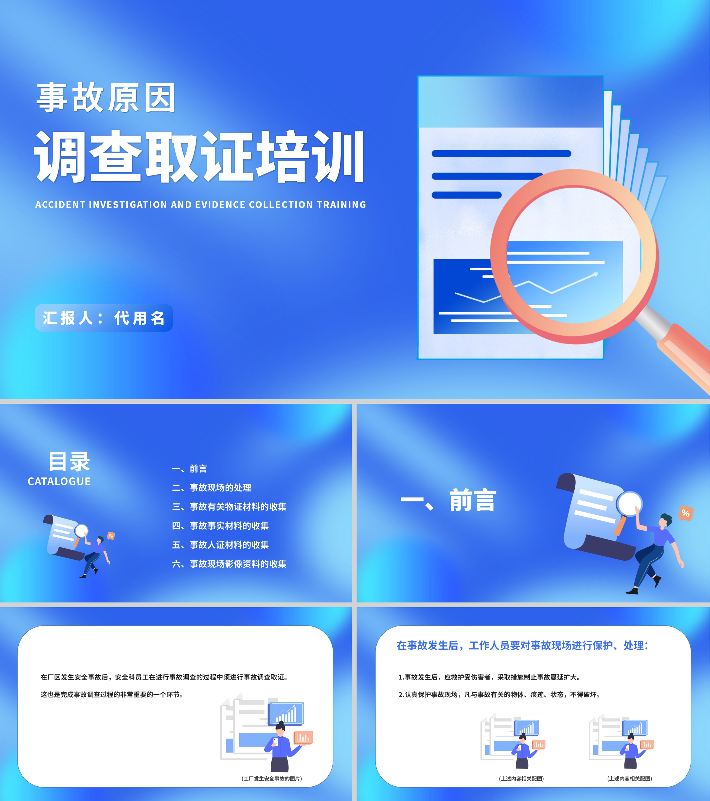 蓝色扁平风保险事故出险调查取证培训PPT模板