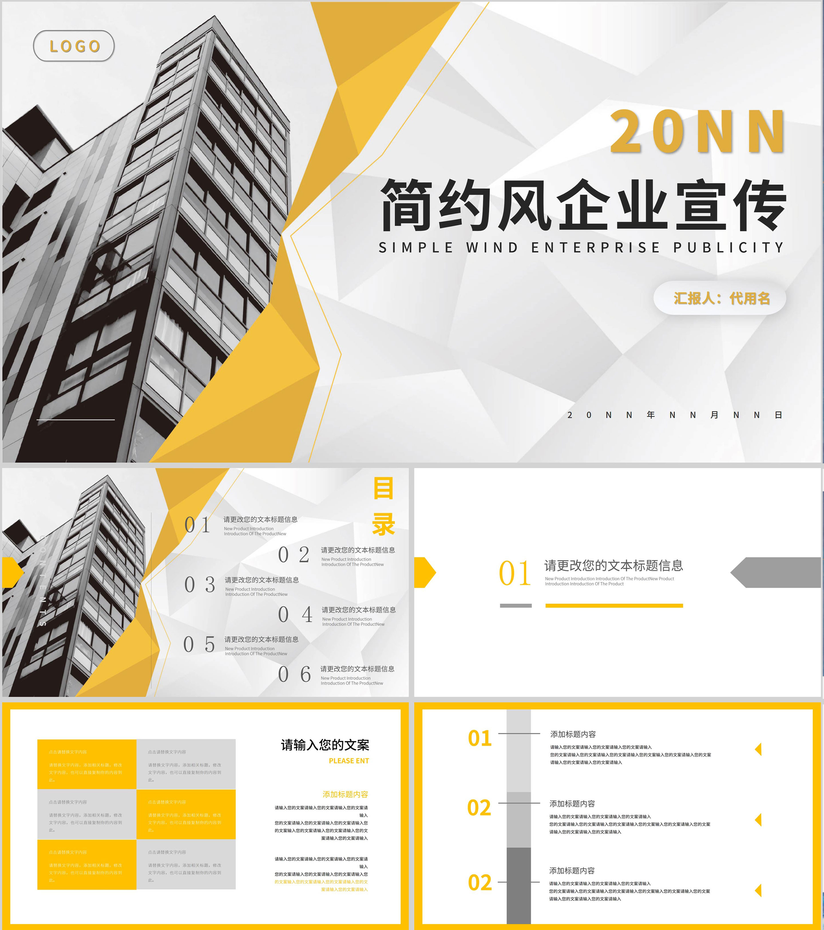 黄色简约风企业宣传PPT模板