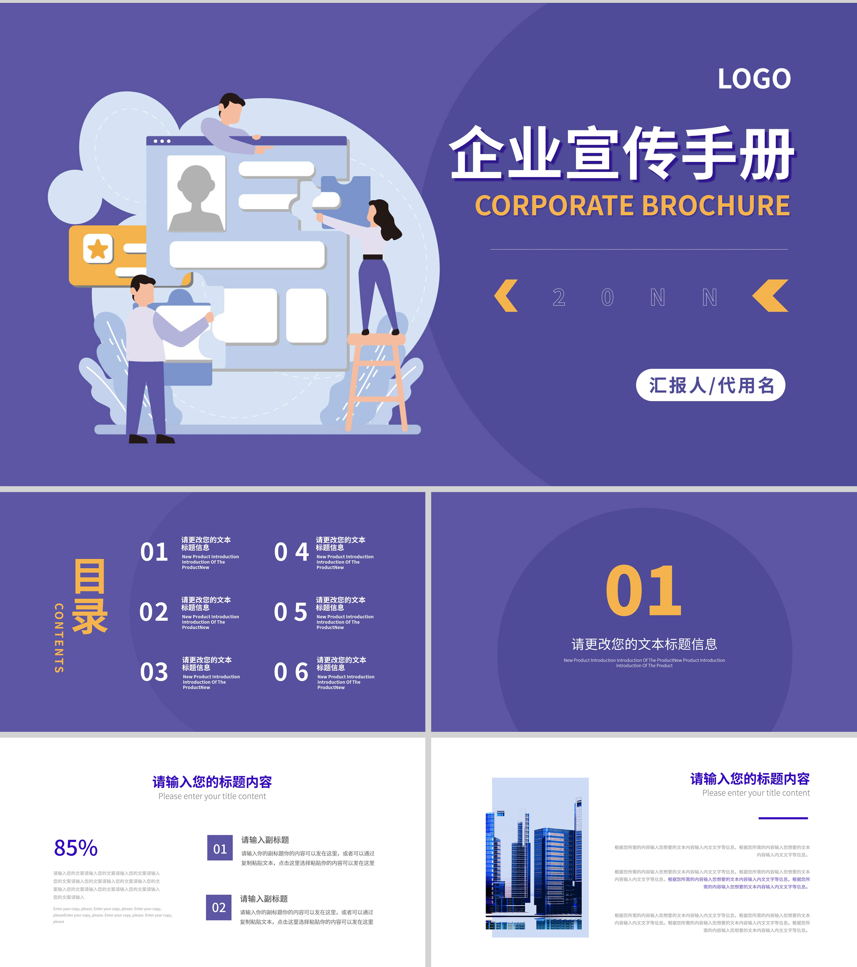 紫色插画风企业宣传手册PPT模板