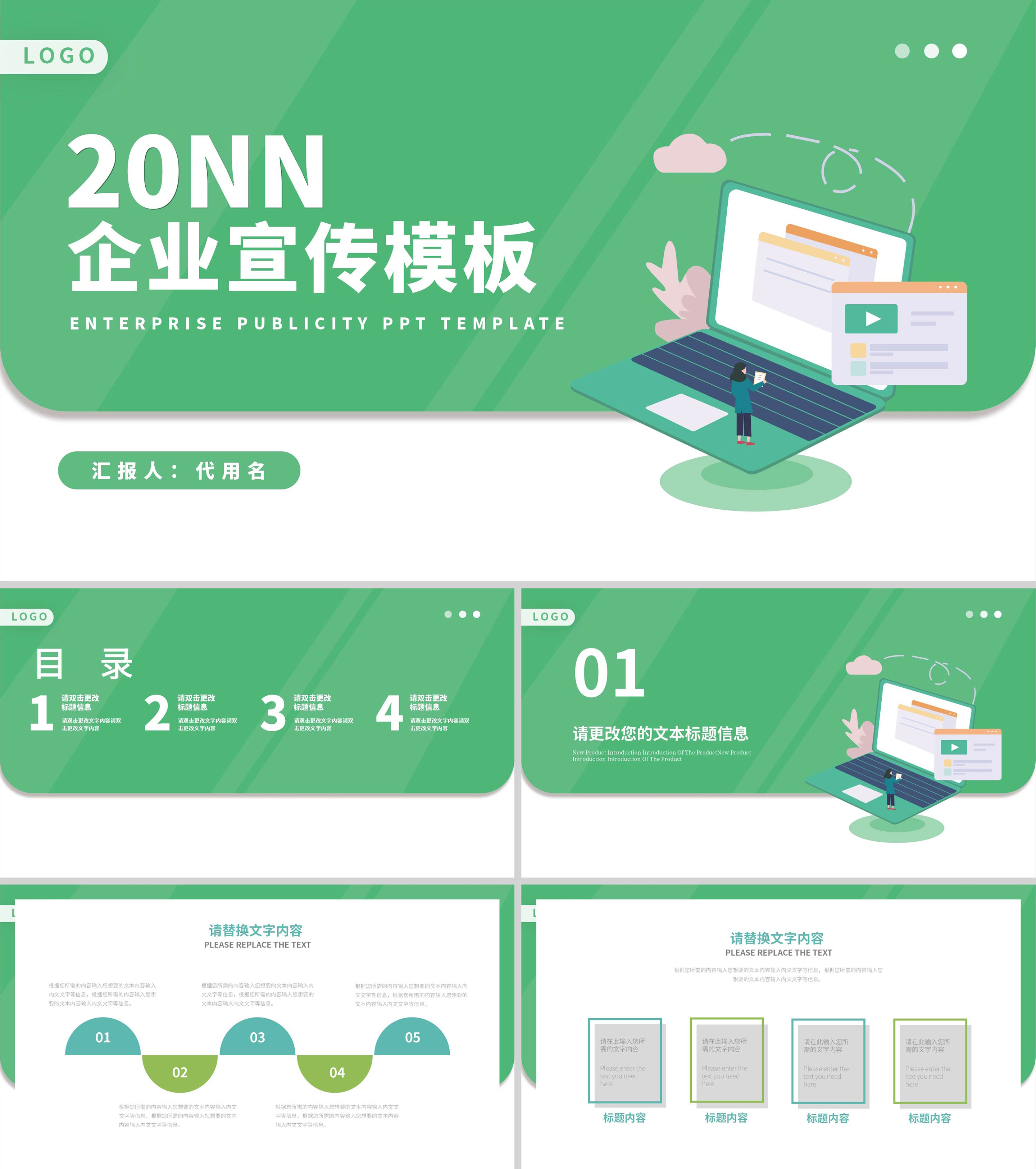 简约绿色职场企业宣传汇报PPT模板