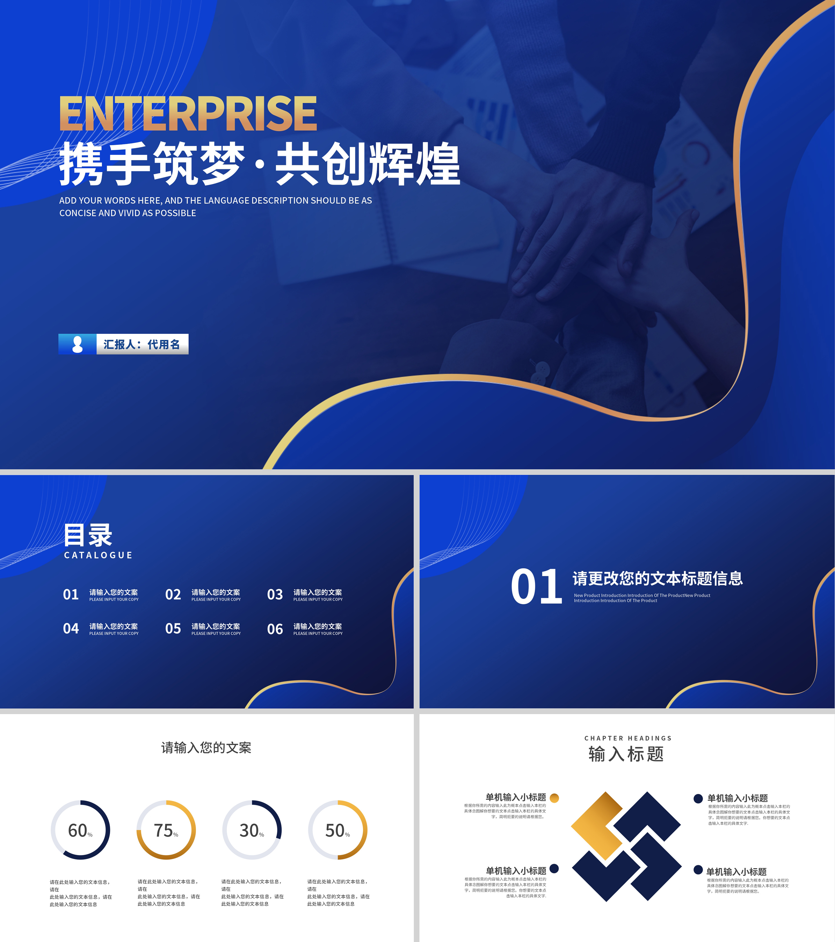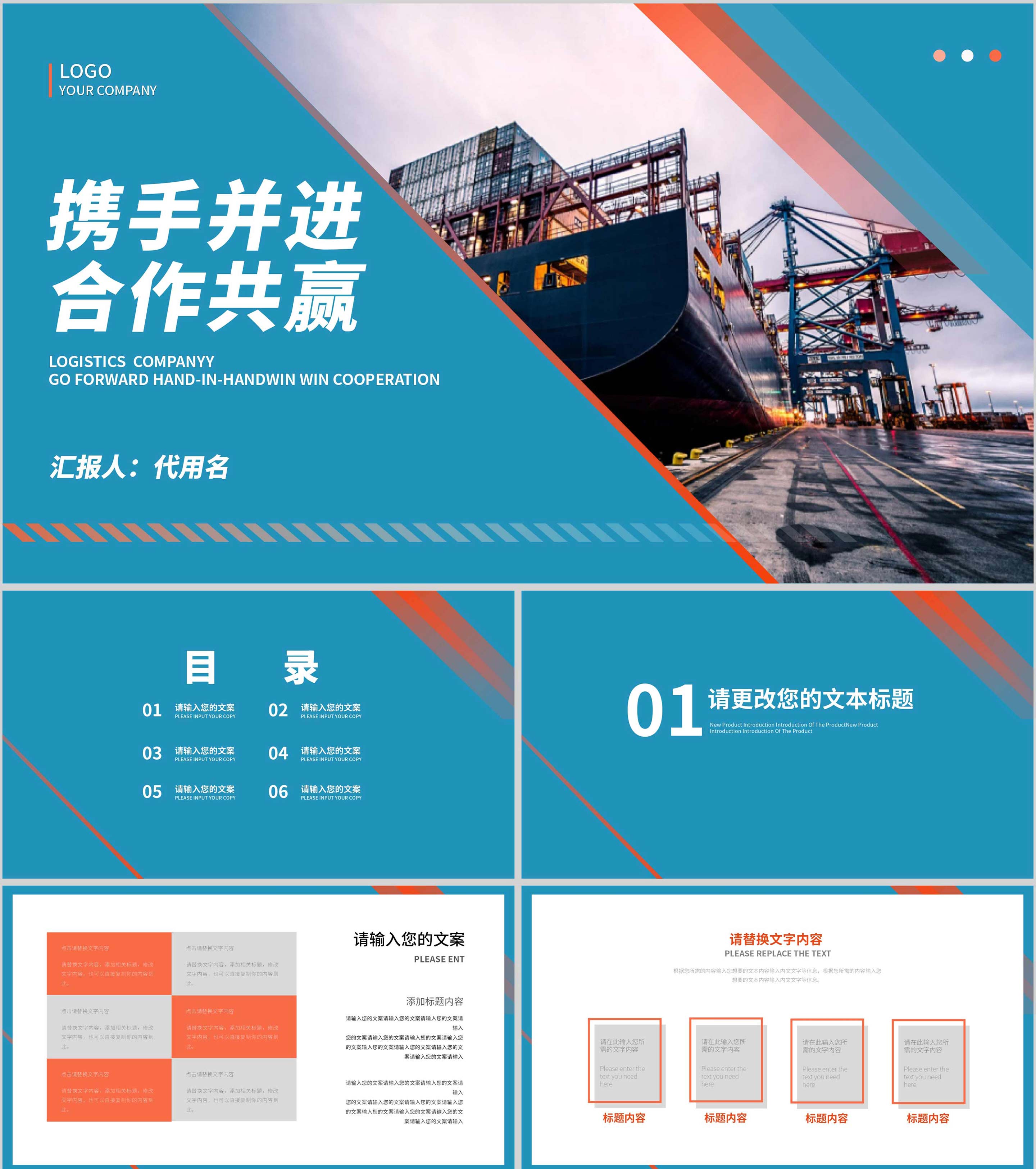 蓝色商务风企业公司形象宣传合作推广PPT模板