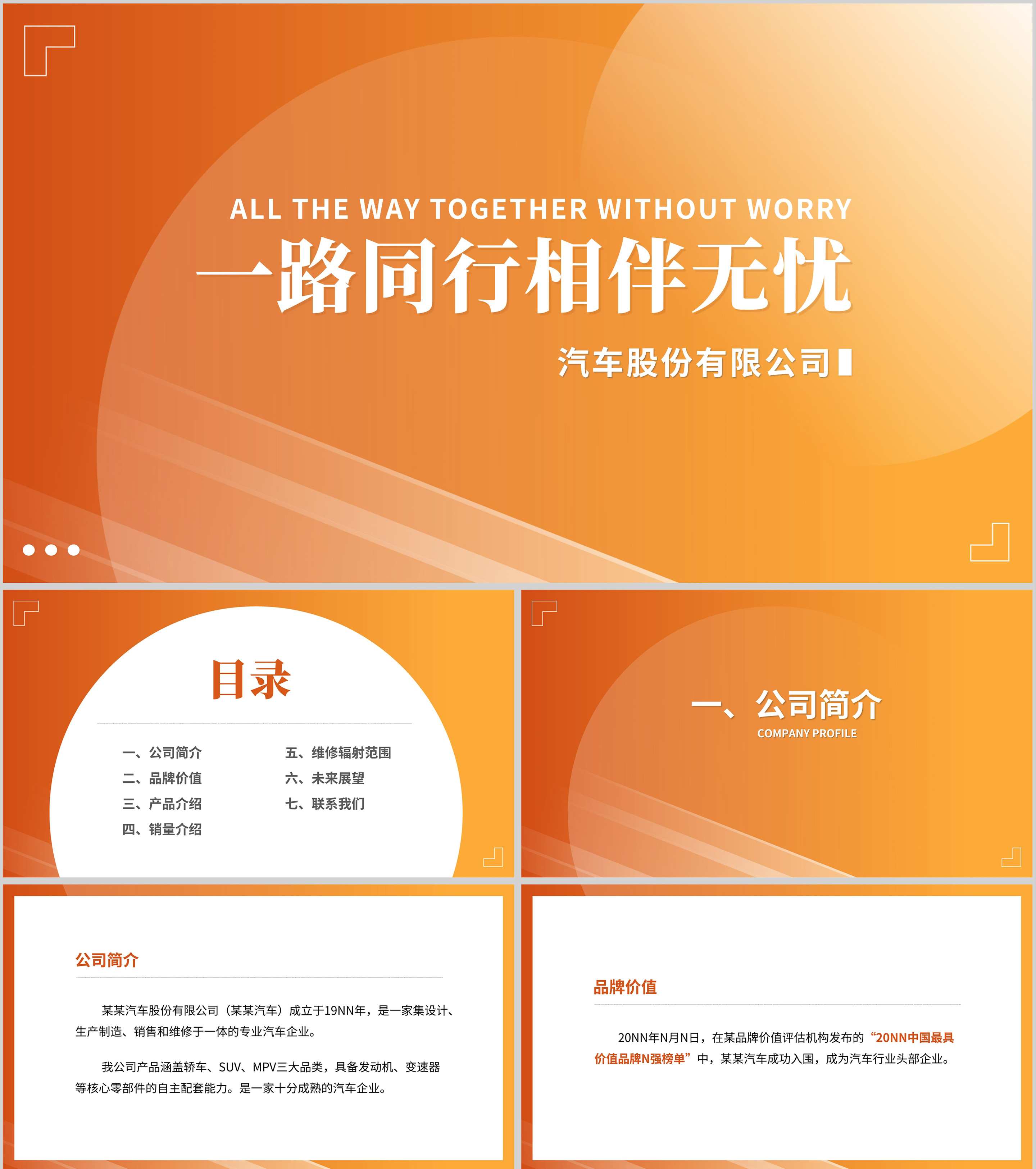 橙色简约风企业汽车股份公司宣传PPT模板