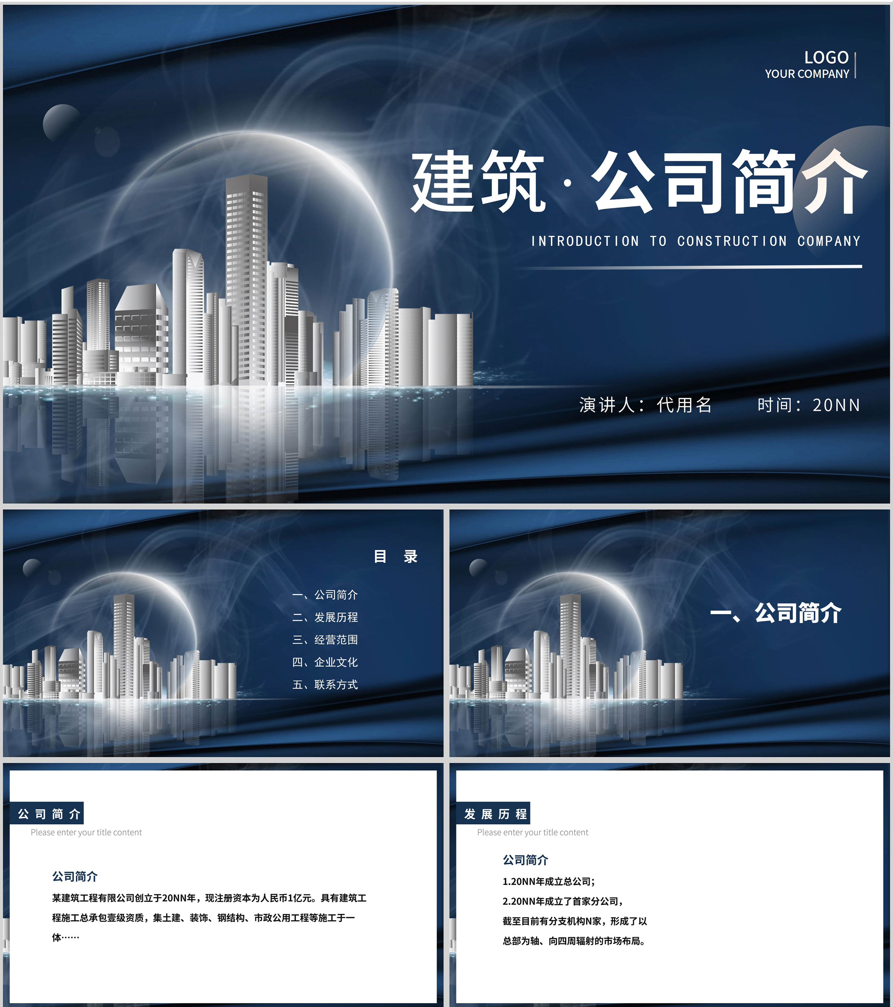 蓝色都市风建筑公司职场企业宣传PPT模板