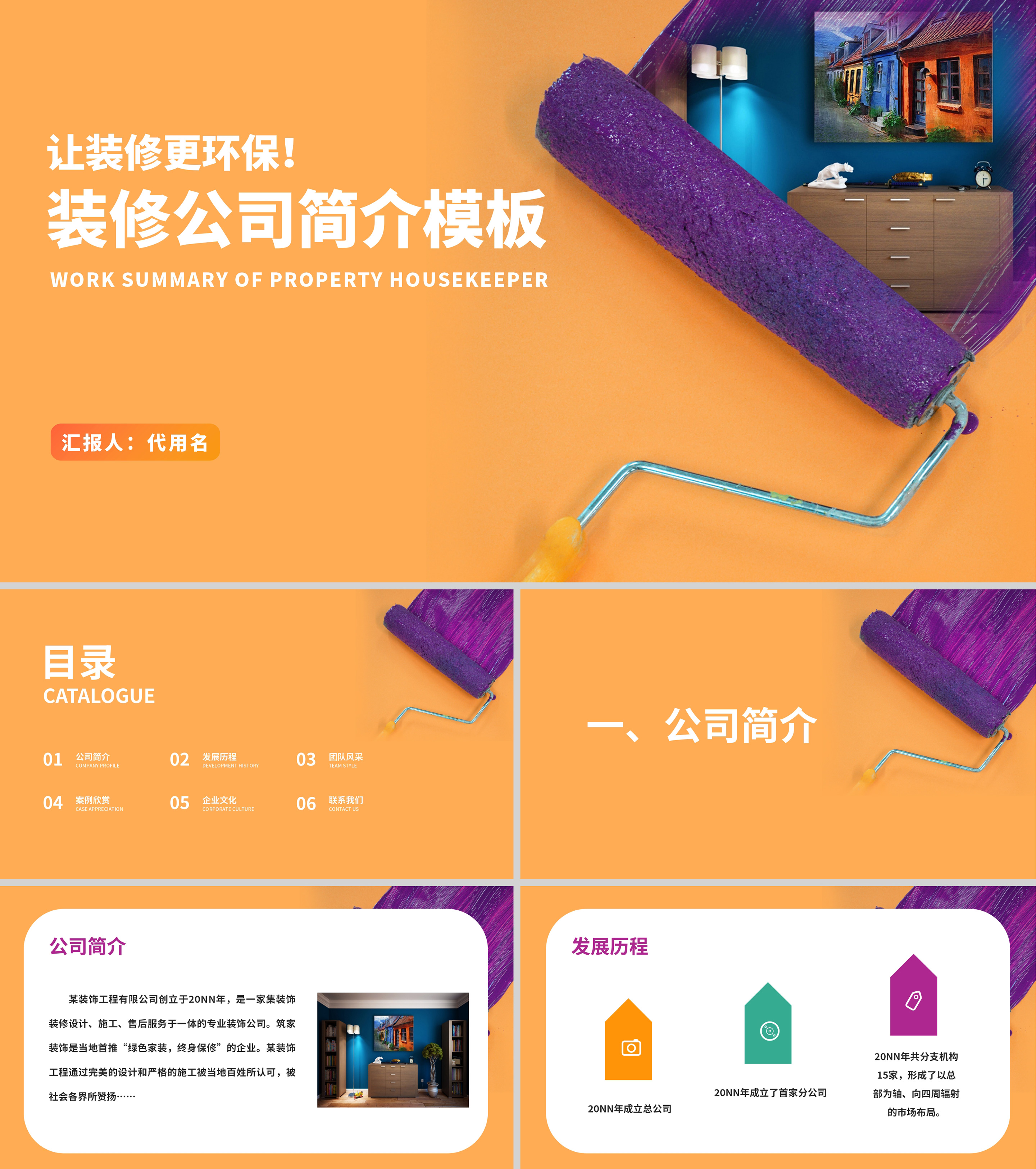 橙色简约风市场家装装修公司宣传PPT模板