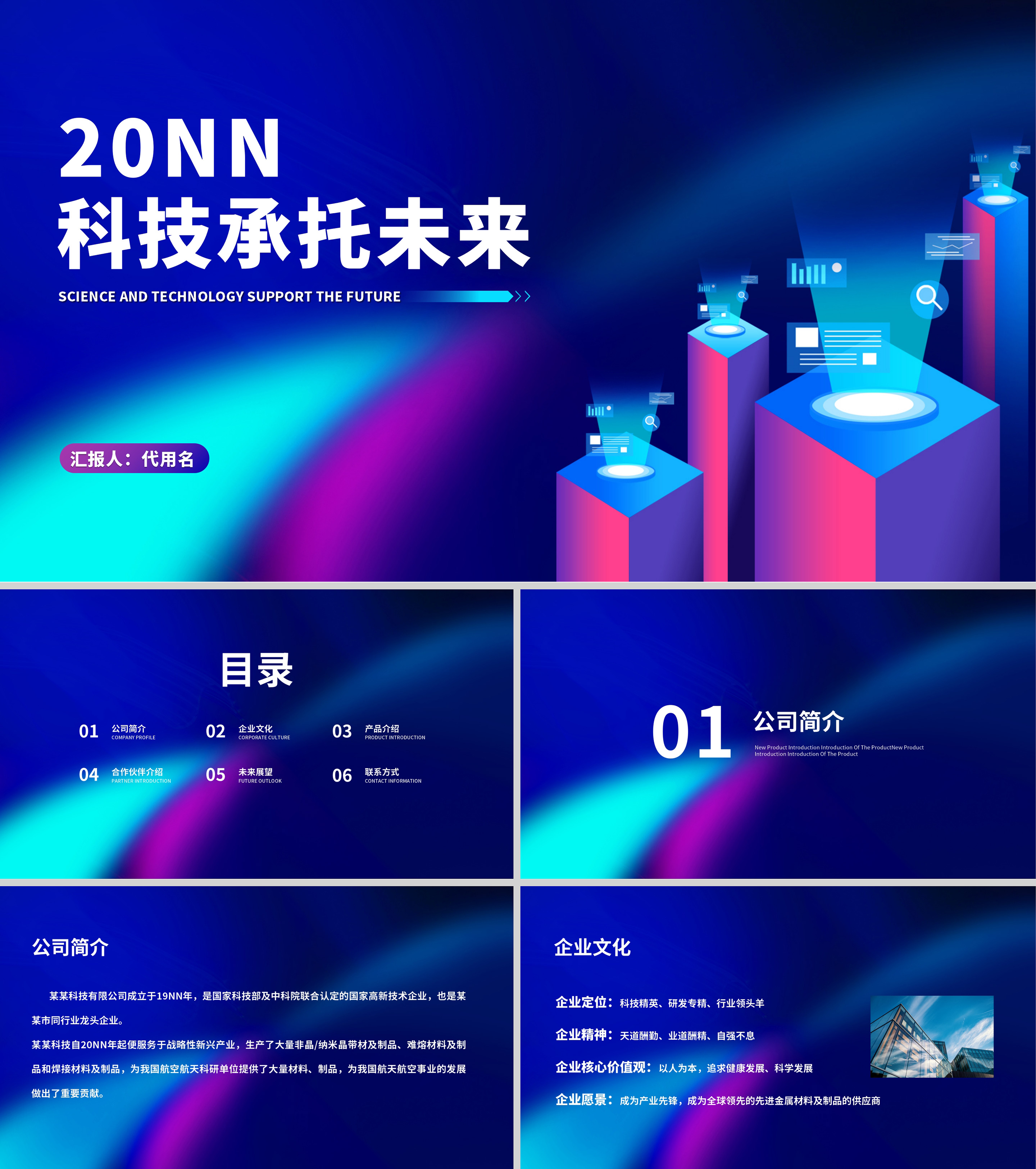 蓝色科技风职场科技宣传PPT模板