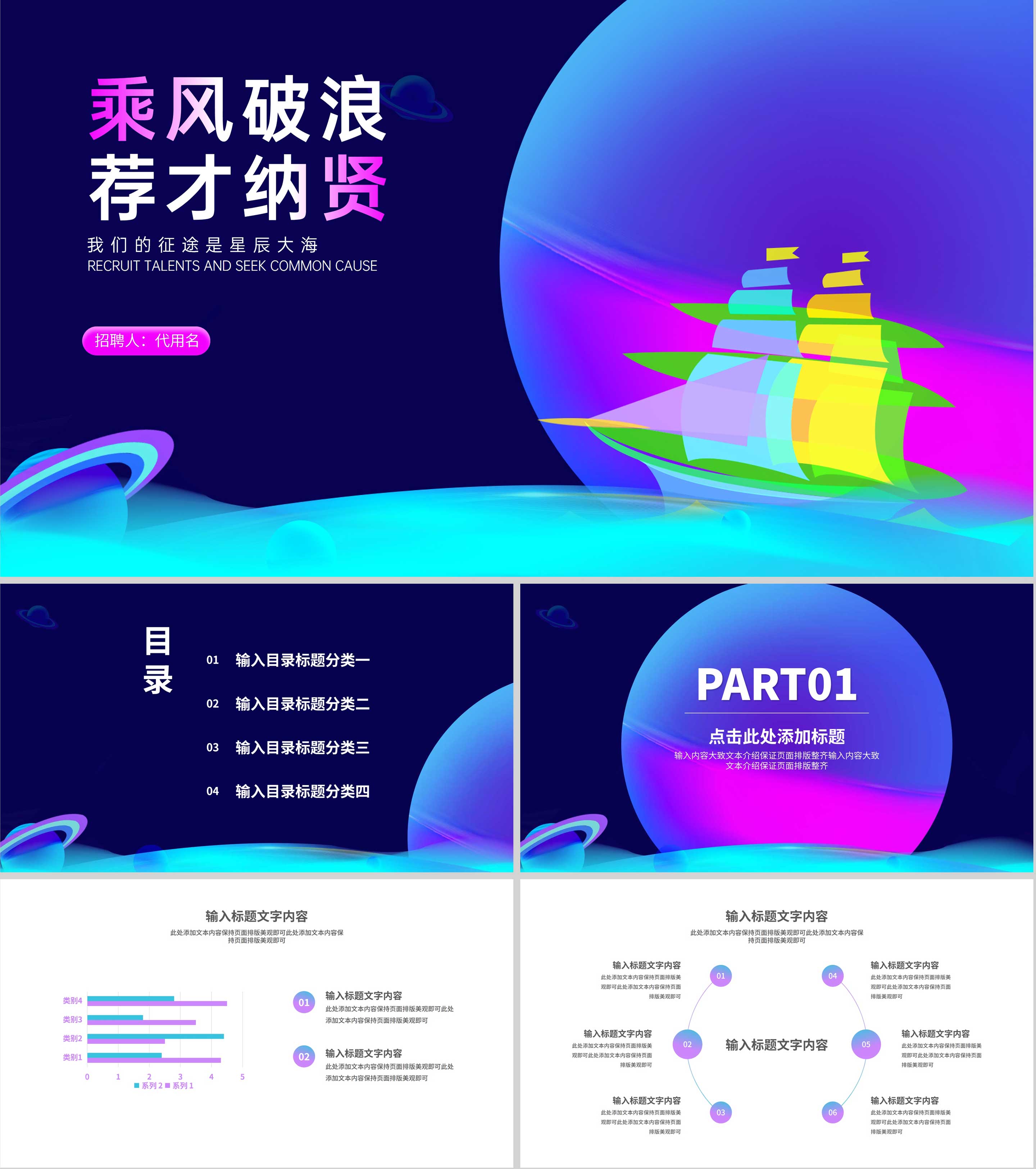 卡通插画风帆船企业校园招聘汇报PPT模板