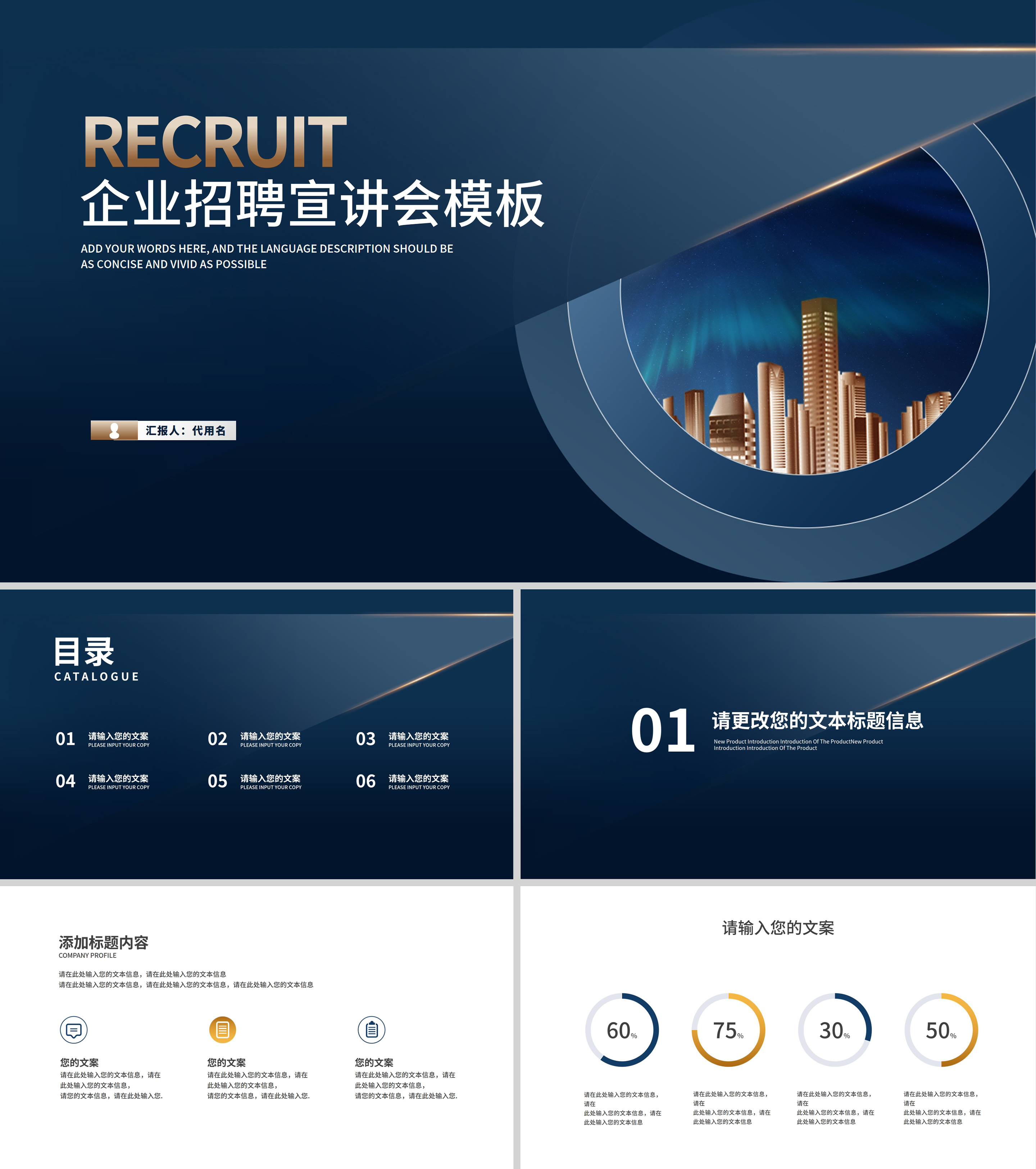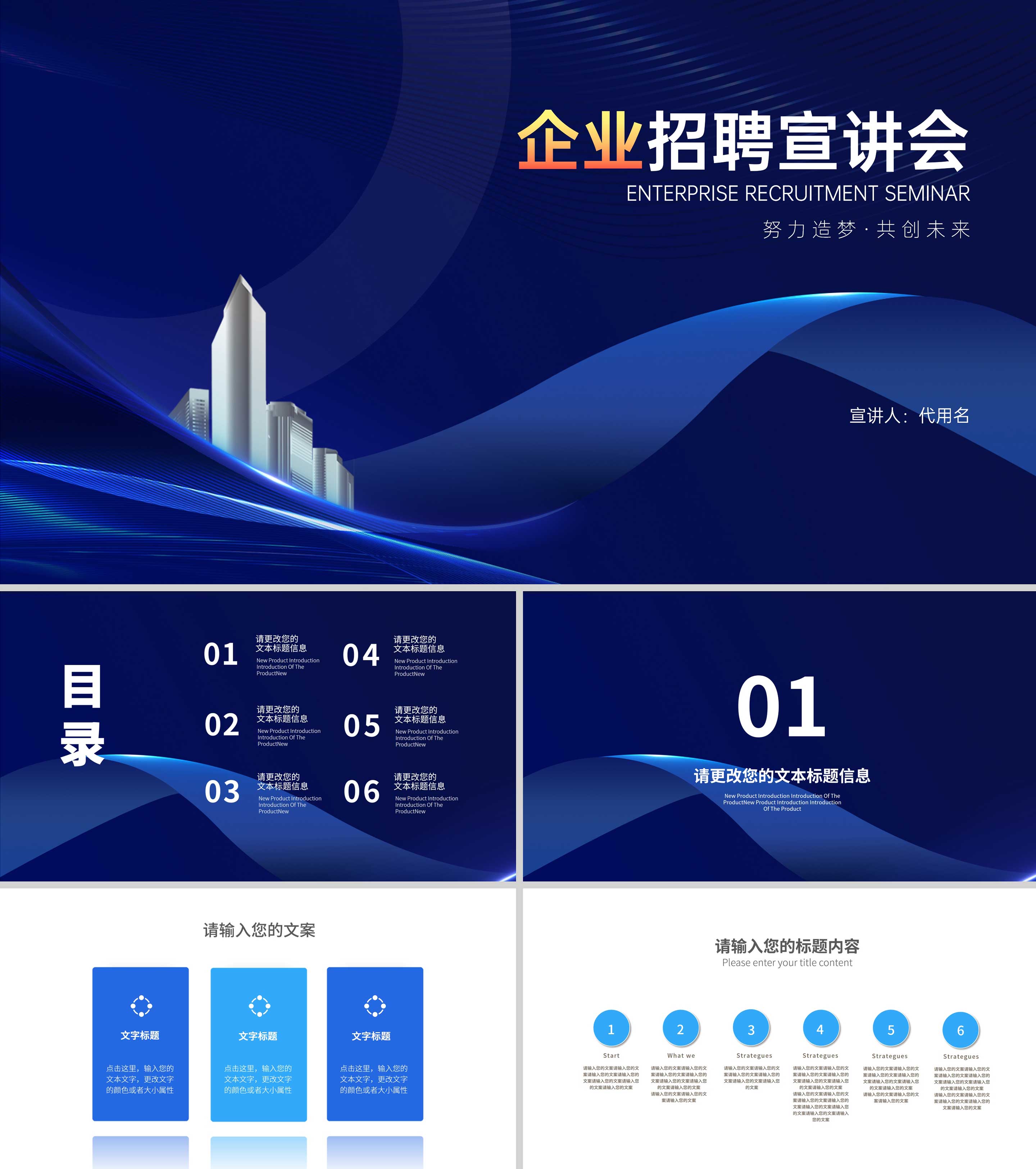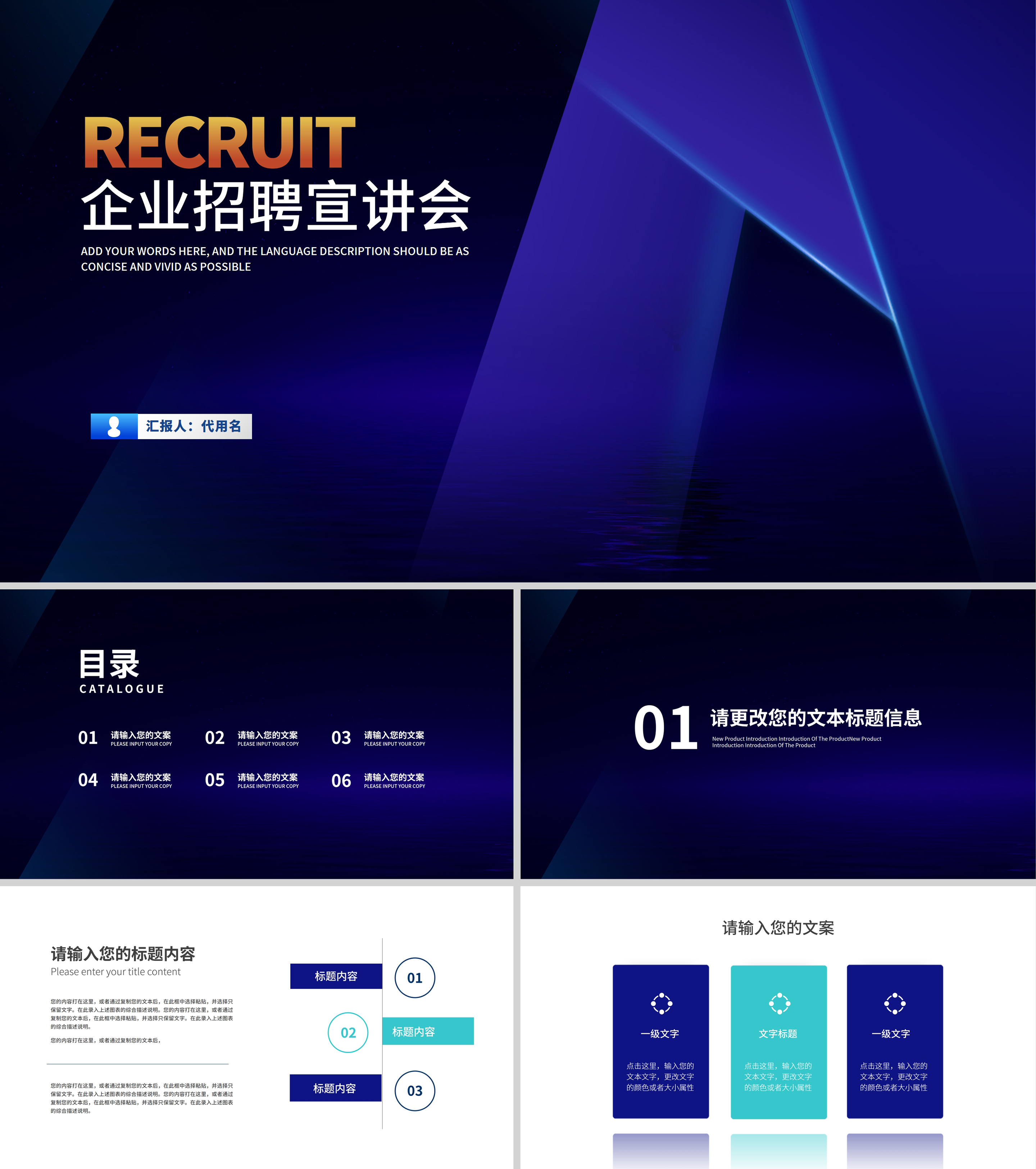 深蓝商务风企业招聘宣传汇报PPT模板