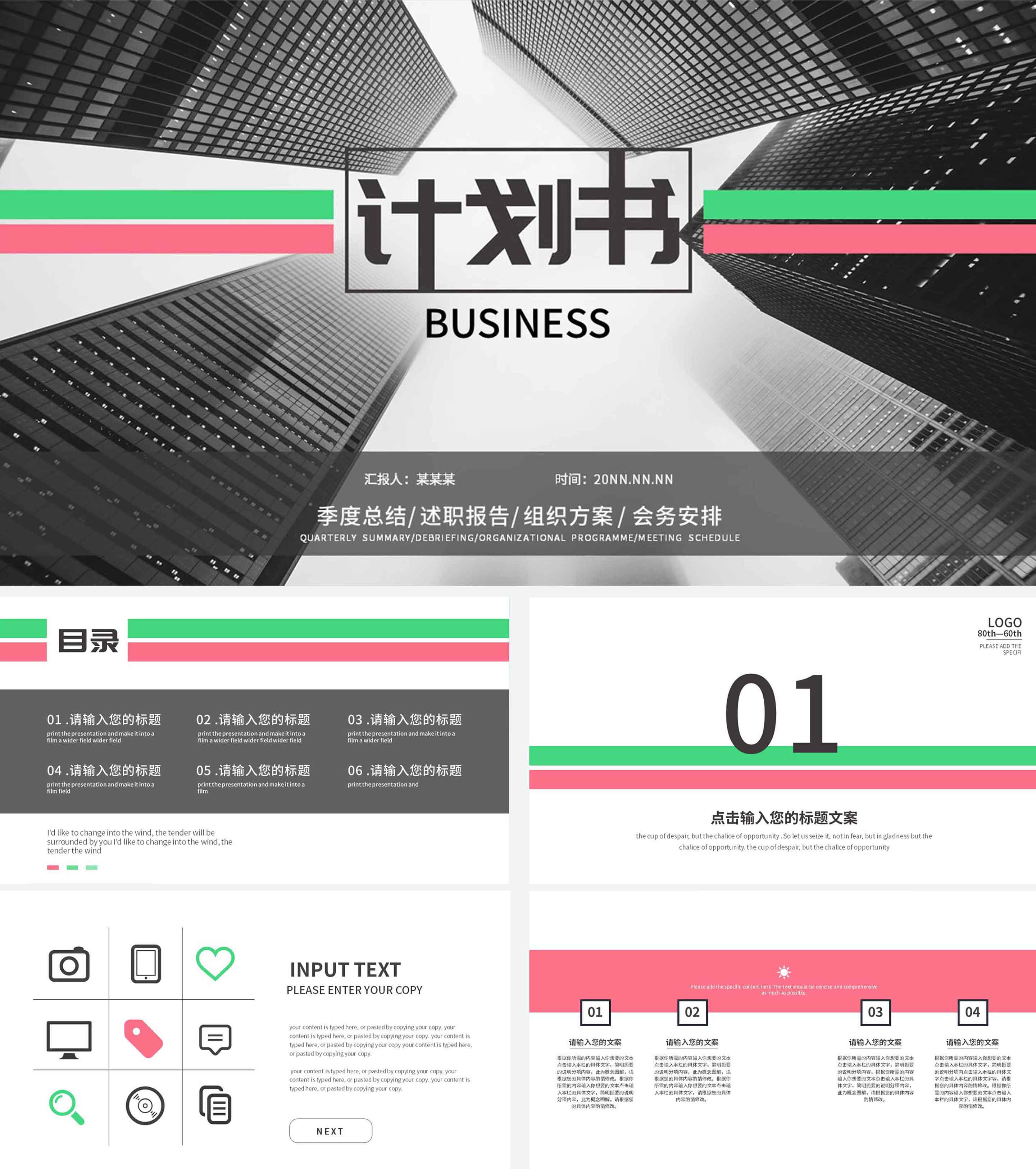 灰色欧美写字楼计划书PPT模板