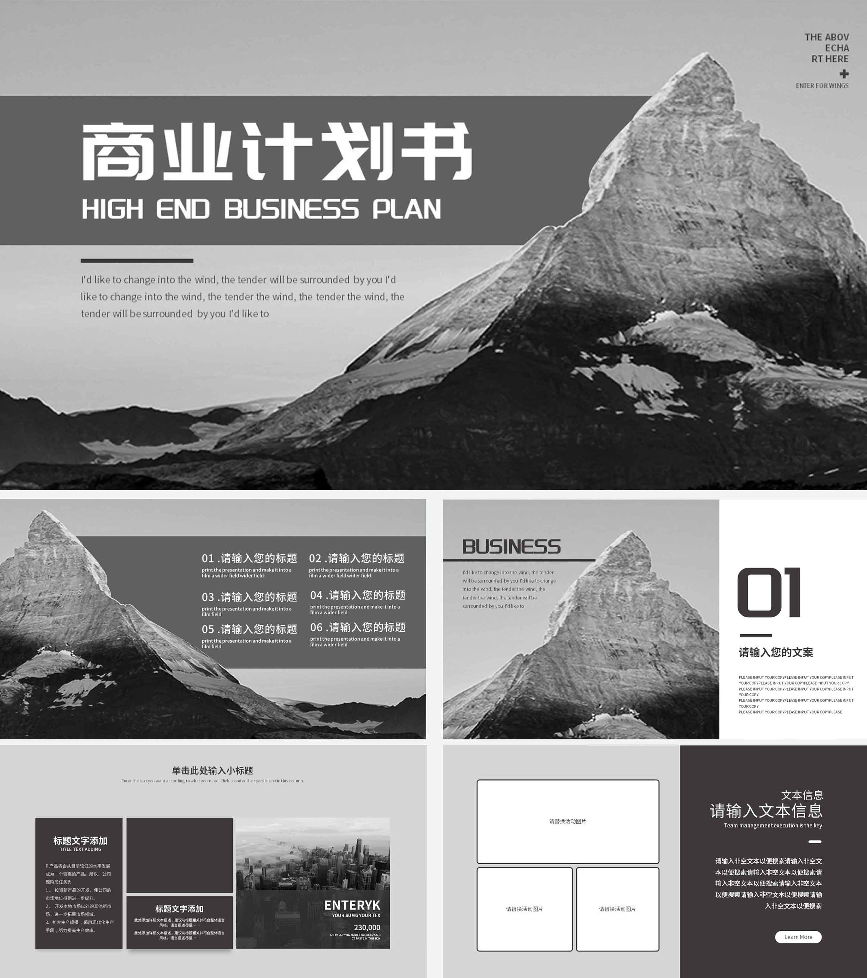 黑白灰意境风景商业计划书PPT模板