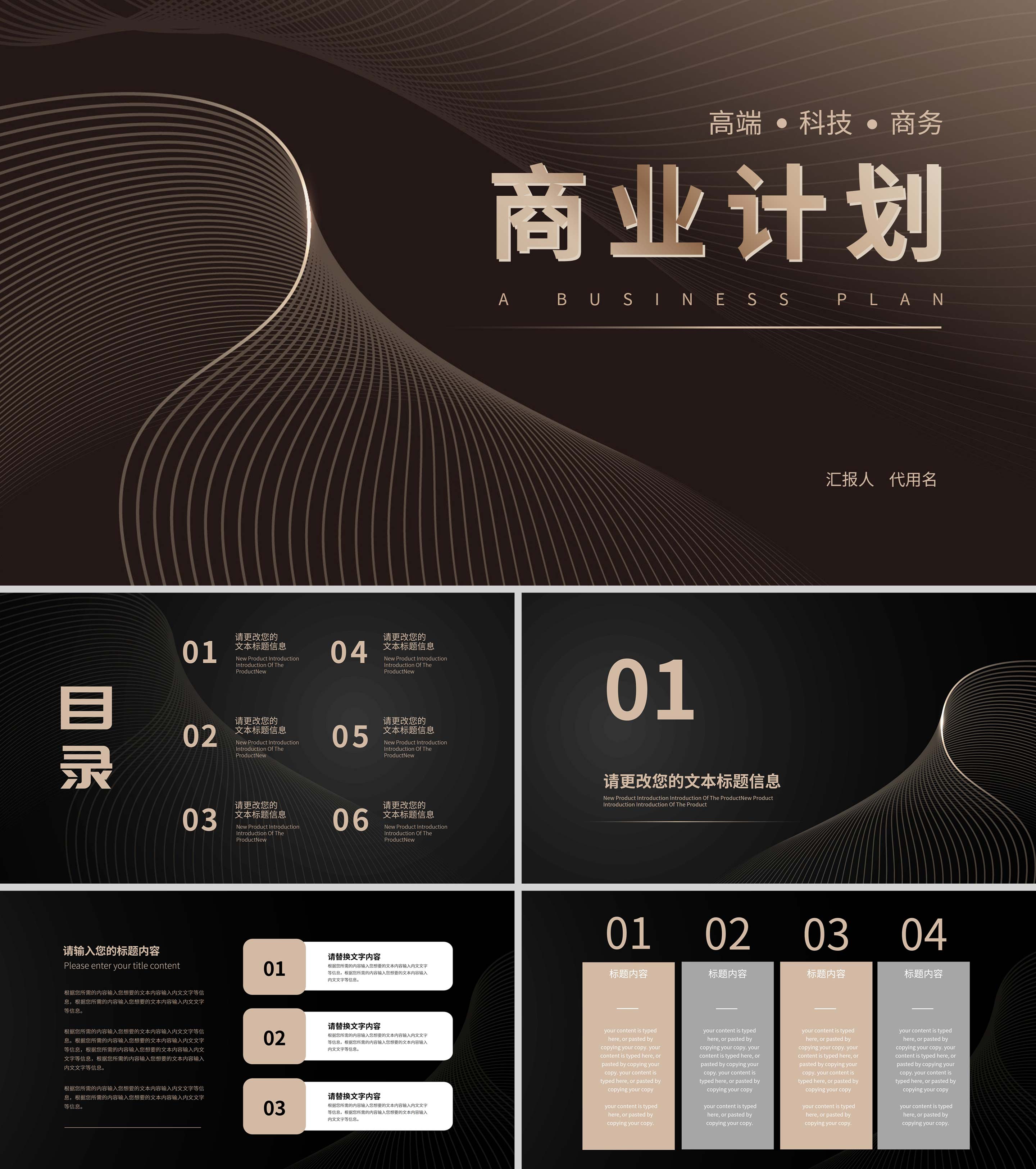 黑色流线商务风商业计划PPT模板