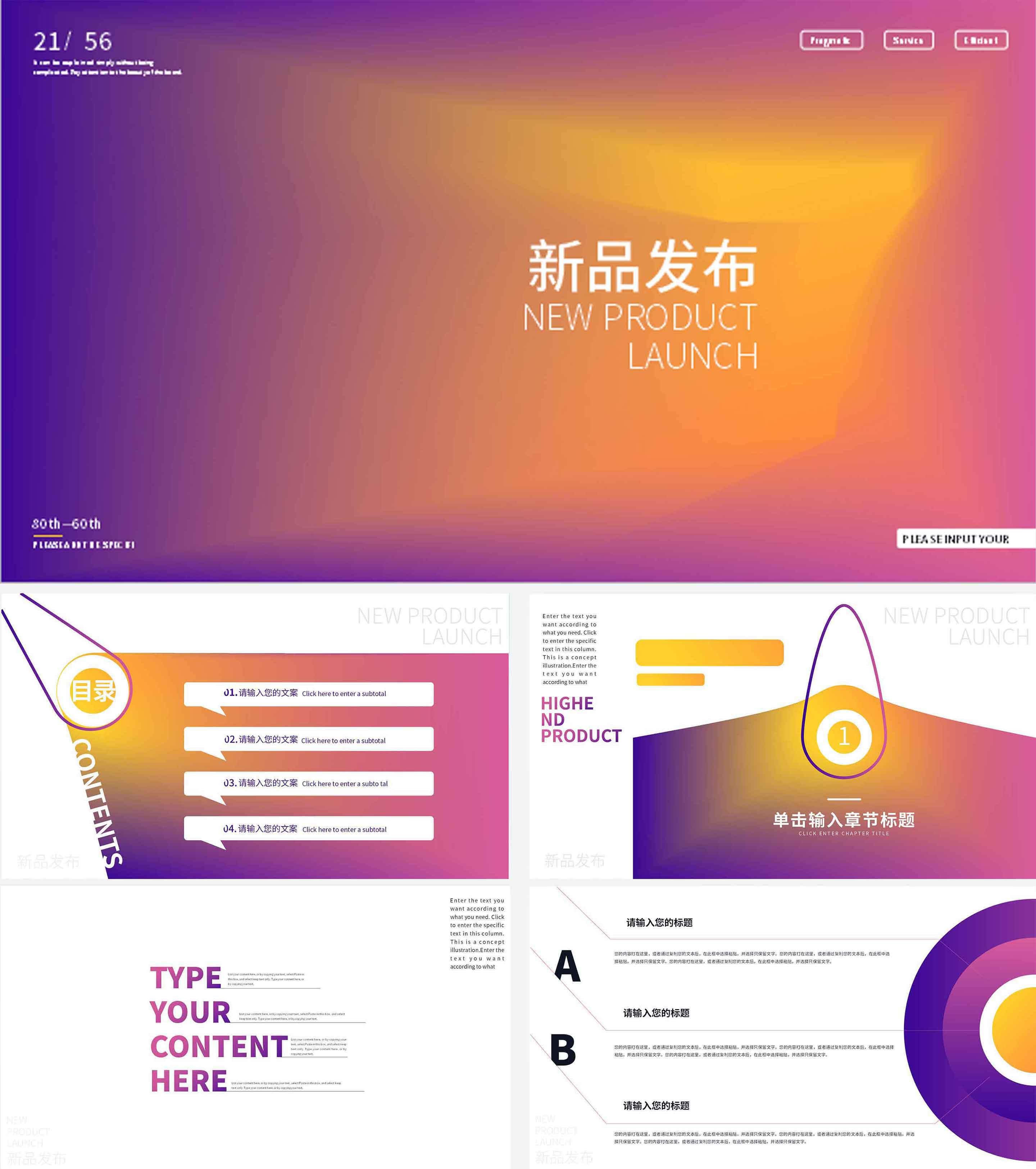 紫色时尚简约新品发布PPT模板