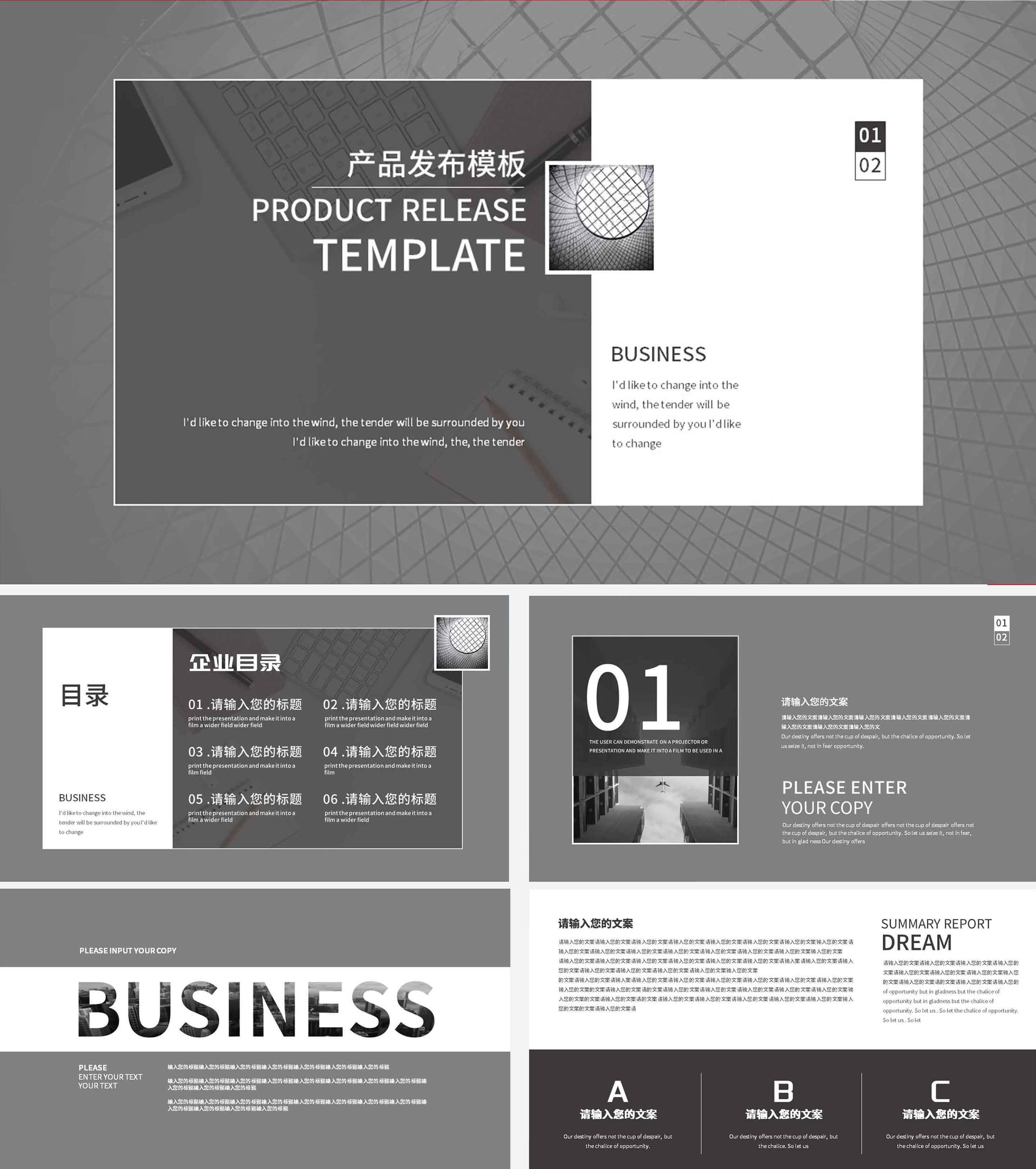 灰色商务简约产品发布PPT模板